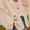 Découvrez notre gilet noir très doux à coupe loose, parfait pour une allure décontractée.Ses manches longues avec emmanchures descendantes ajoutent du style, tandis que la fermeture bord à bord sans bouton assure une touche moderne.Les motifs Palm Wild Love en bleu et rose fluo apportent une note dynamique et originale à votre garde-robe.