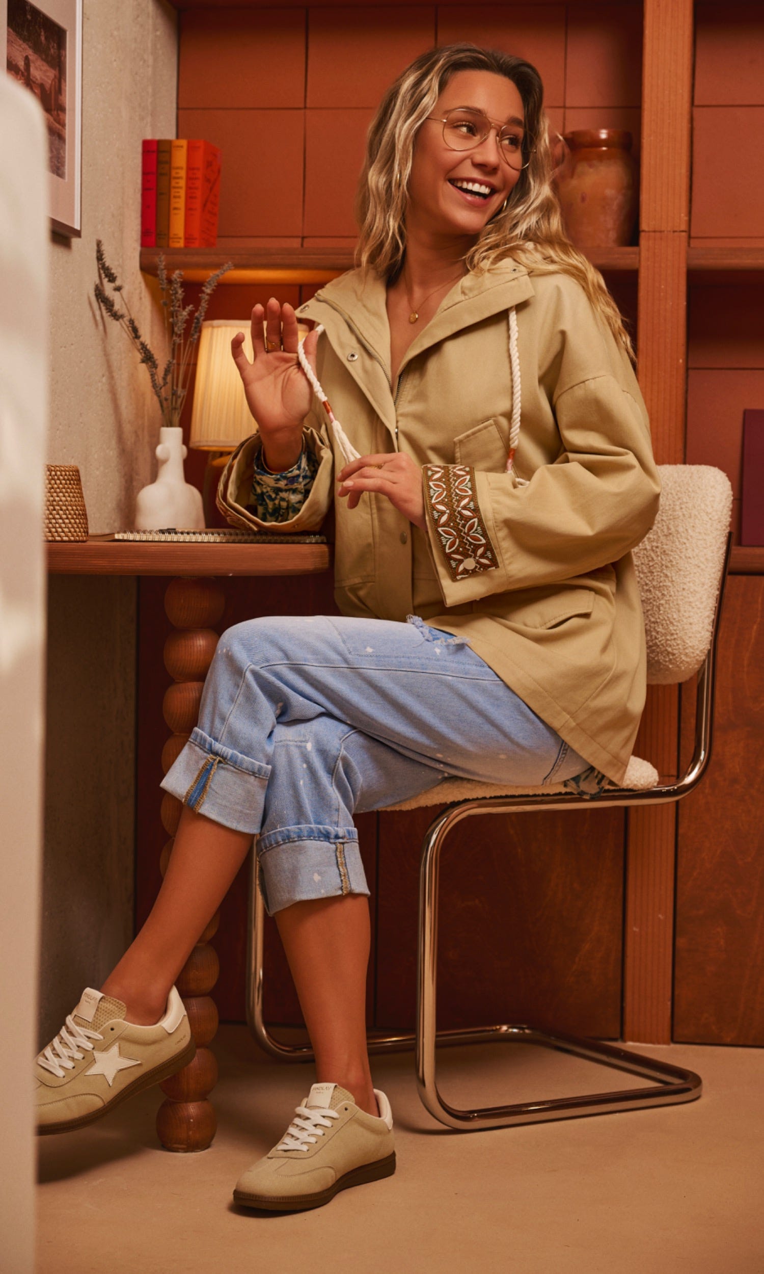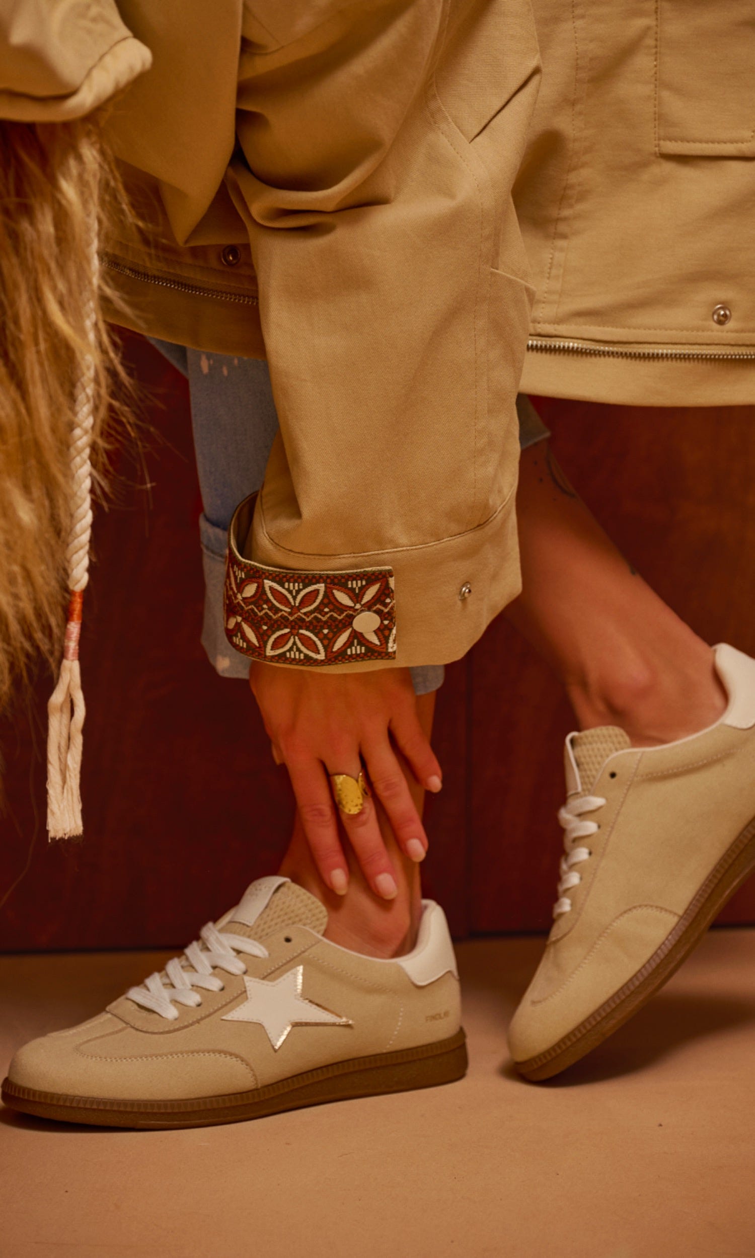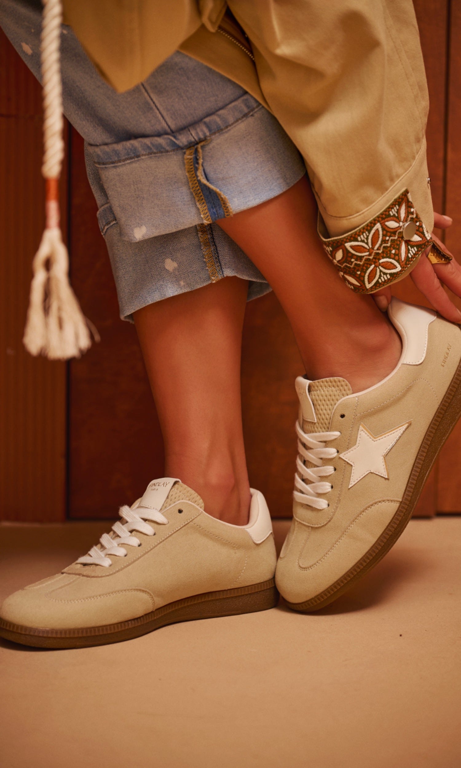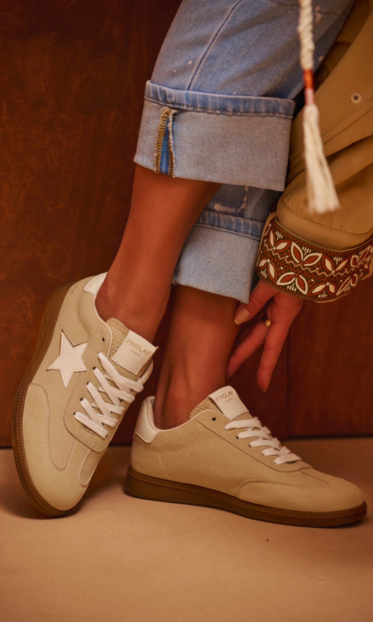 Découvrez nos baskets basses beiges tendance, ornées d'un empiècement en forme d'étoile sur le côté.