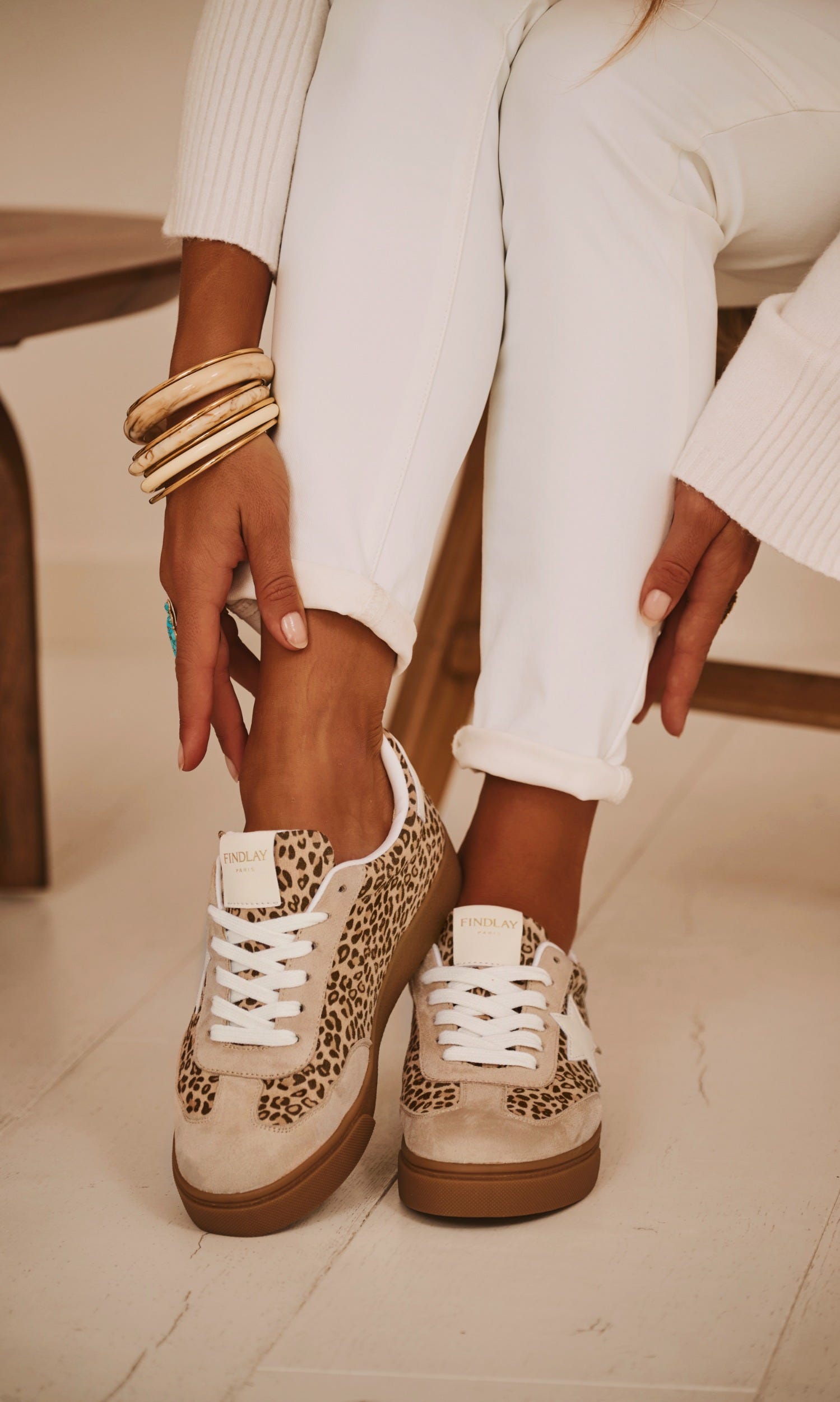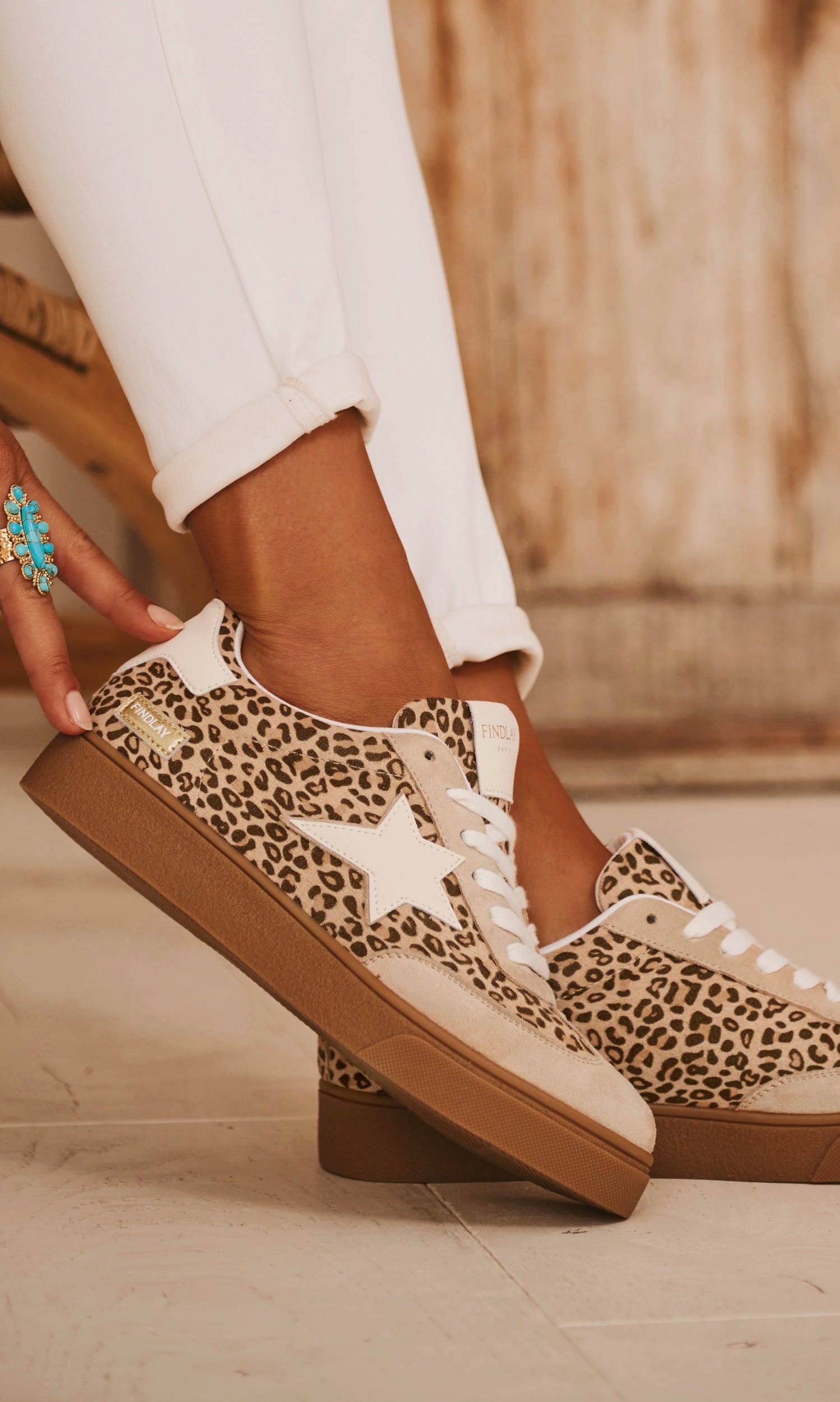 Optez pour ces baskets basses au chic motif léopard, sublimées par une étoile de chaque côté.