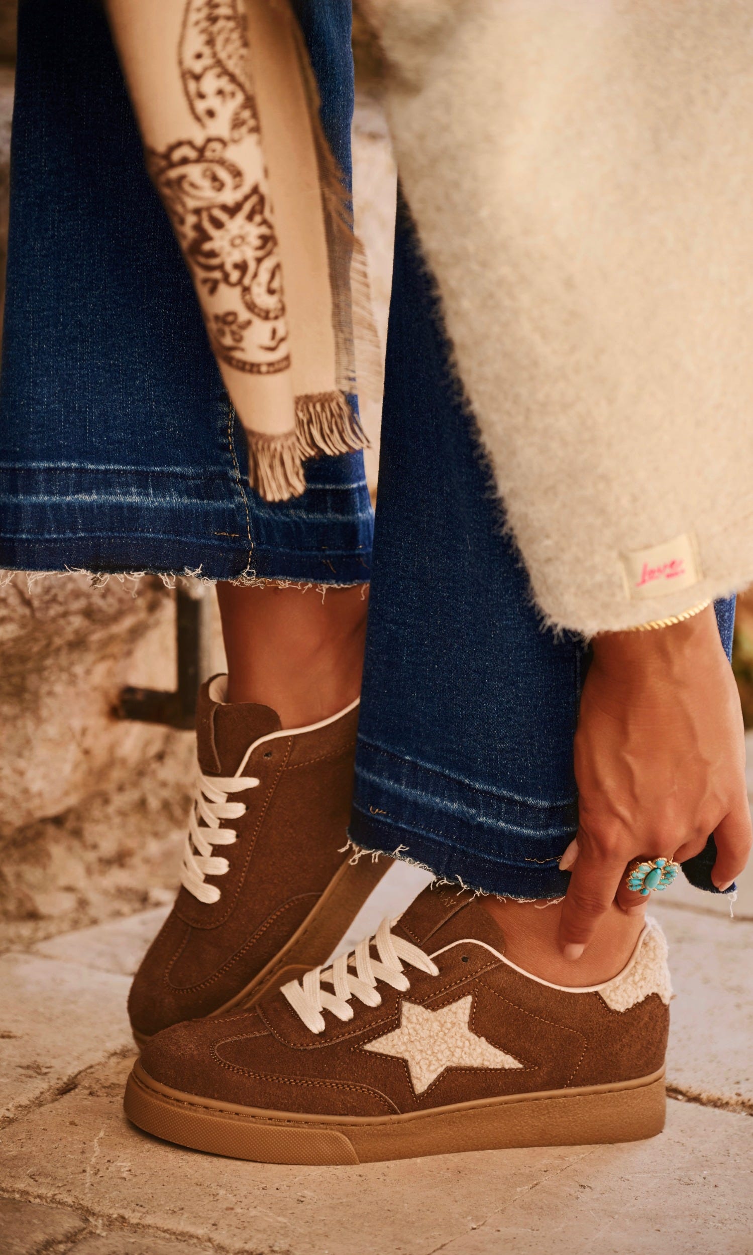 Découvrez ces baskets basses chocolat élégantes, ornées d'une étoile de chaque côté pour une touche de style.