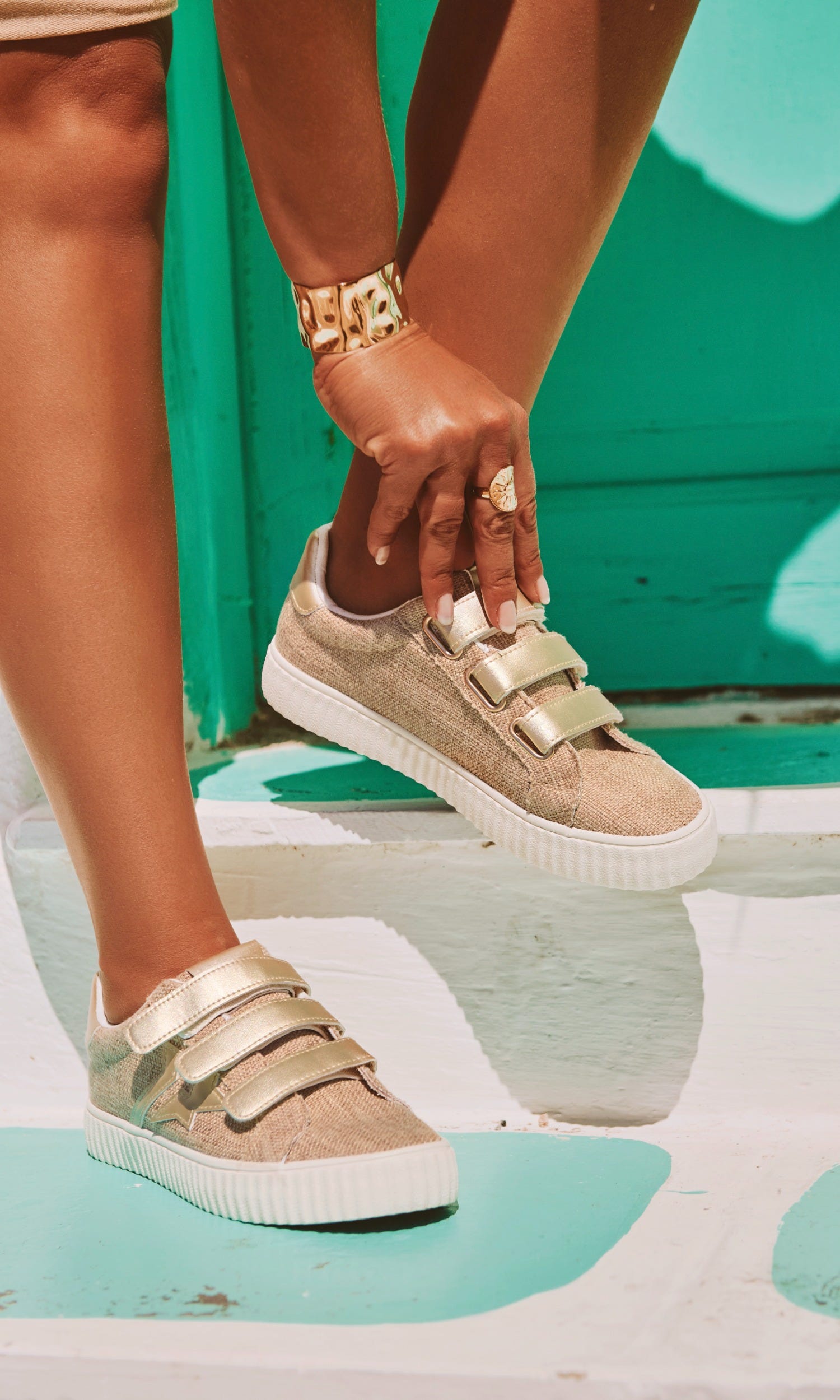 Leur semelle extérieure en gomme assure une bonne adhérence, tandis que le scratch doré ajoute une touche d'élégance.