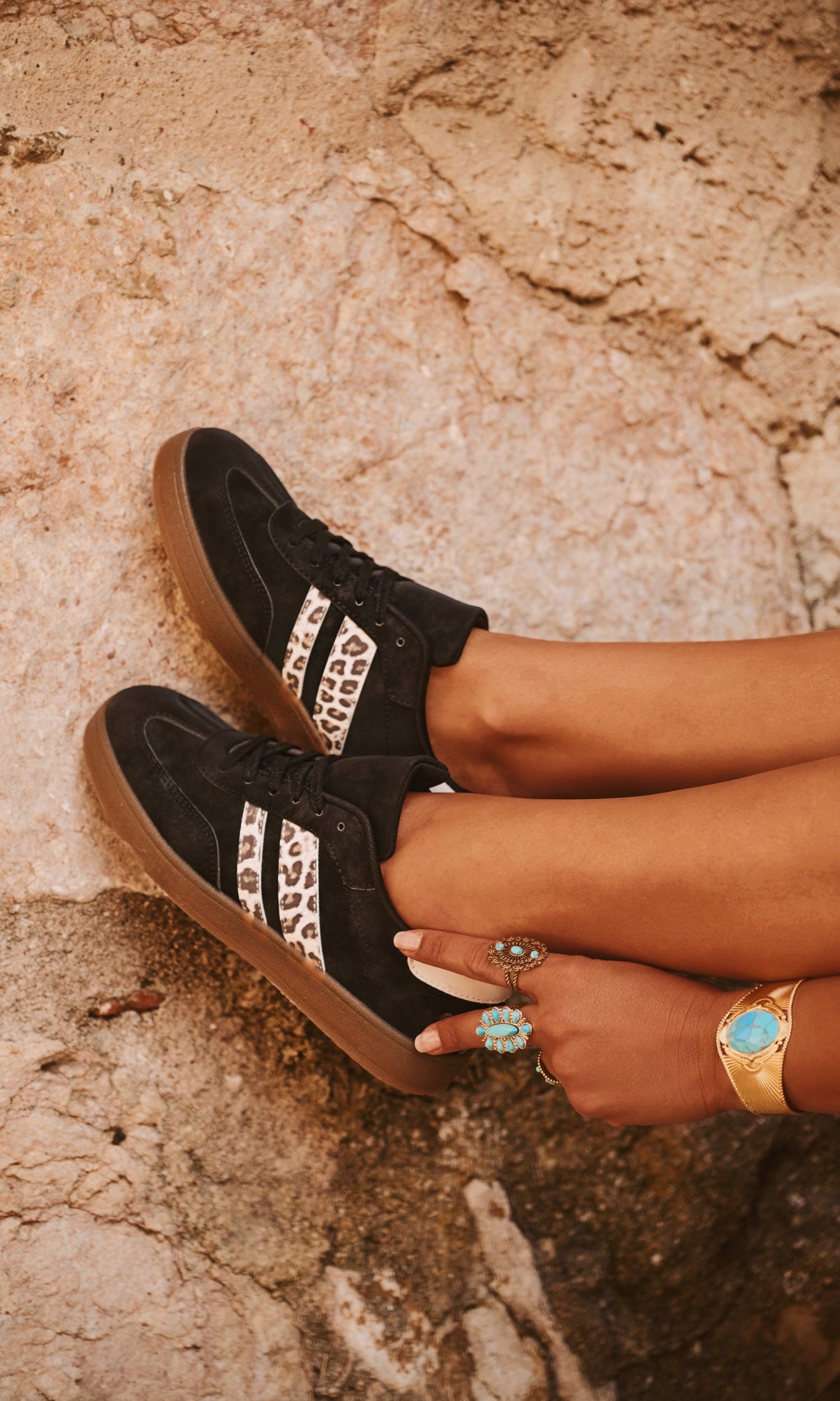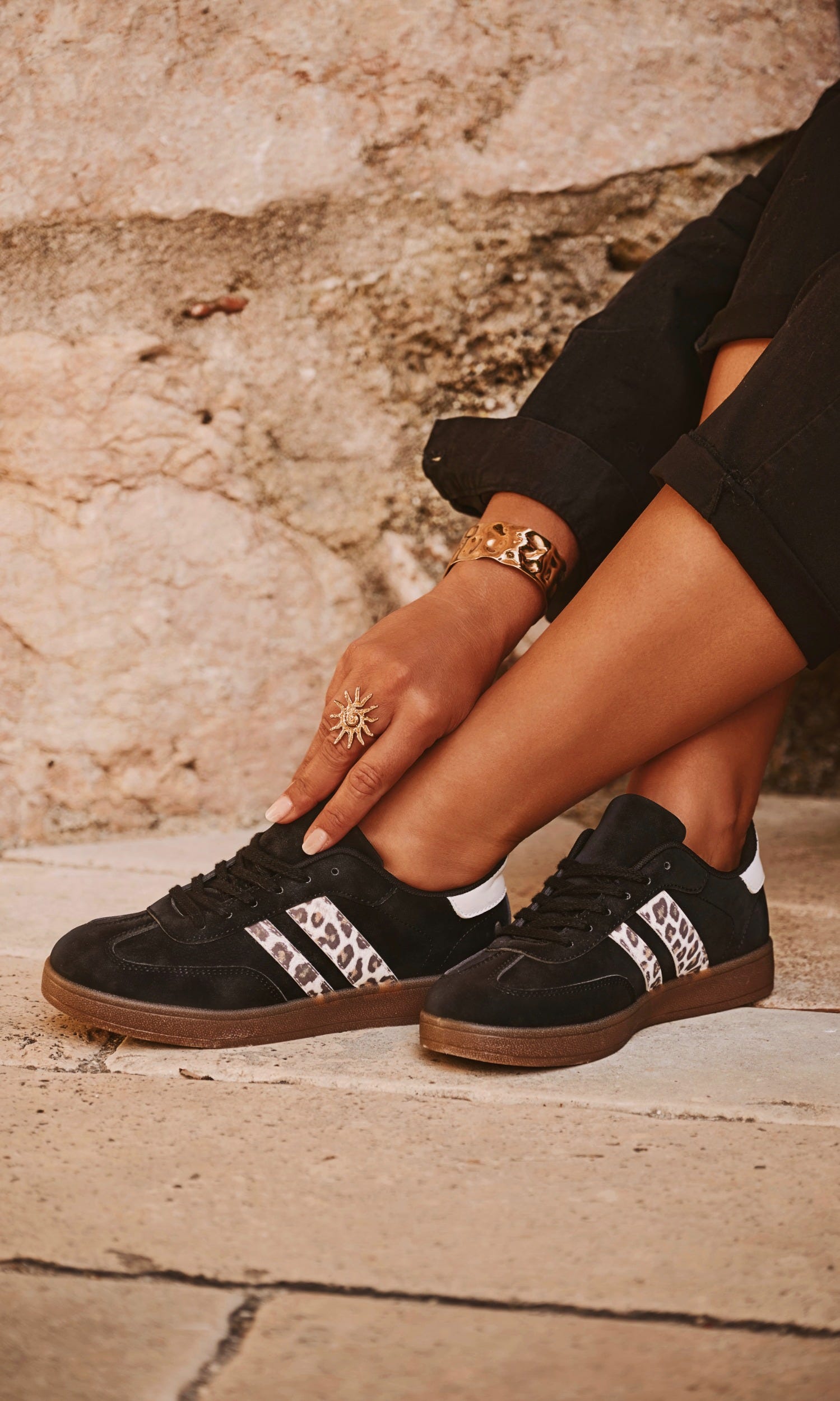 Découvrez ces élégantes baskets basses noires léopard, parfaites pour ajouter une touche de couleur à votre quotidien.