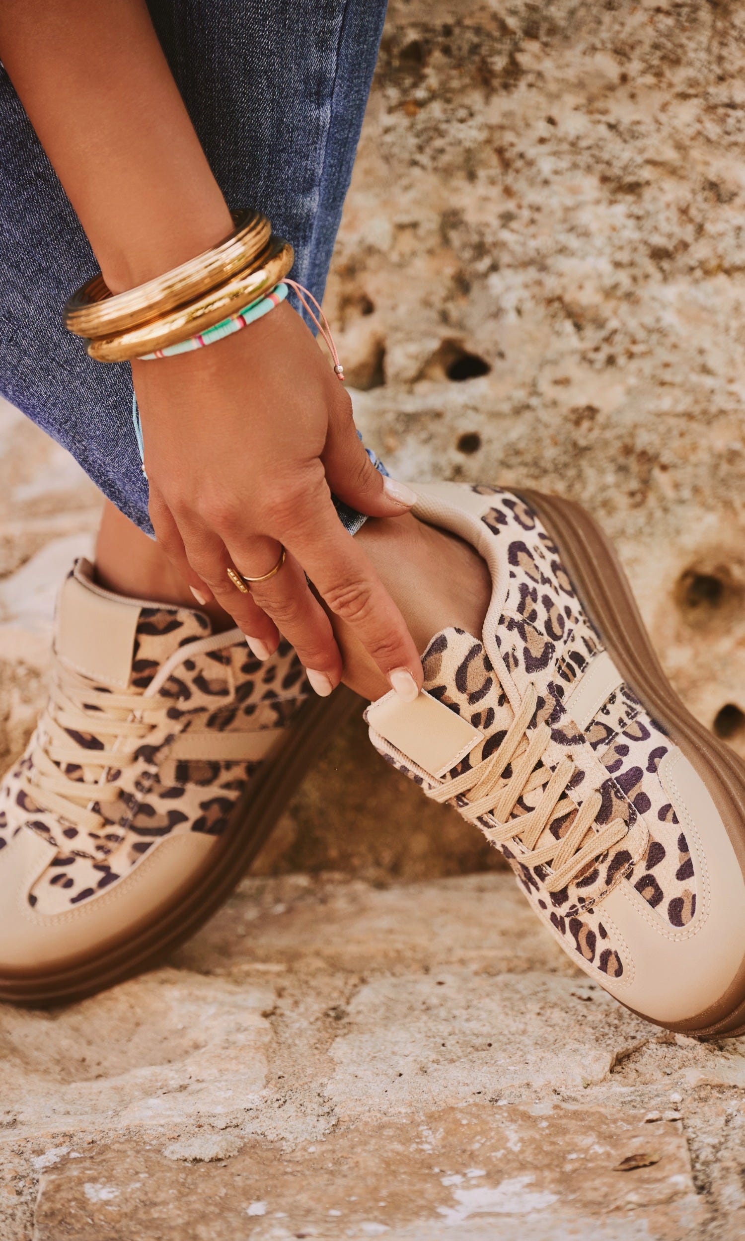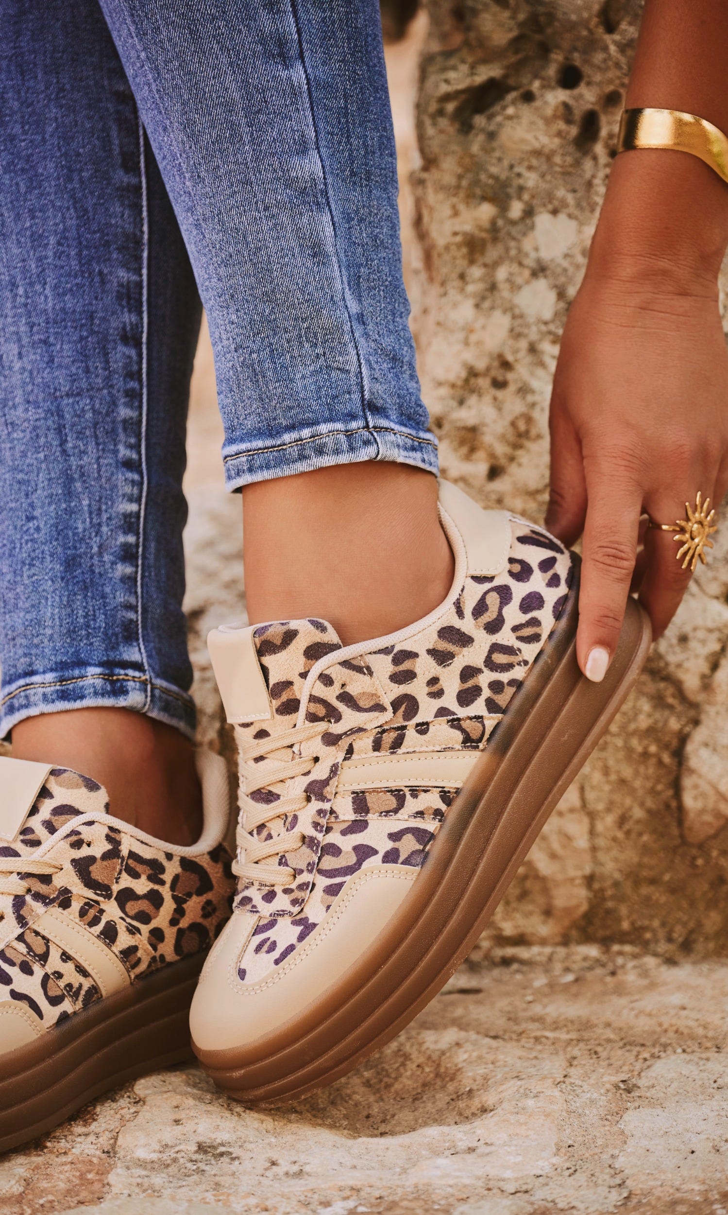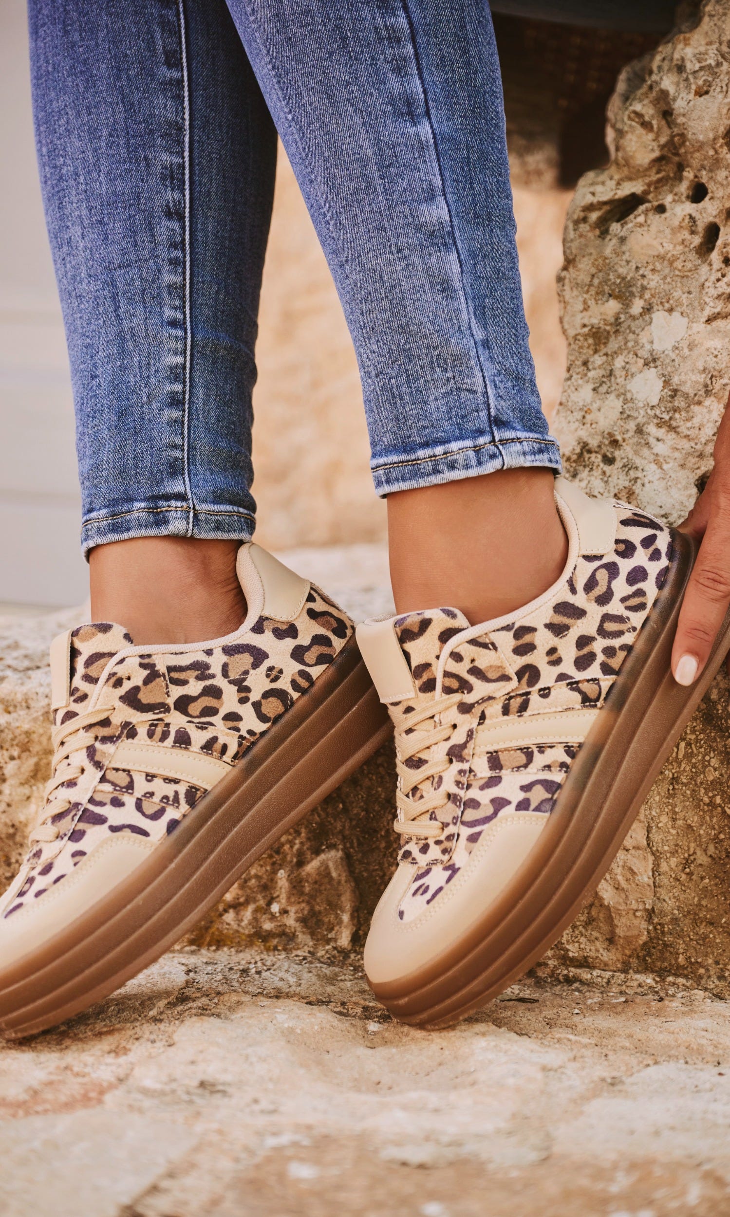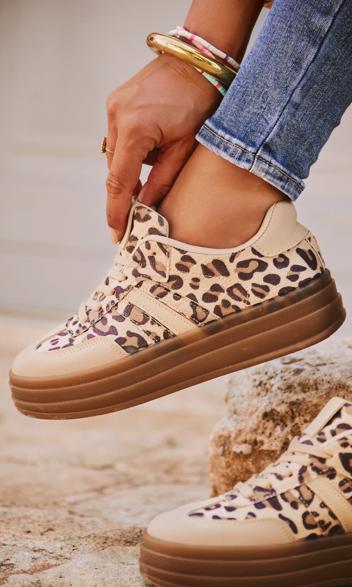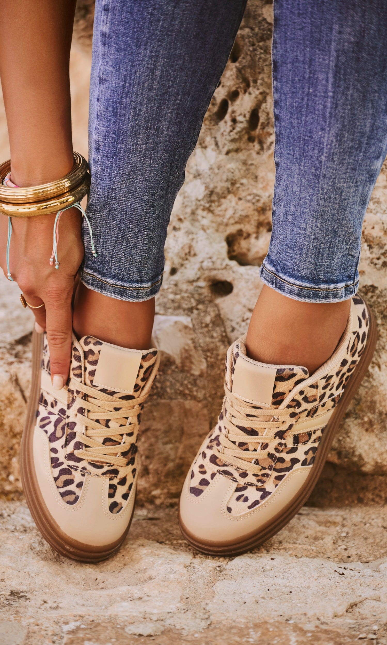 Découvrez ces baskets basses beiges au joli motif léopard doux qui apportent une touche d'originalité à votre look.