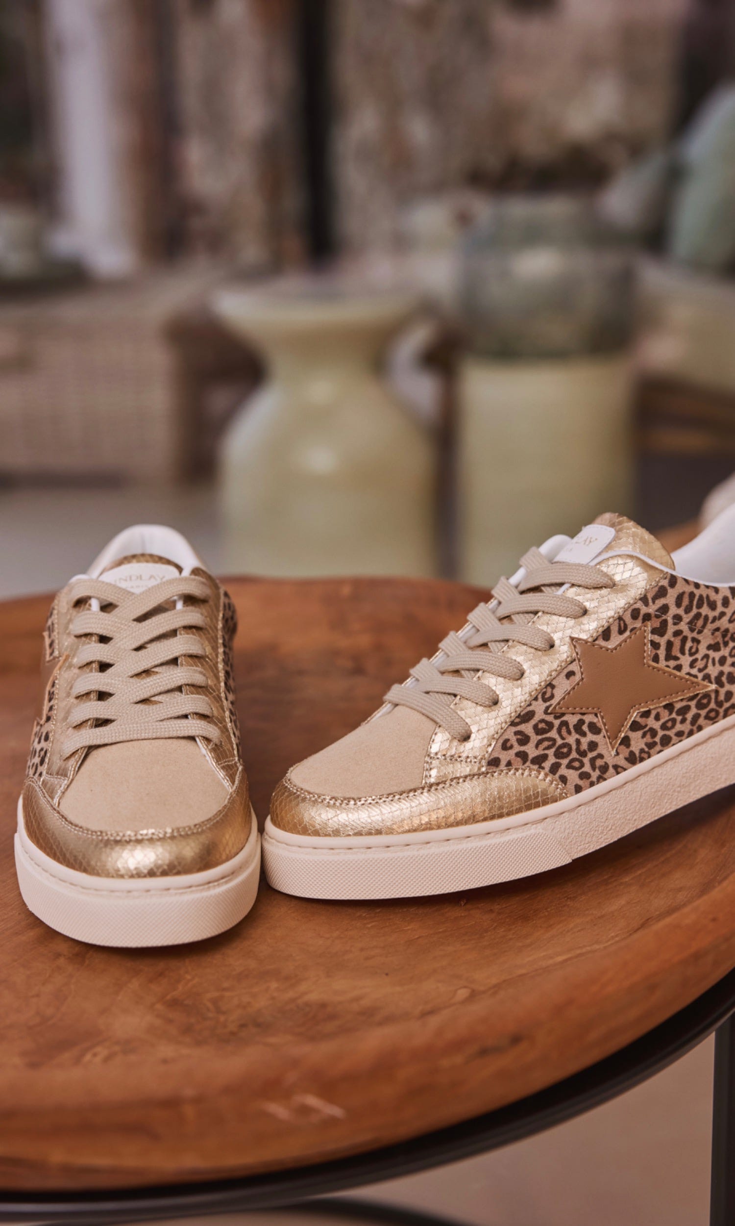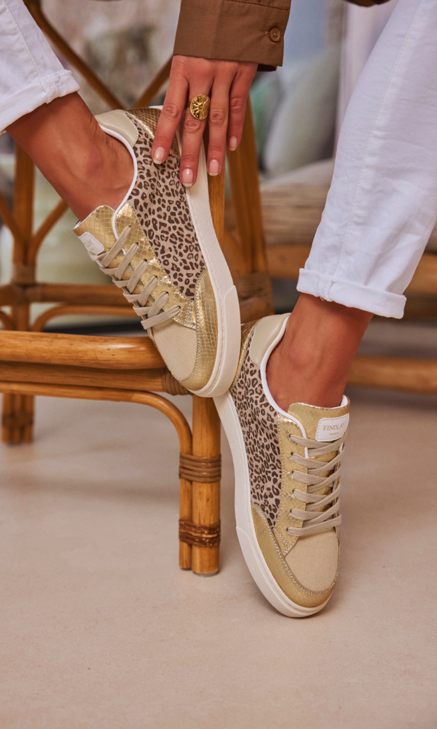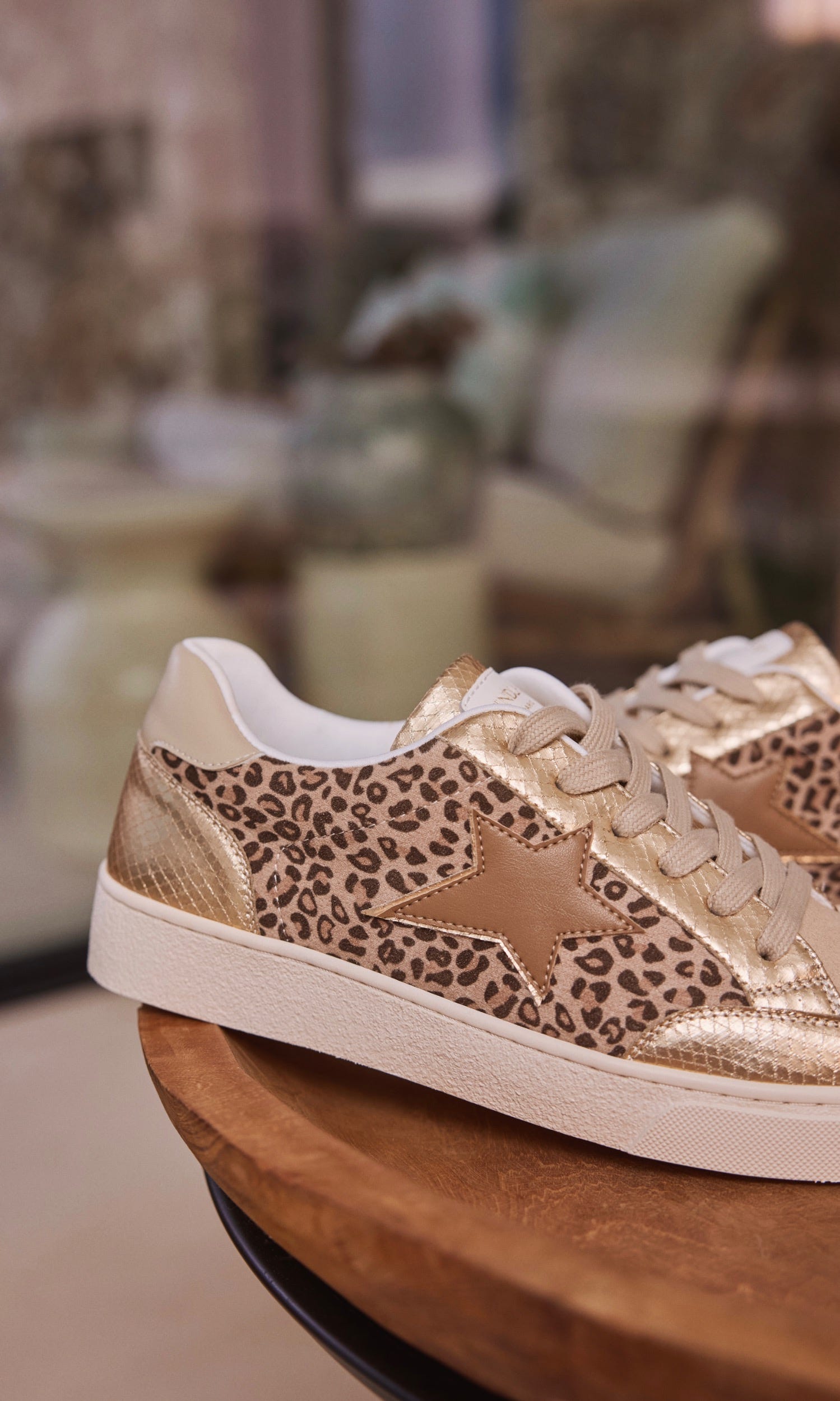 Découvrez nos baskets basses beige léopard, alliant style et confort.