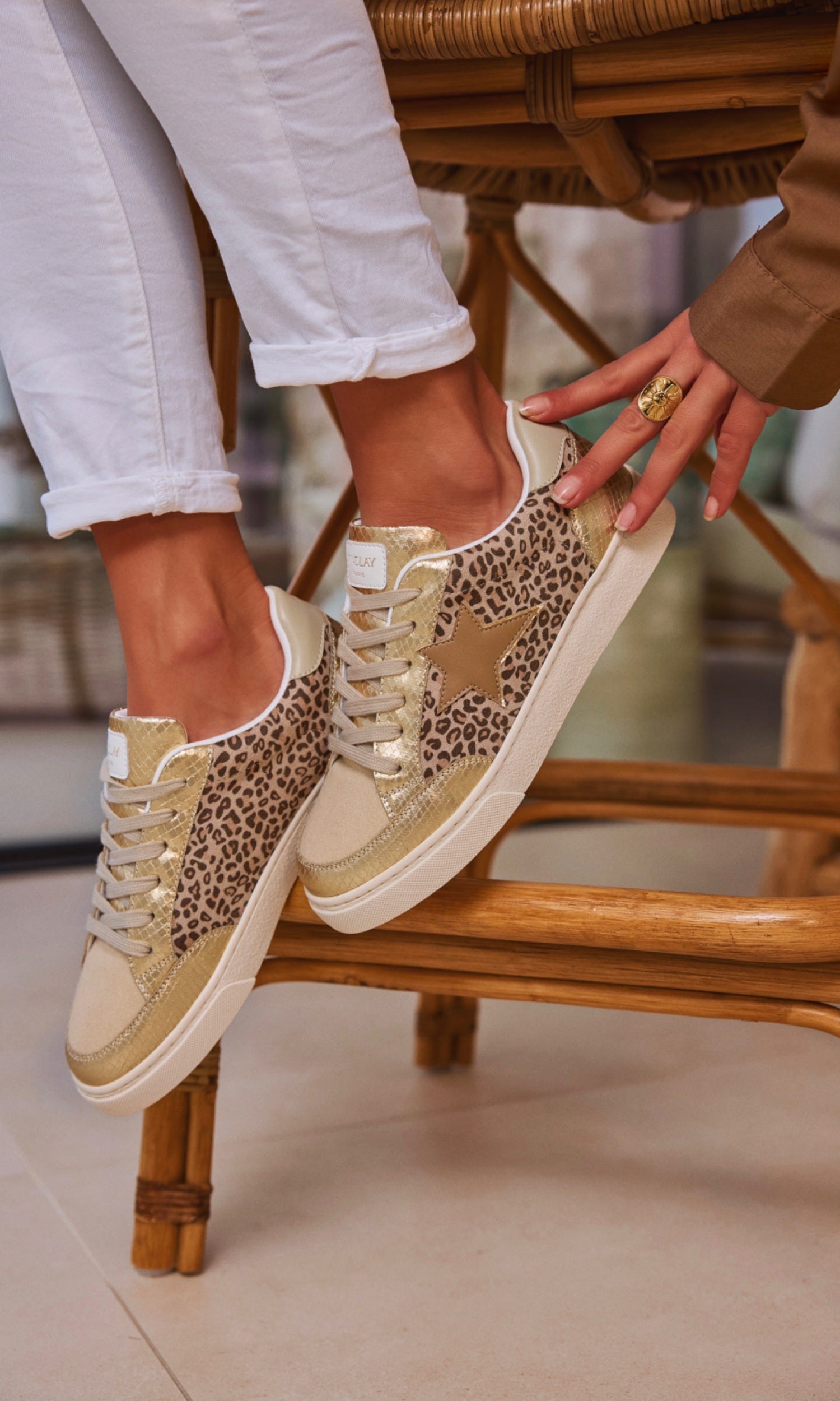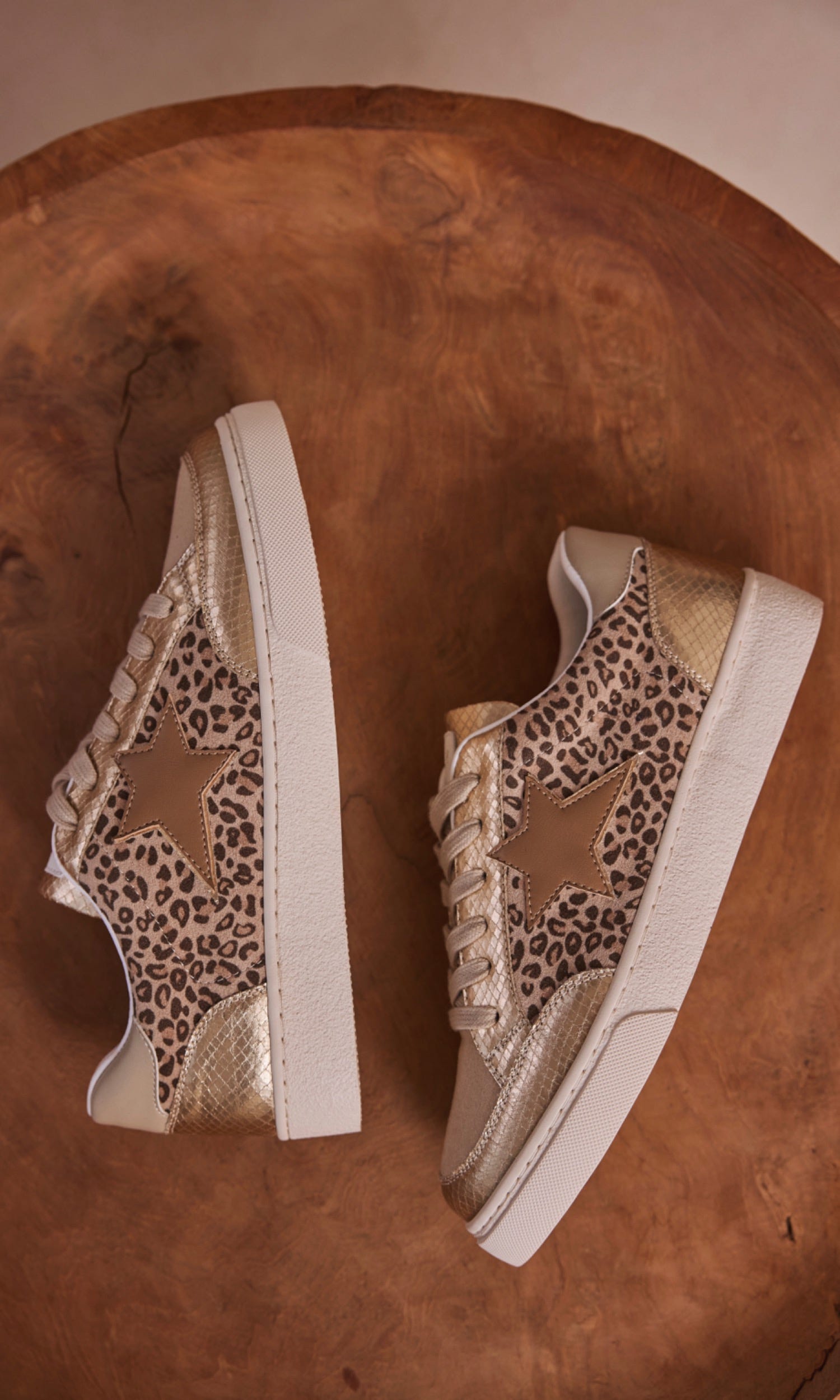 Avec un contrefort en synthétique beige, elles affichent un motif étoile en simili cuir sur les côtés et un imprimé léopard qui apporte une touche originale.
