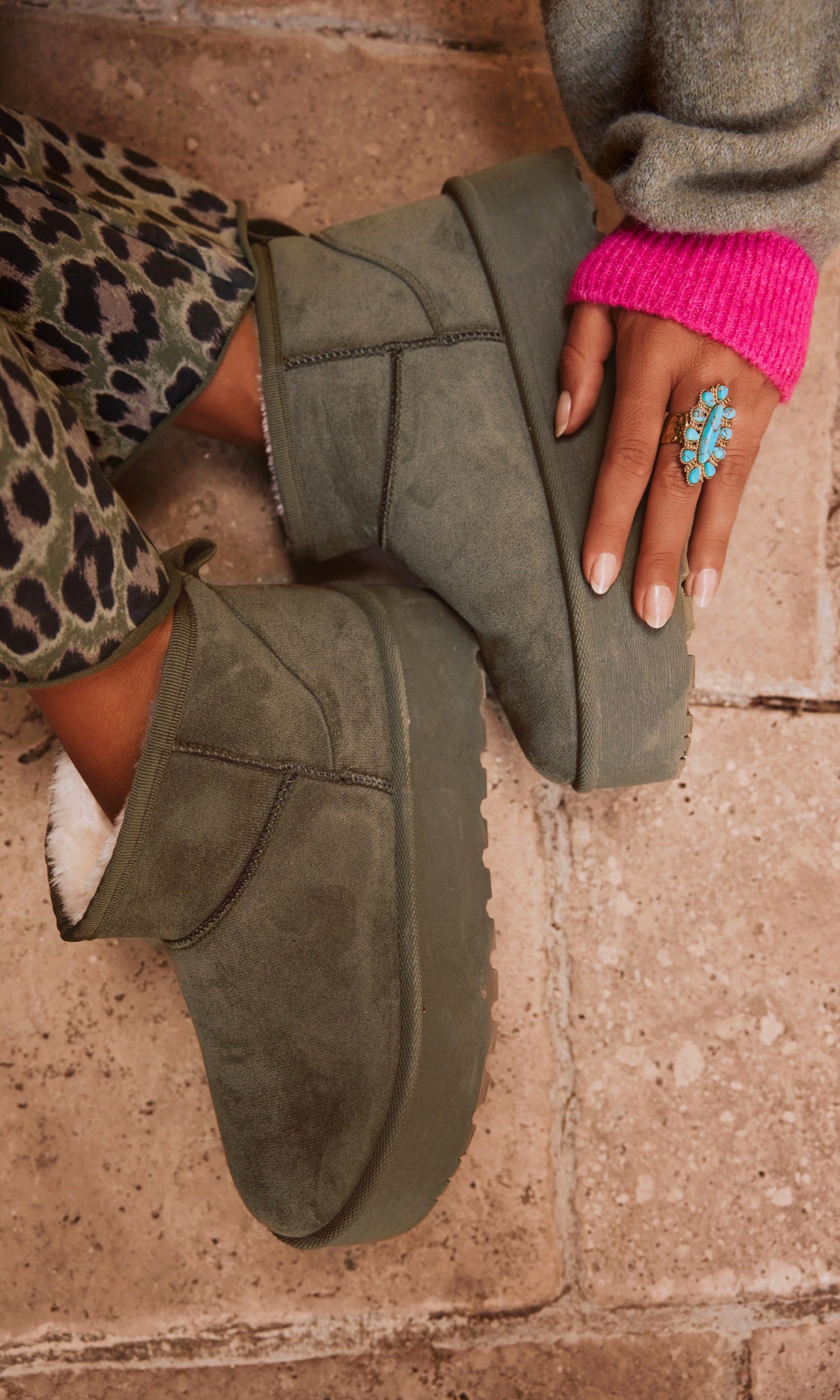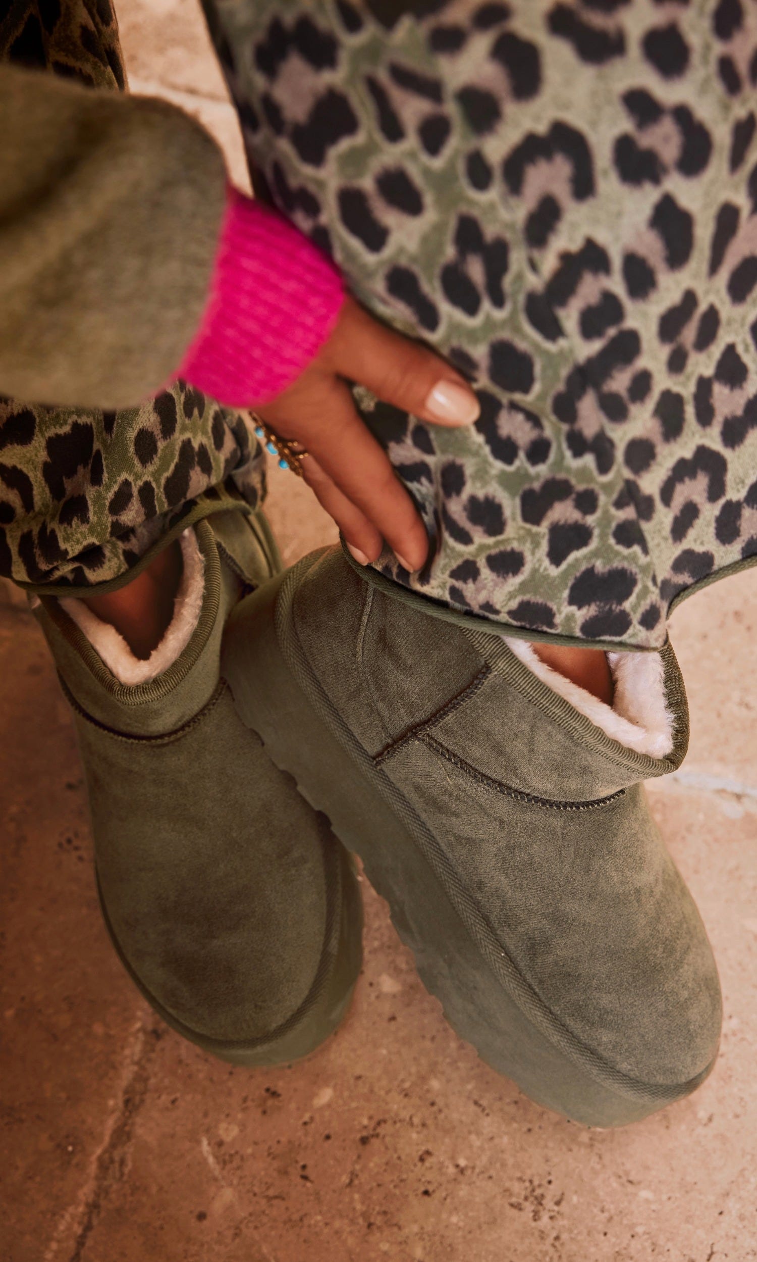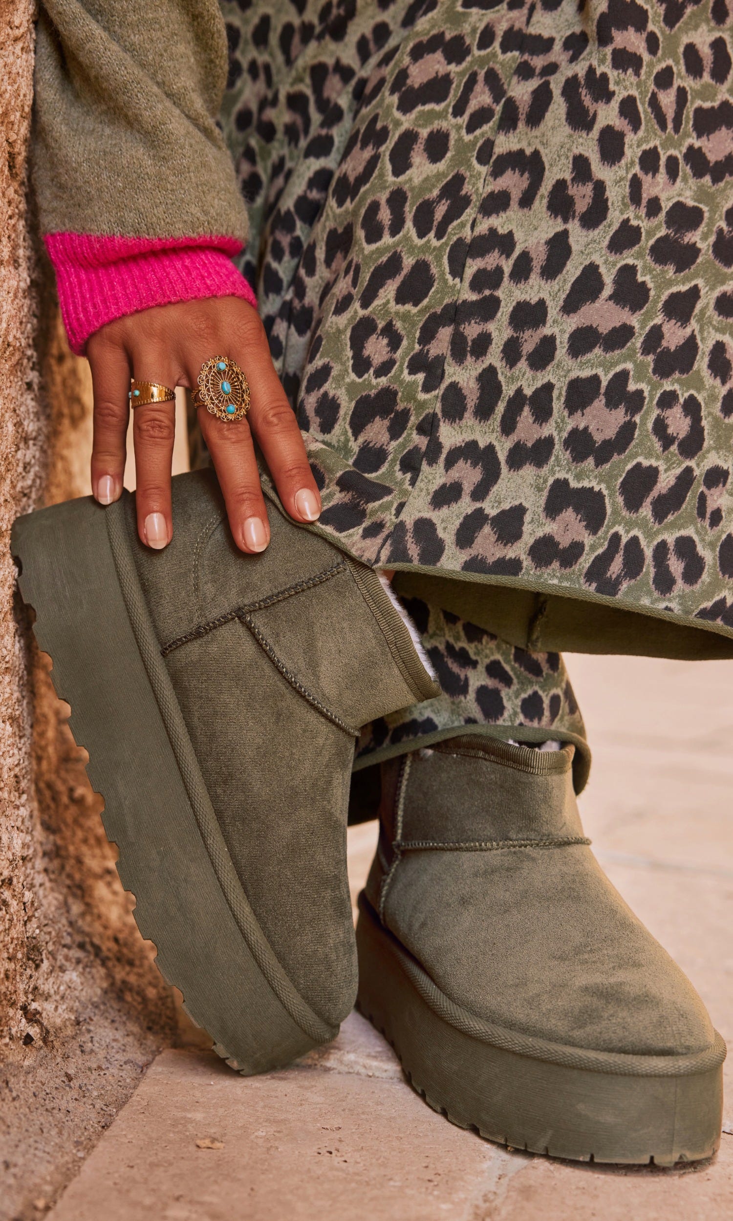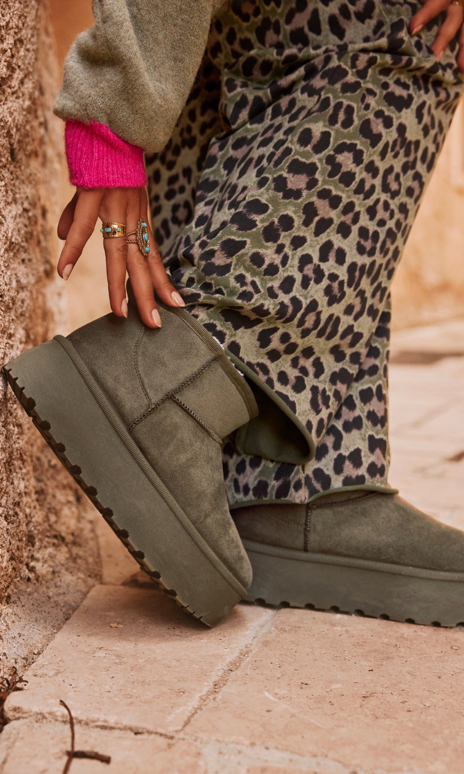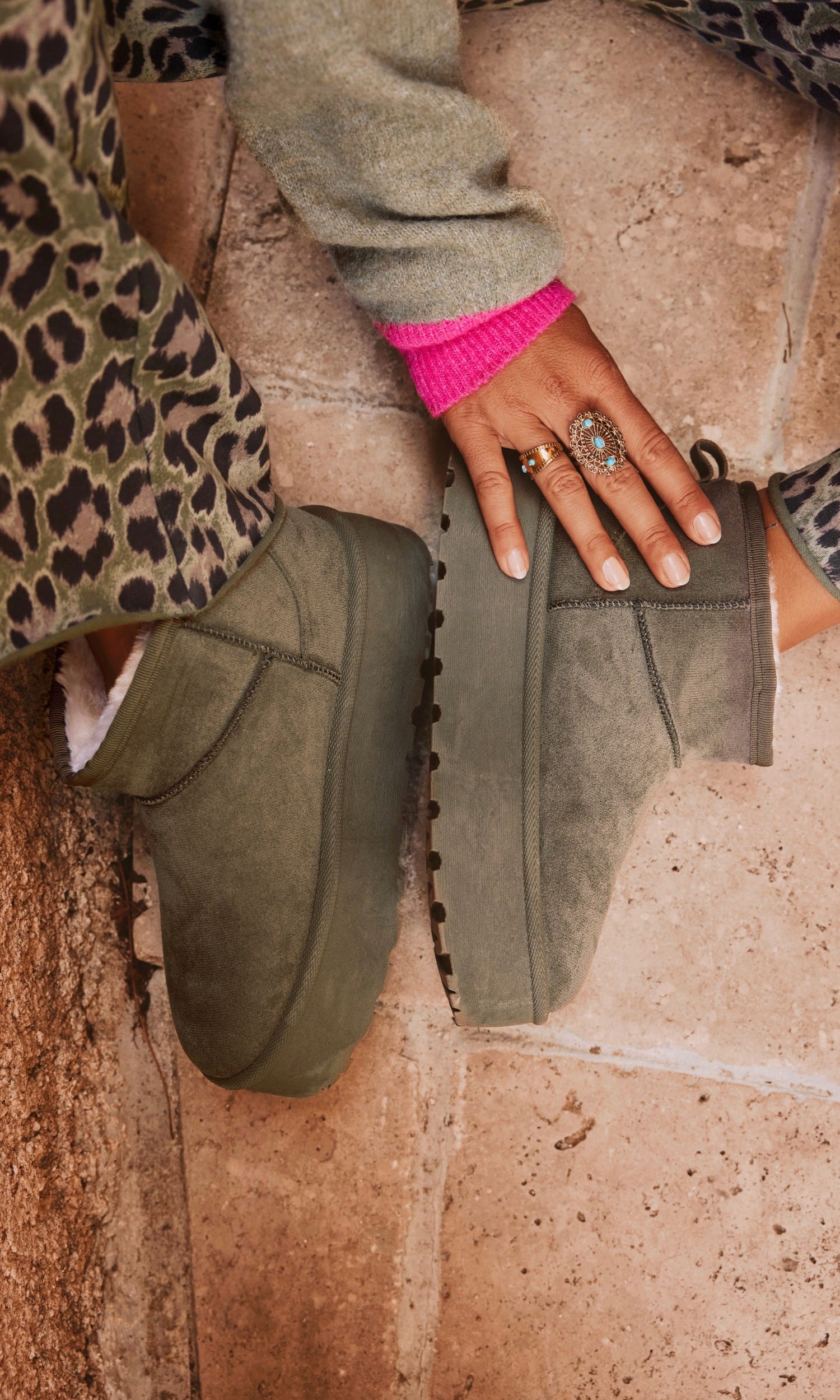 Découvrez nos boots kaki confortables en effet daim, parfaites pour allier style et bien-êtreLeur intérieur en fourrure vous garantit chaleur et confort, tandis que la semelle compensée offre un soutien optimal à chaque pasIdéales pour affronter l’hiver tout en restant chic et à l’aise