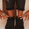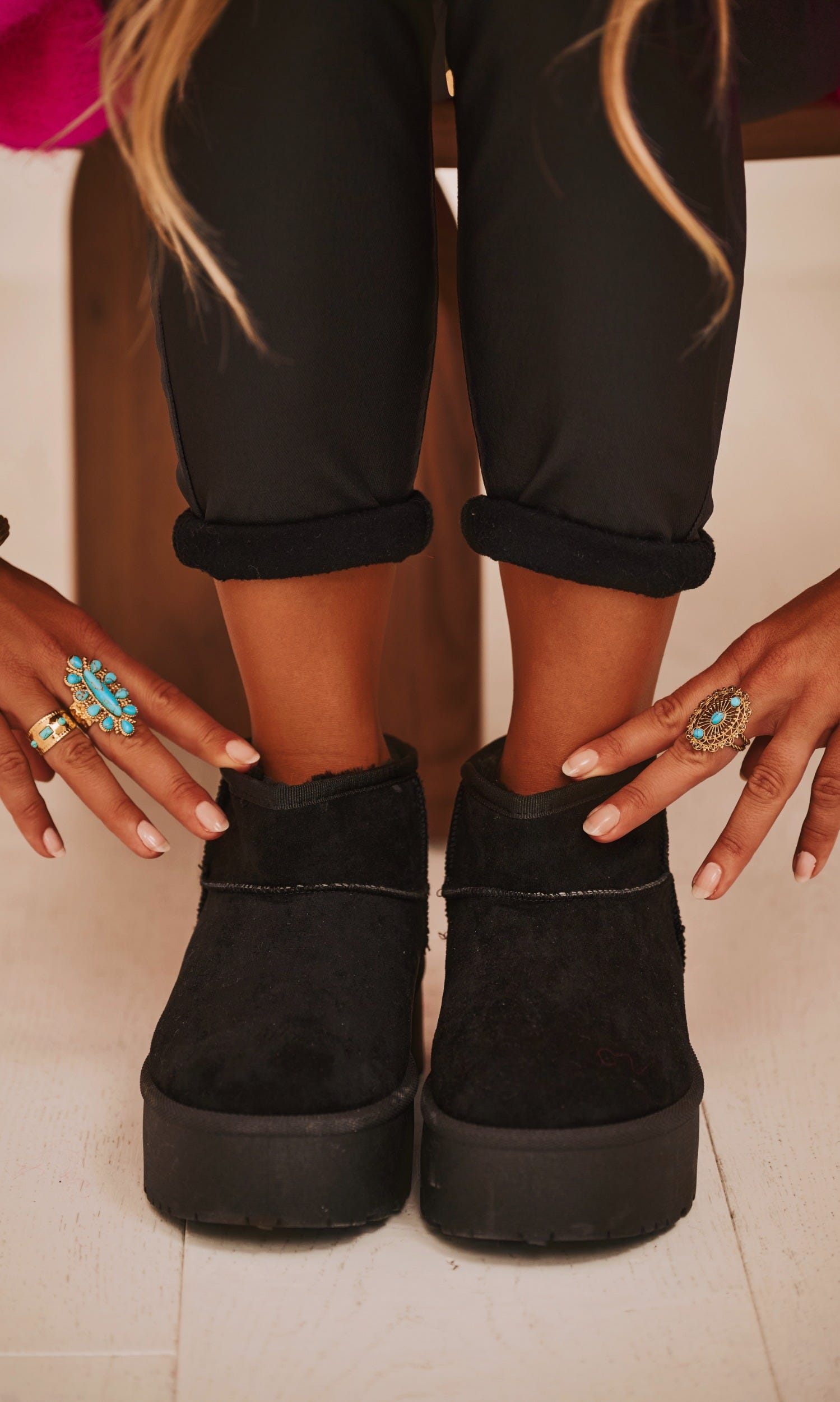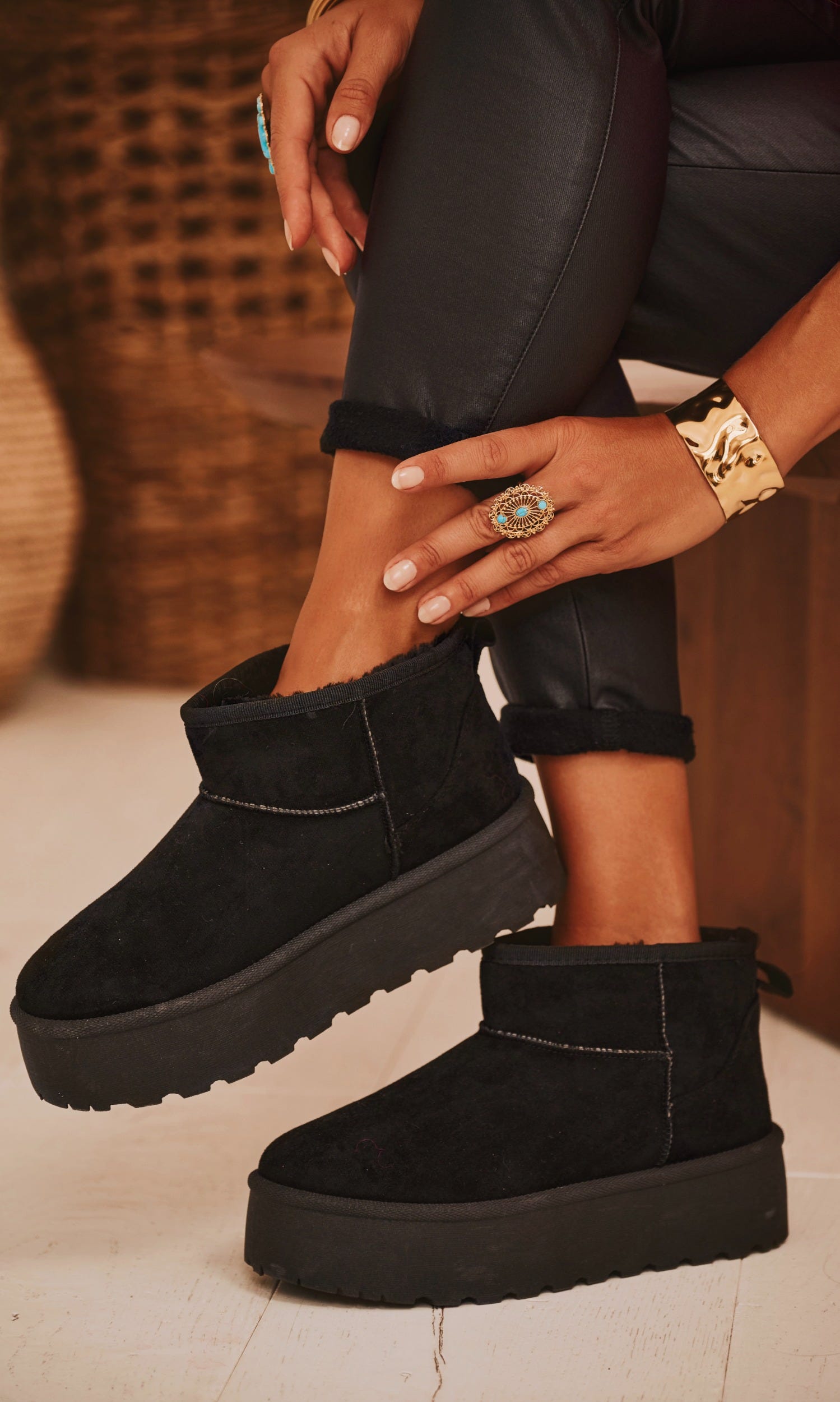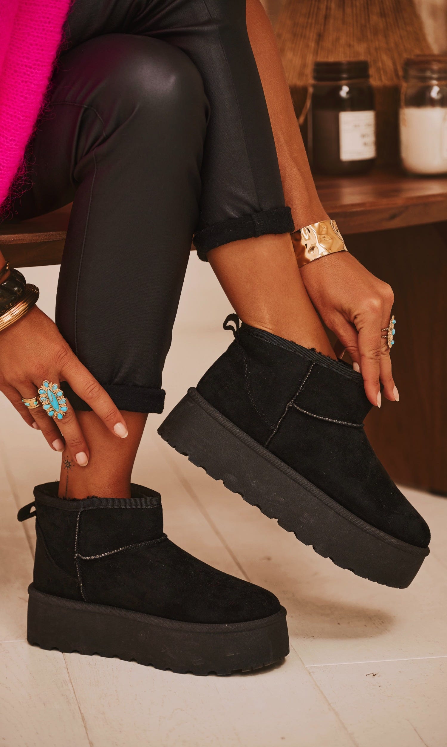 Découvrez nos boots noires confortables au luxueux effet daimLeur intérieur en fourrure douce assure une chaleur agréable pour vos pieds, tandis que la semelle compensée offre un soutien optimal tout en ajoutant une touche de styleParfaites pour affronter l'hiver avec élégance et confort