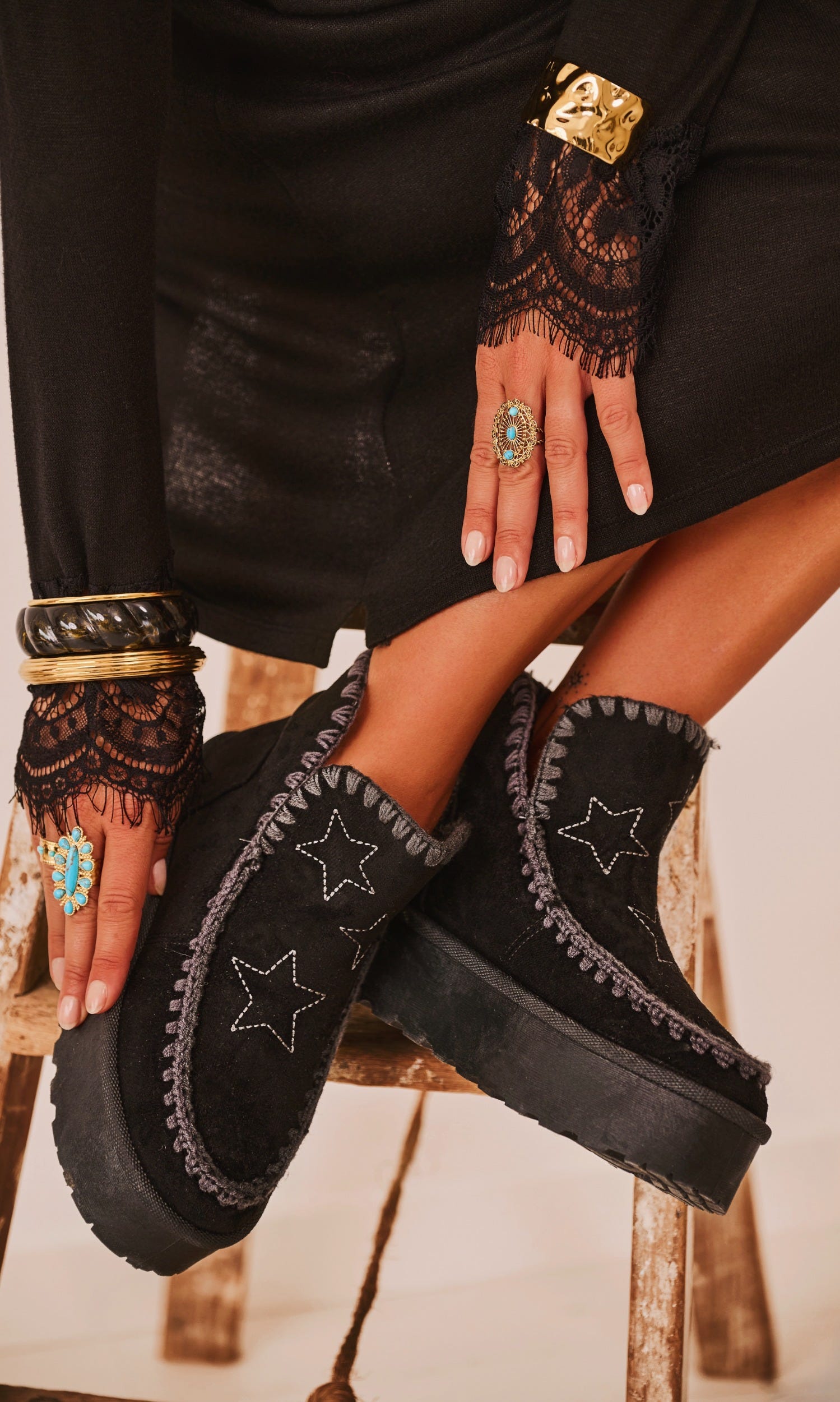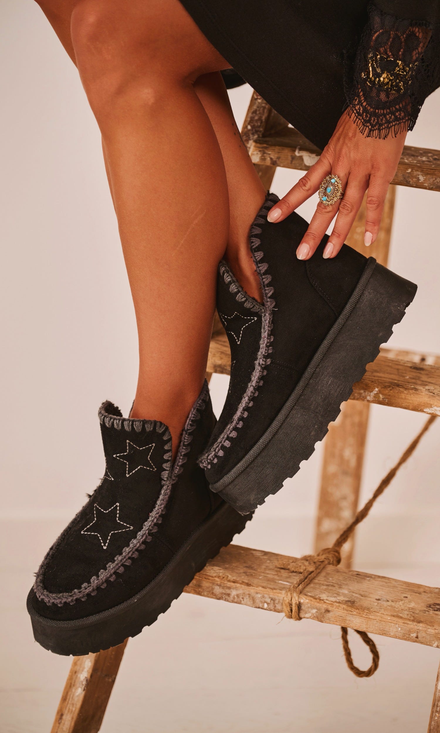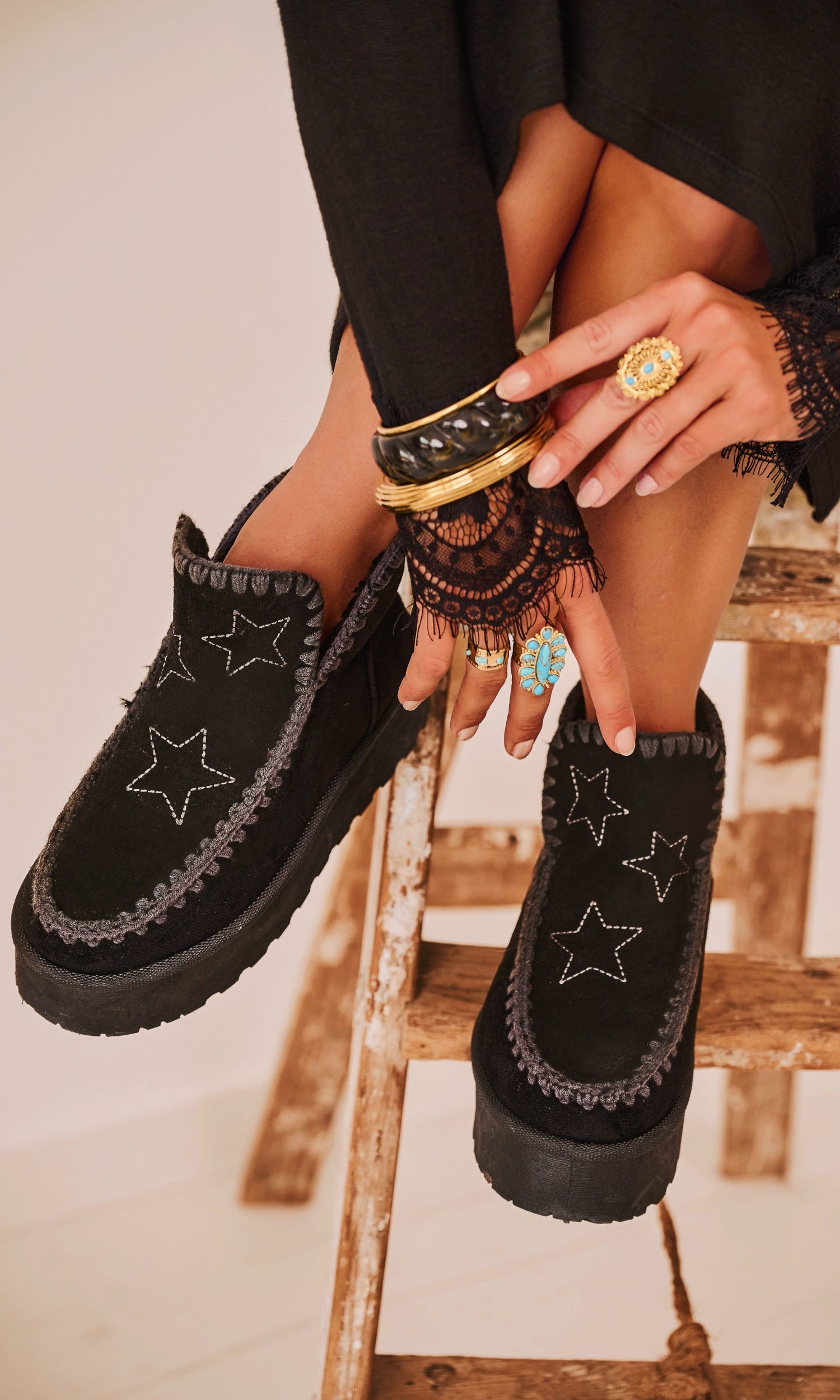 Avec leurs trois étoiles brodées sur le dessus et leurs surpiqûres raffinées, elles se distinguent par leur effet daim luxueux.