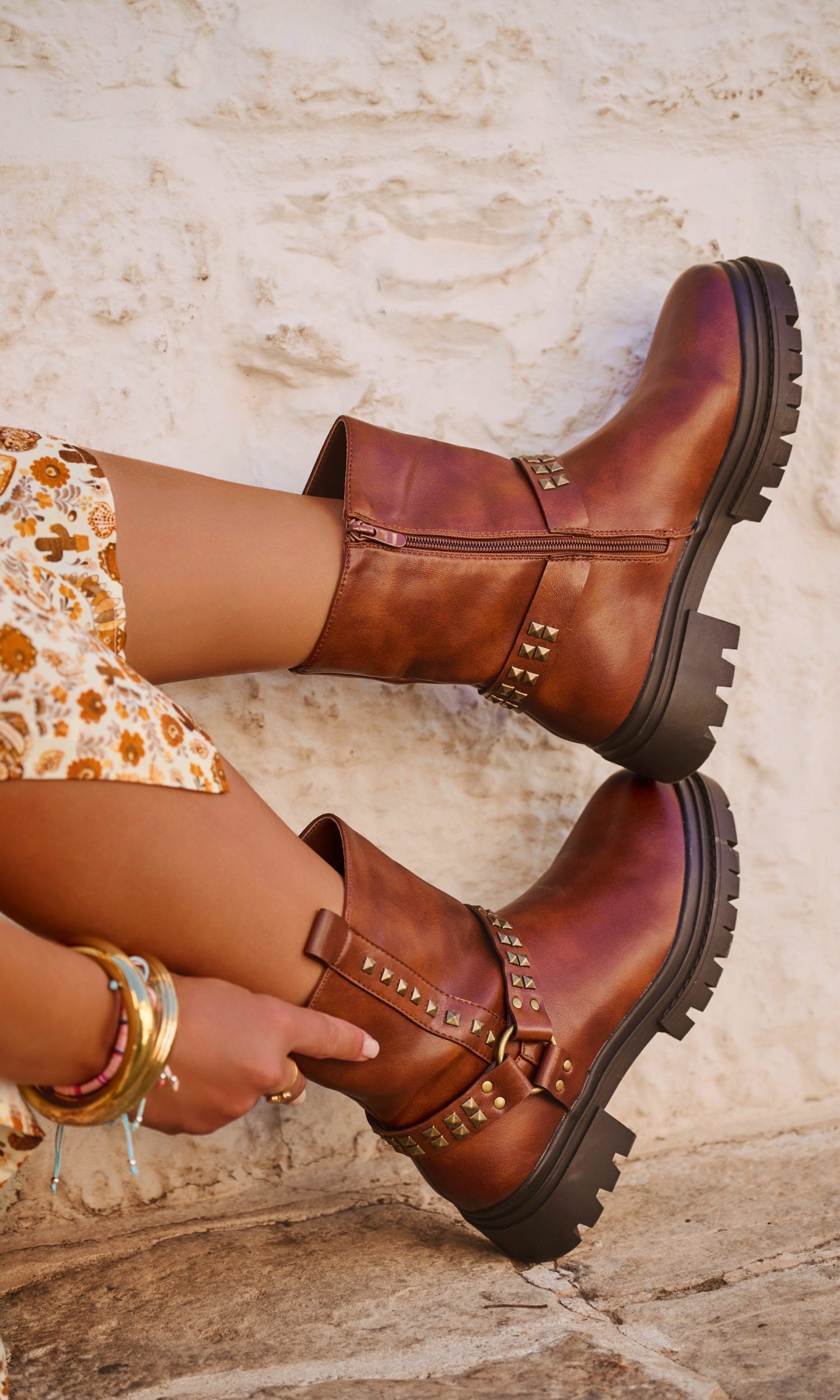 Avec une boucle décorative cloutée et une fermeture éclair sur le côté, elles allient confort et style.