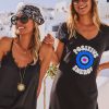 Découvrez notre foulard noir carré en tissu satiné, orné d'un motif "Peace and Love" en total look.