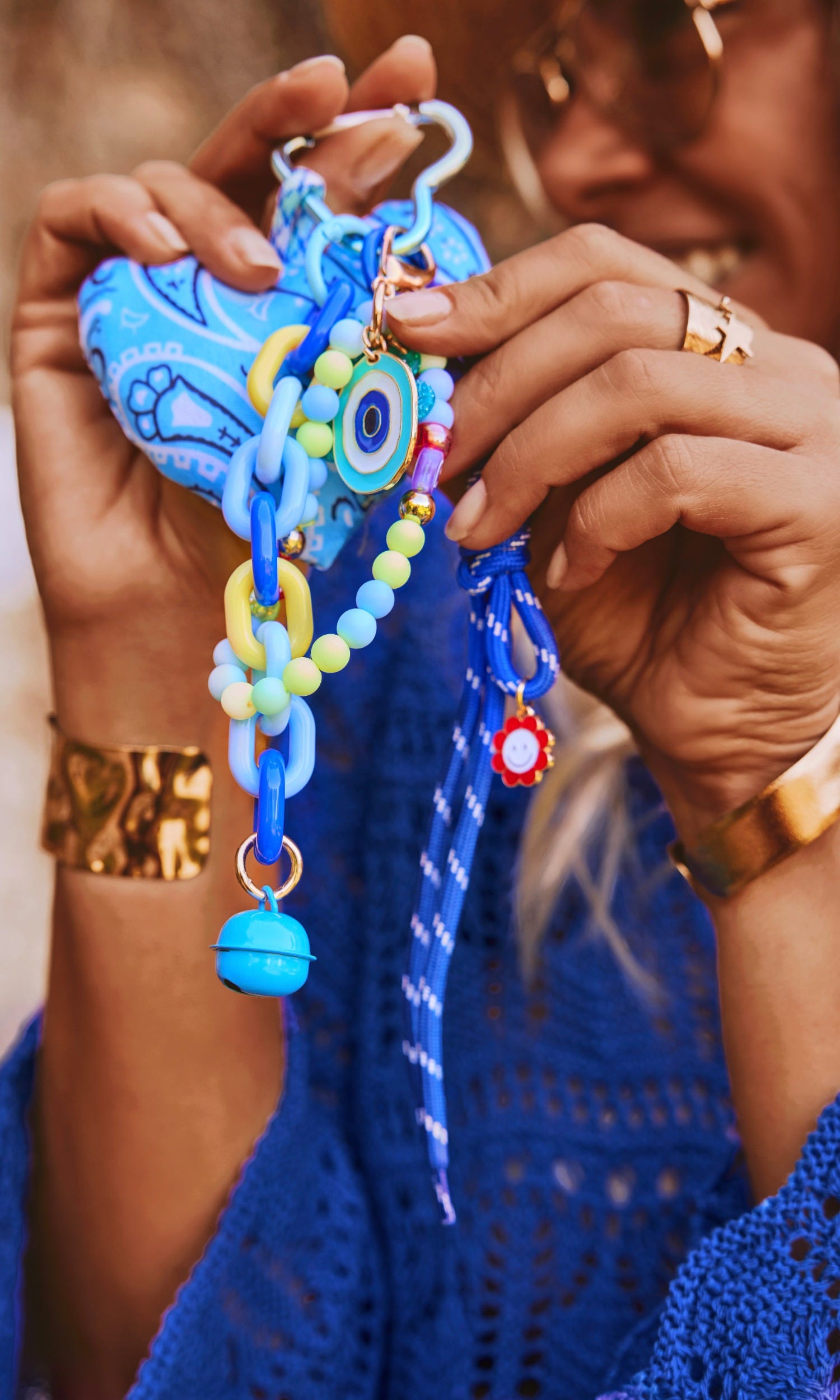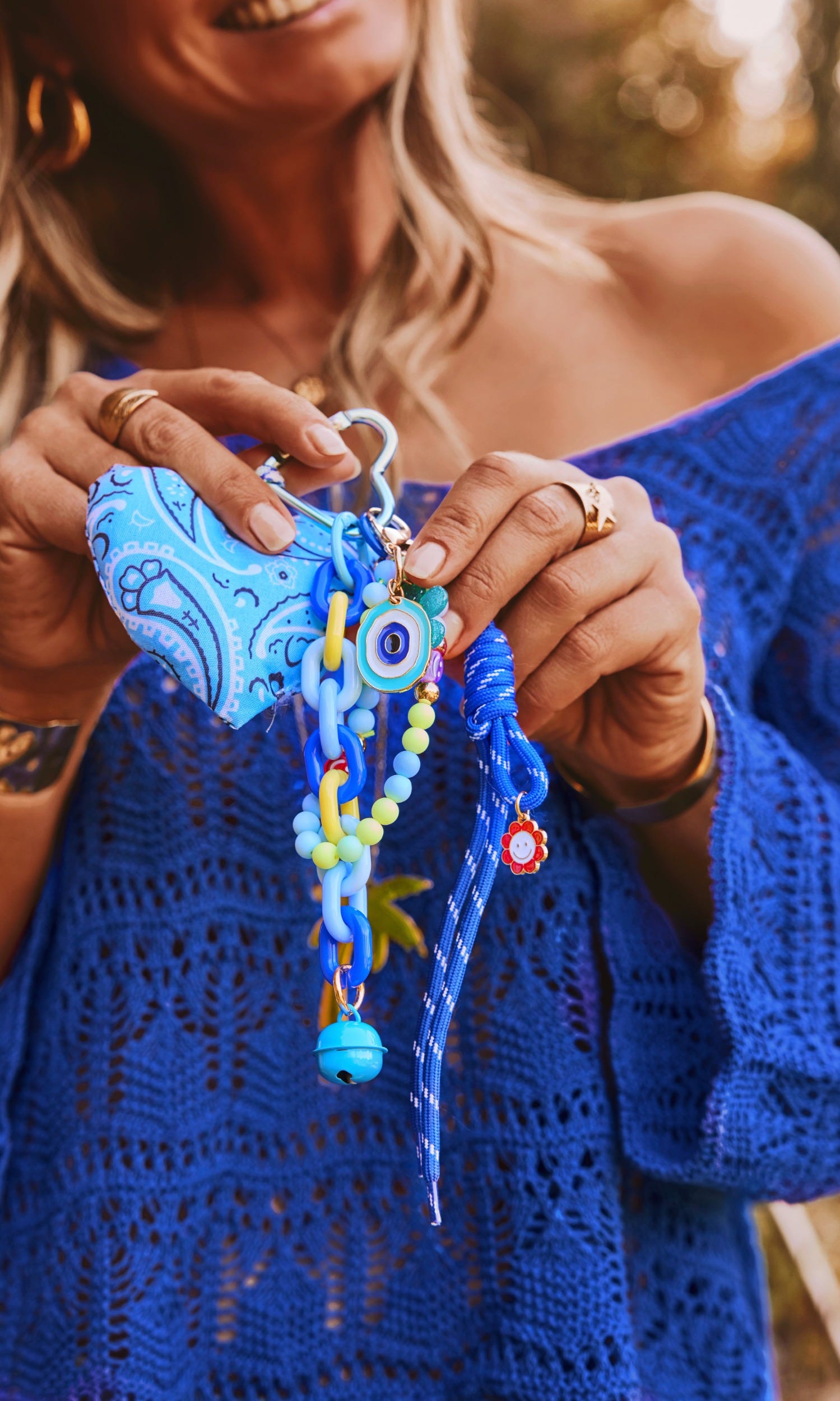 Ajoutez une touche de charme à vos accessoires avec ce porte-clés bleu.