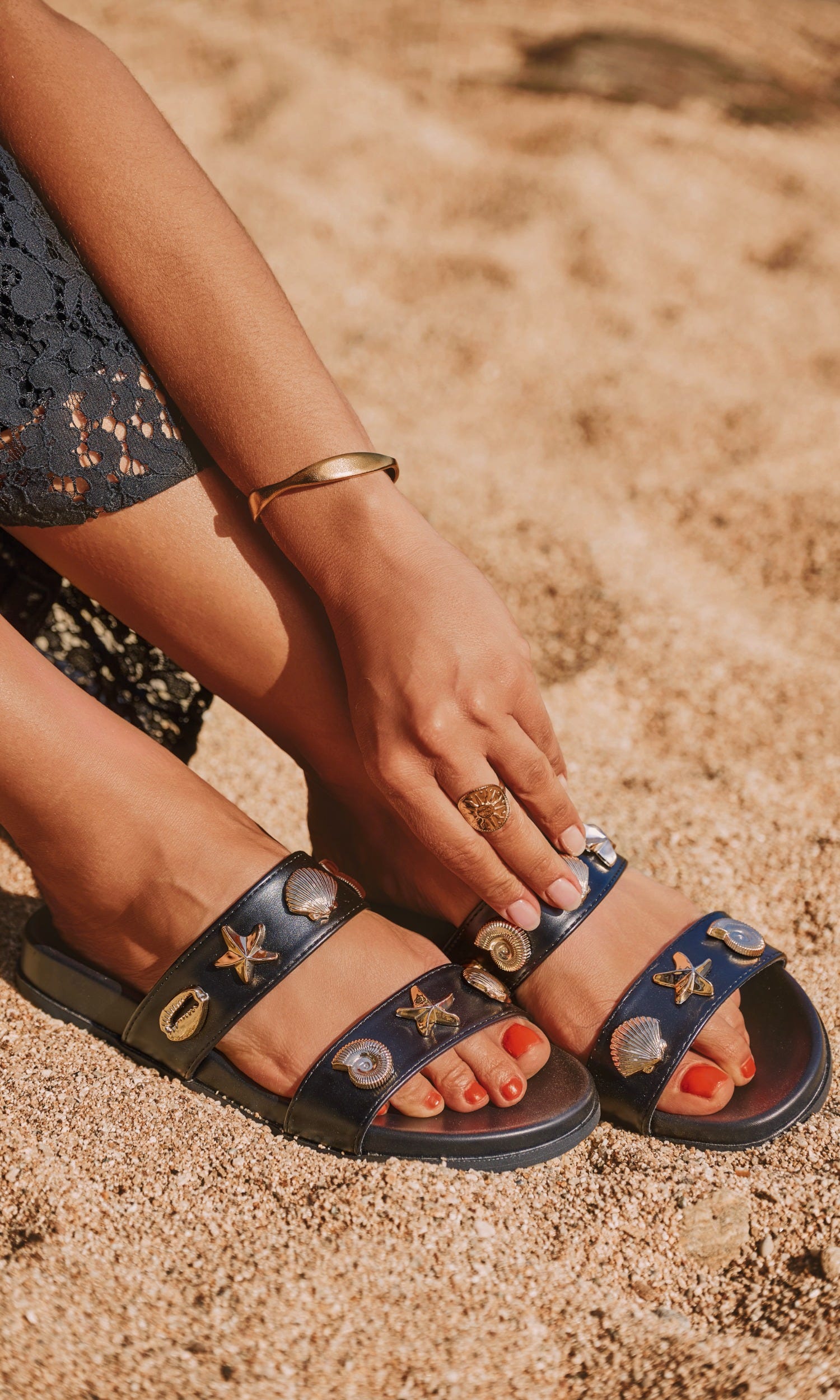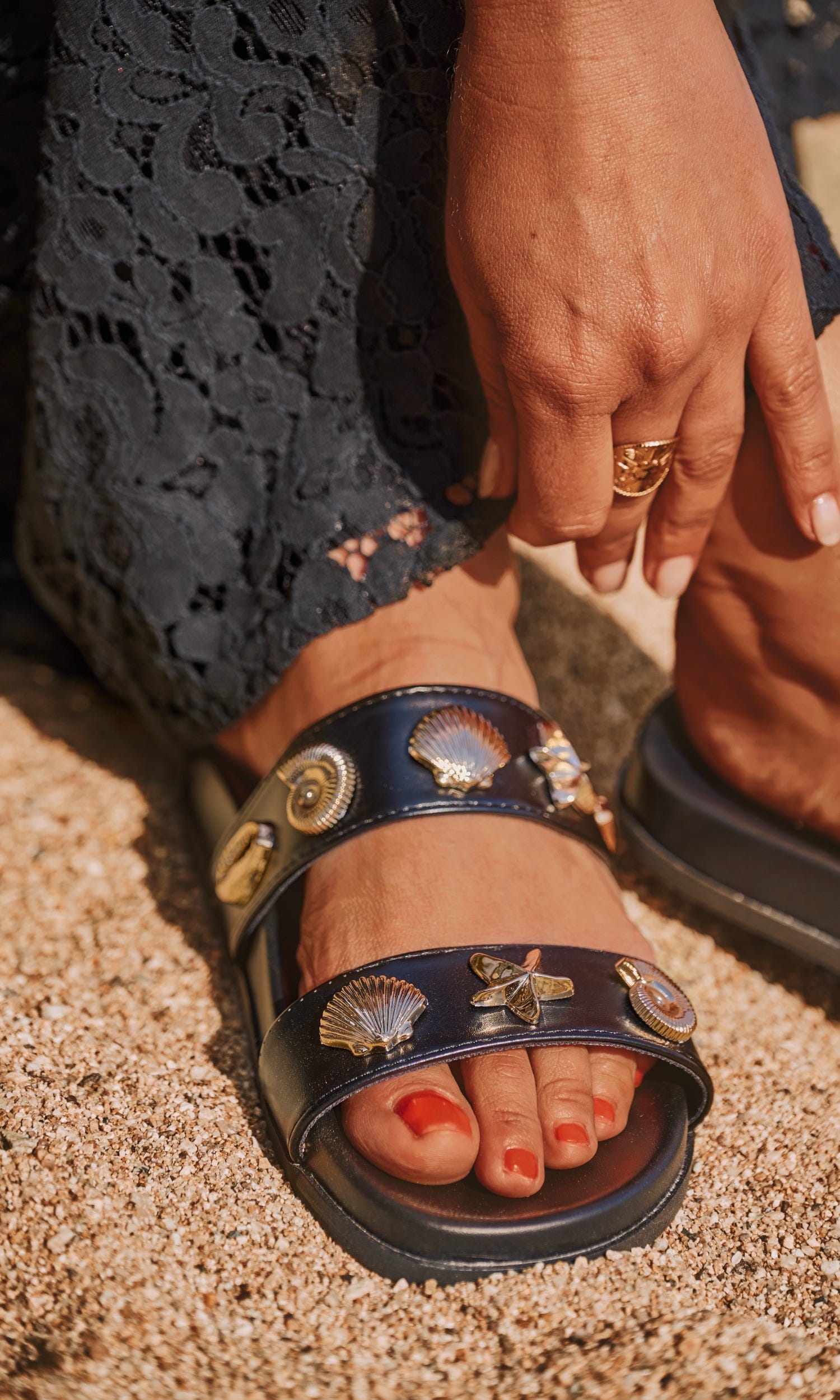 Succombez au charme de ces sandales romaines aux lanières noires.