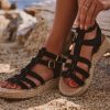 Découvrez nos sandales élégantes en suédine noire, dotées de lanières délicates et d'une semelle extérieure en élastomère et corde pour un style à la fois chic et naturel.