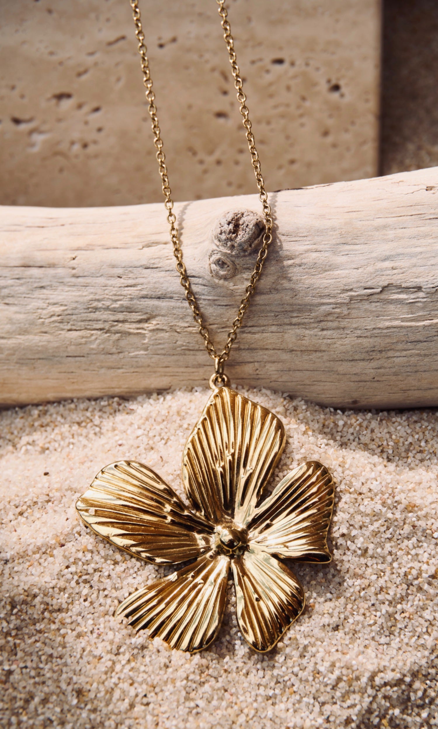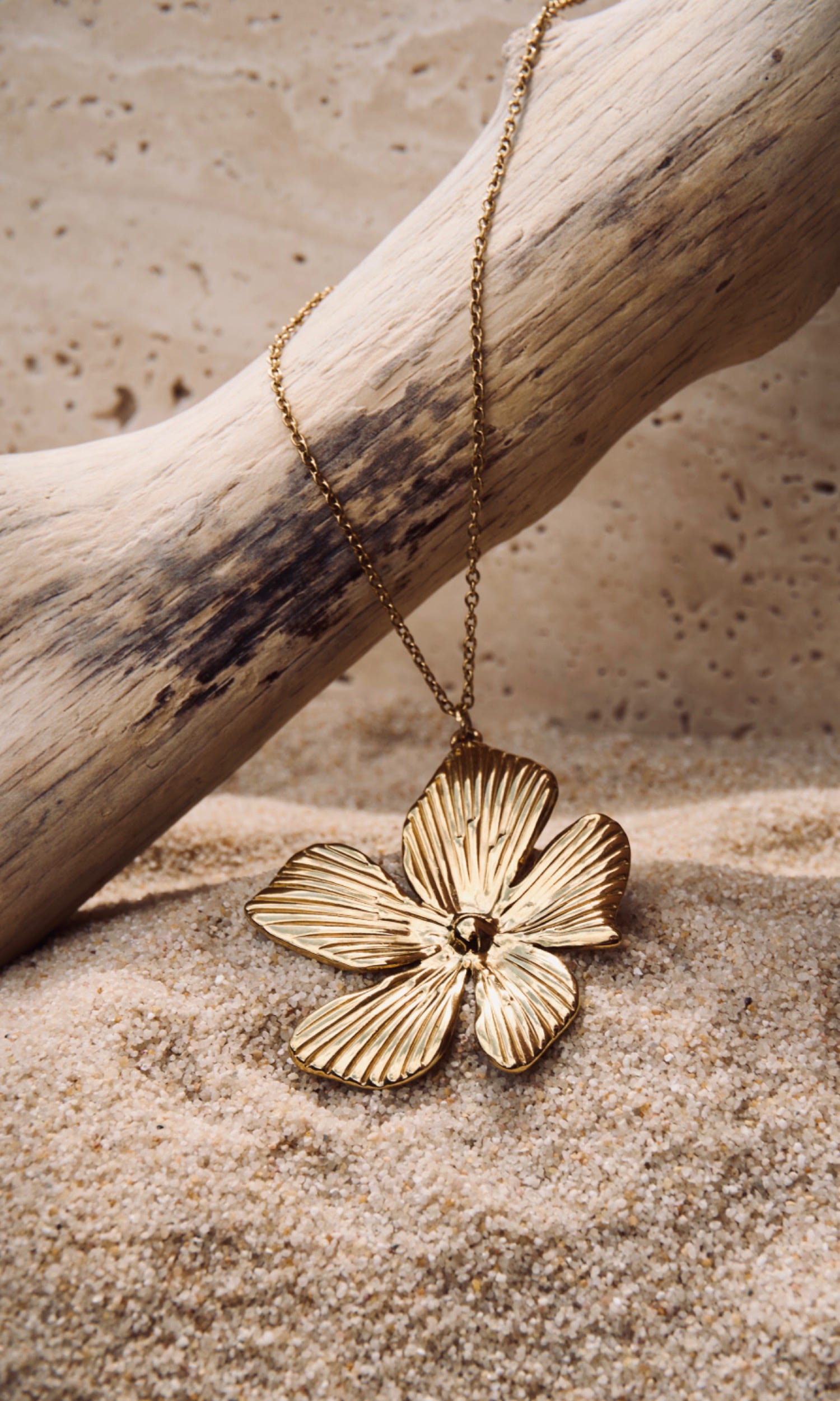 Orné d'un pendentif en forme de fleur d'hibiscus, il ajoute une touche tropicale à votre tenue
