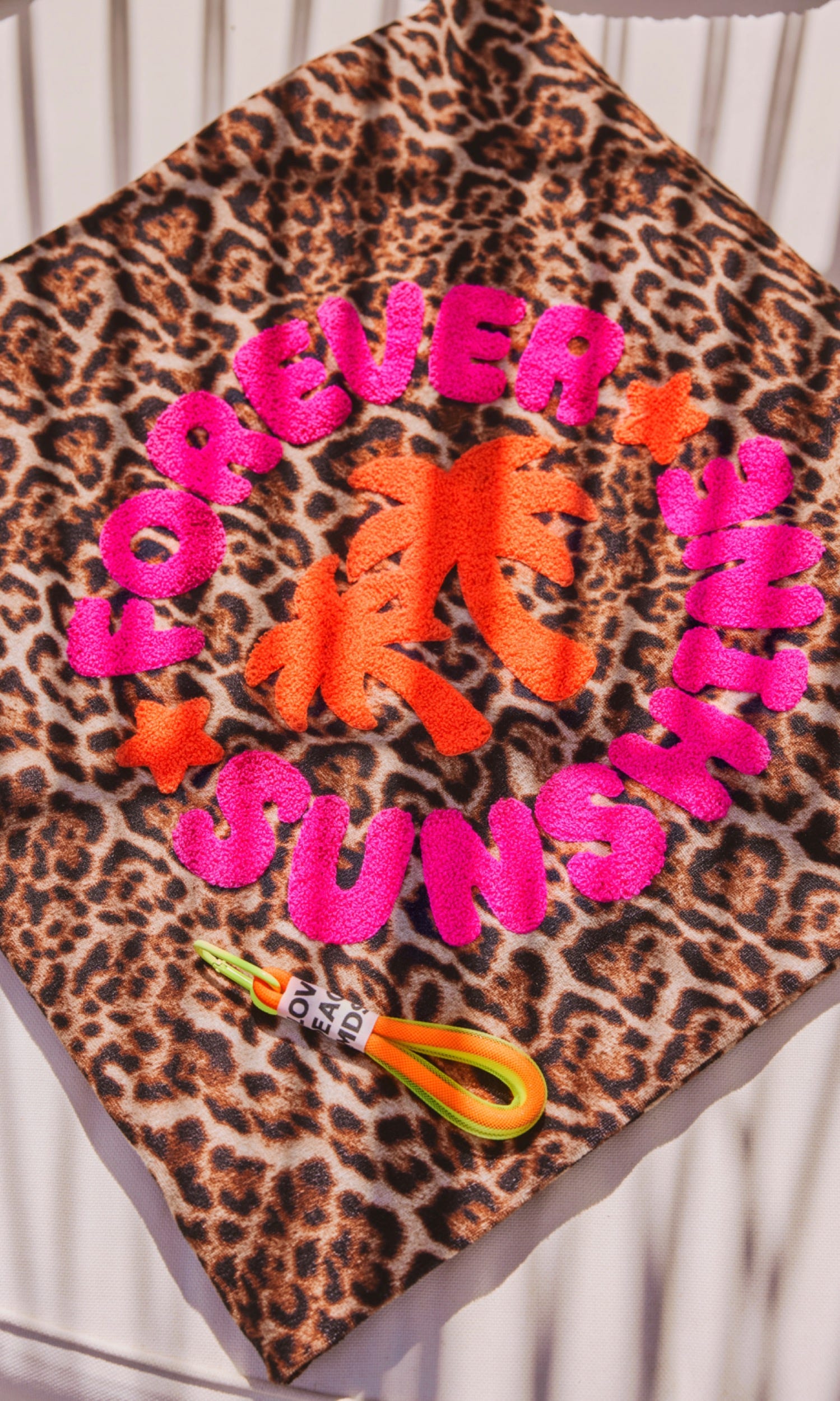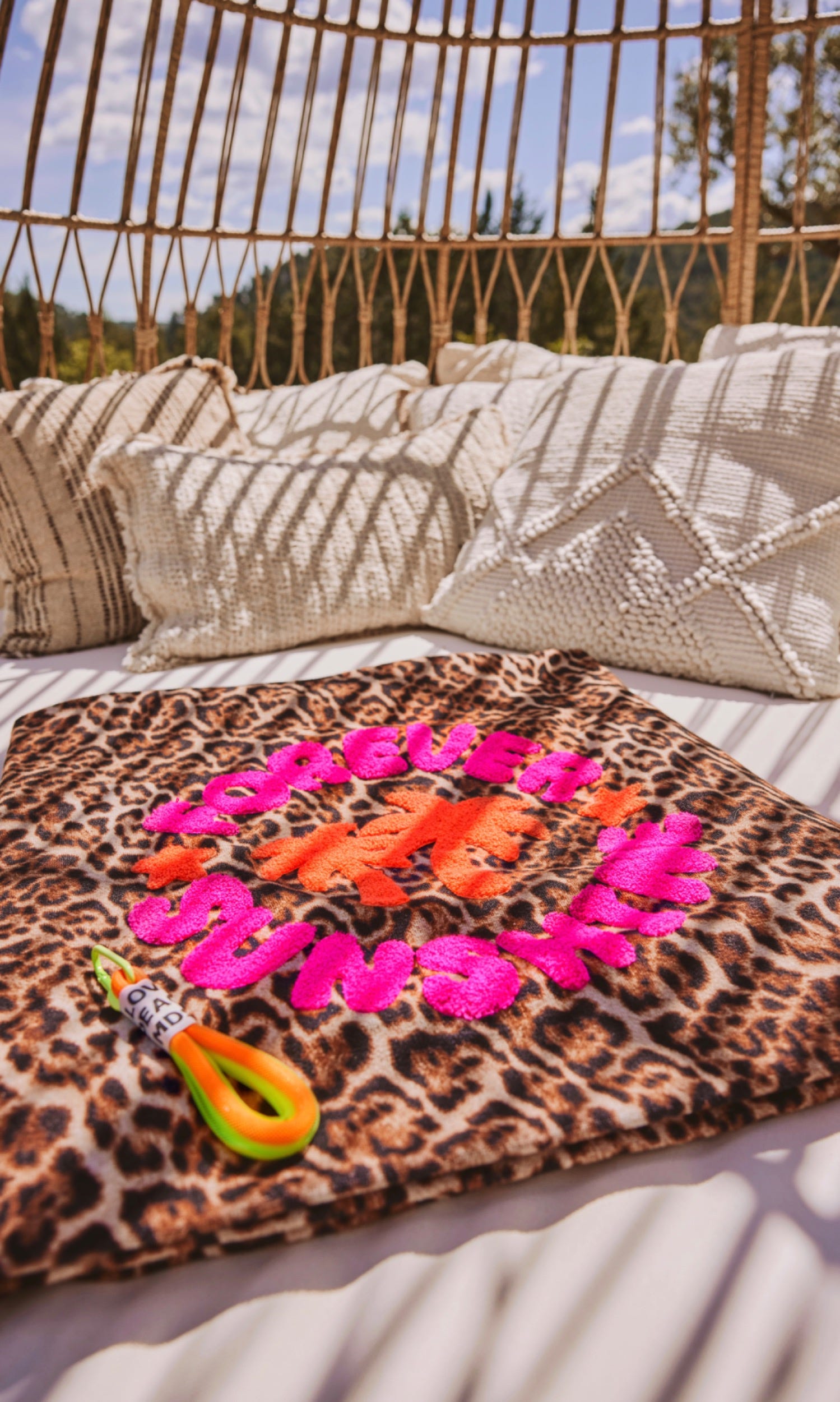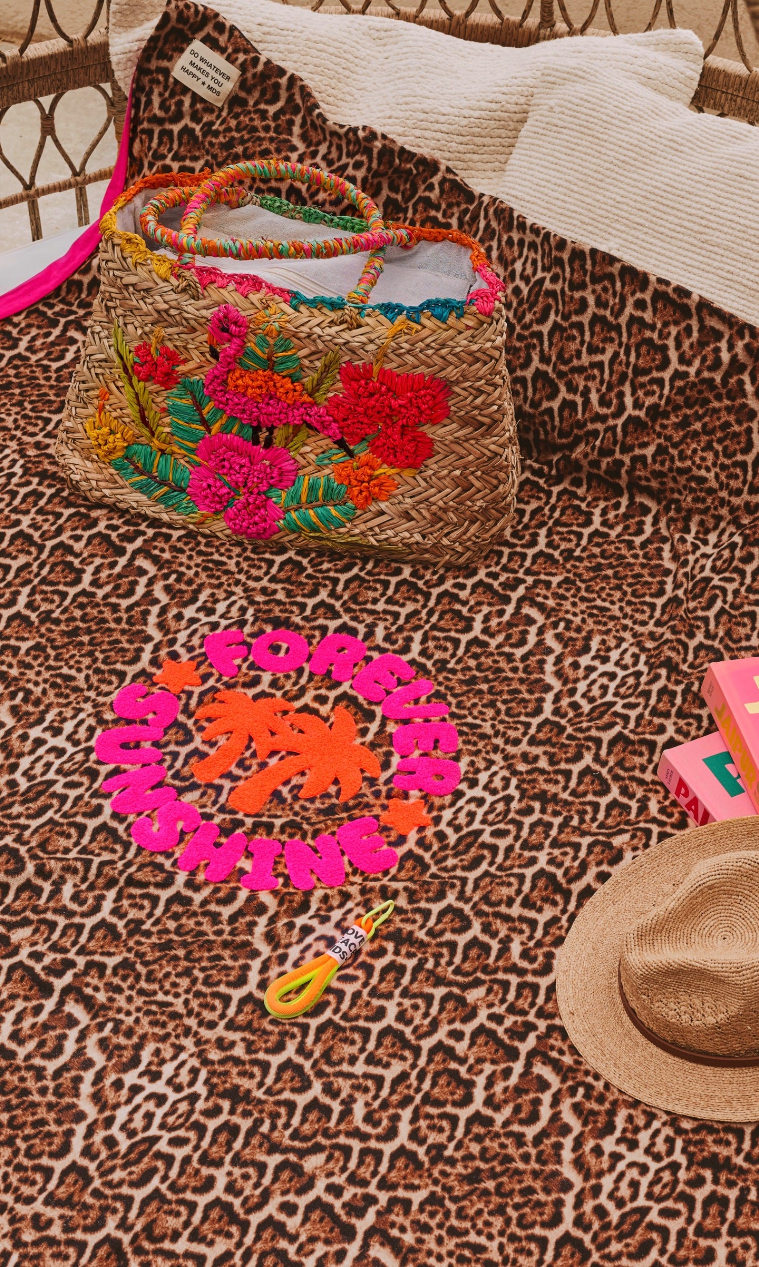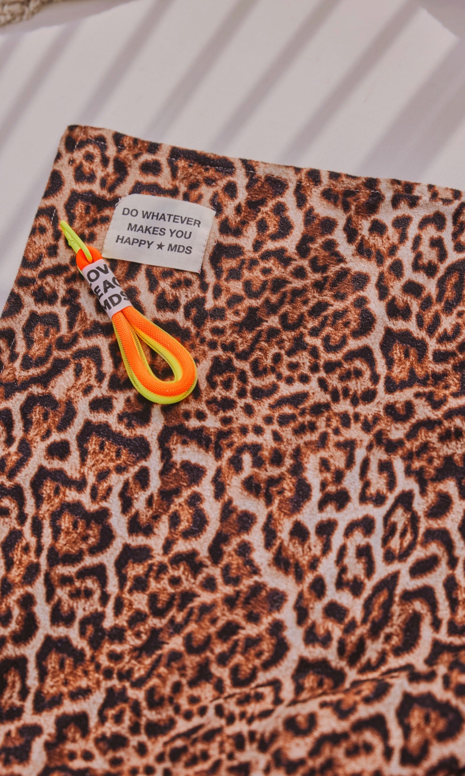 Découvrez notre serviette de plage rectangulaire camel léopard, alliant chic et confort.