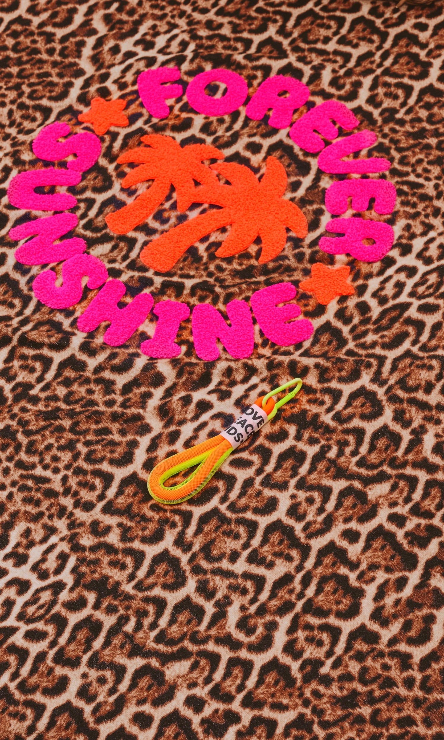 Elle arbore un imprimé moumoute "Forever Sunshine" sur le devant et se pare d'un rose doublé coton jersey à l'arrière.