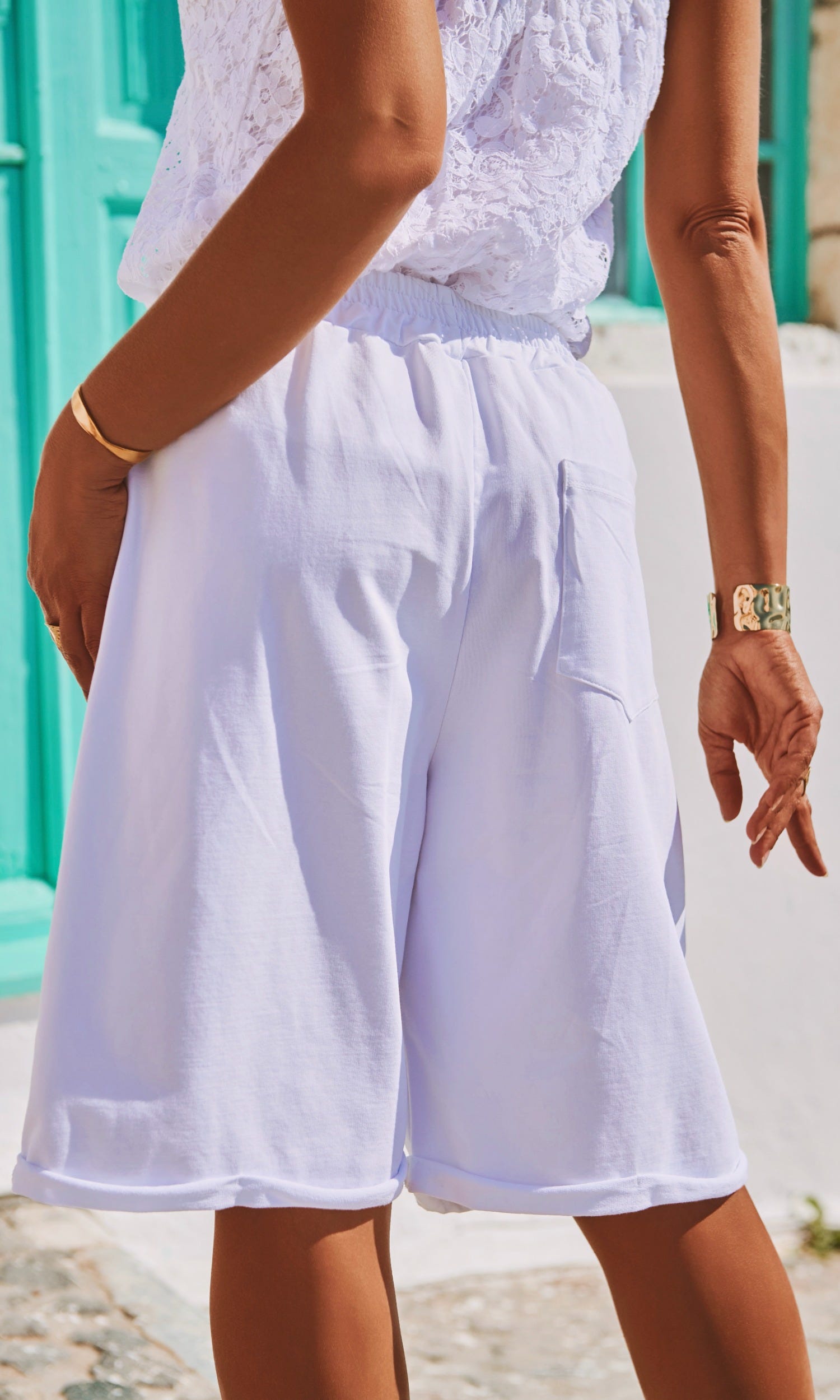 Découvrez ce bermuda en sweat blanc au style décontracté, parfait pour une allure chic et confortable.