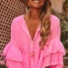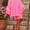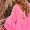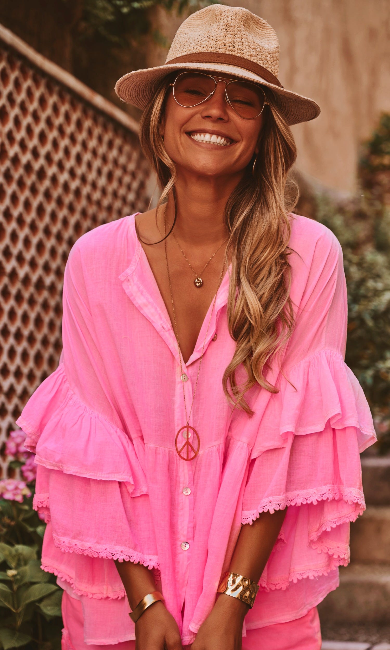 Découvrez notre chemise rose fluo en voile de coton, à la coupe oversize et au col rond.
