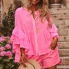 Ses manches courtes ornées de volants et une délicate broderie sur le bord ajoutent une touche de féminité.