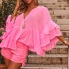 Ses manches courtes ornées de volants et une délicate broderie sur le bord ajoutent une touche de féminité.