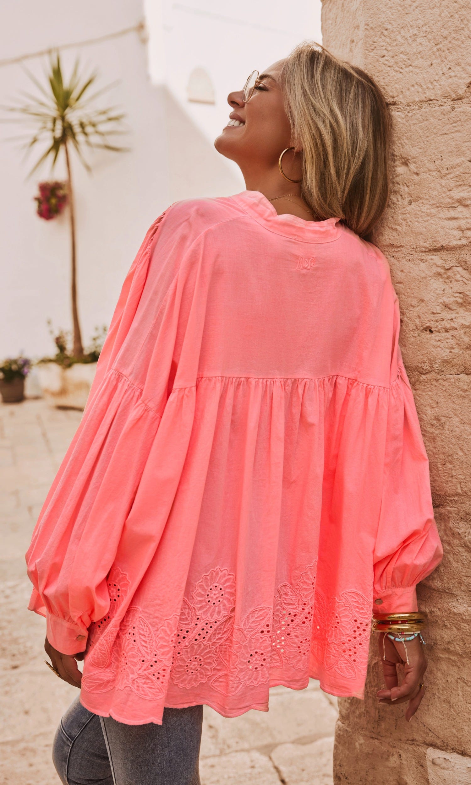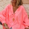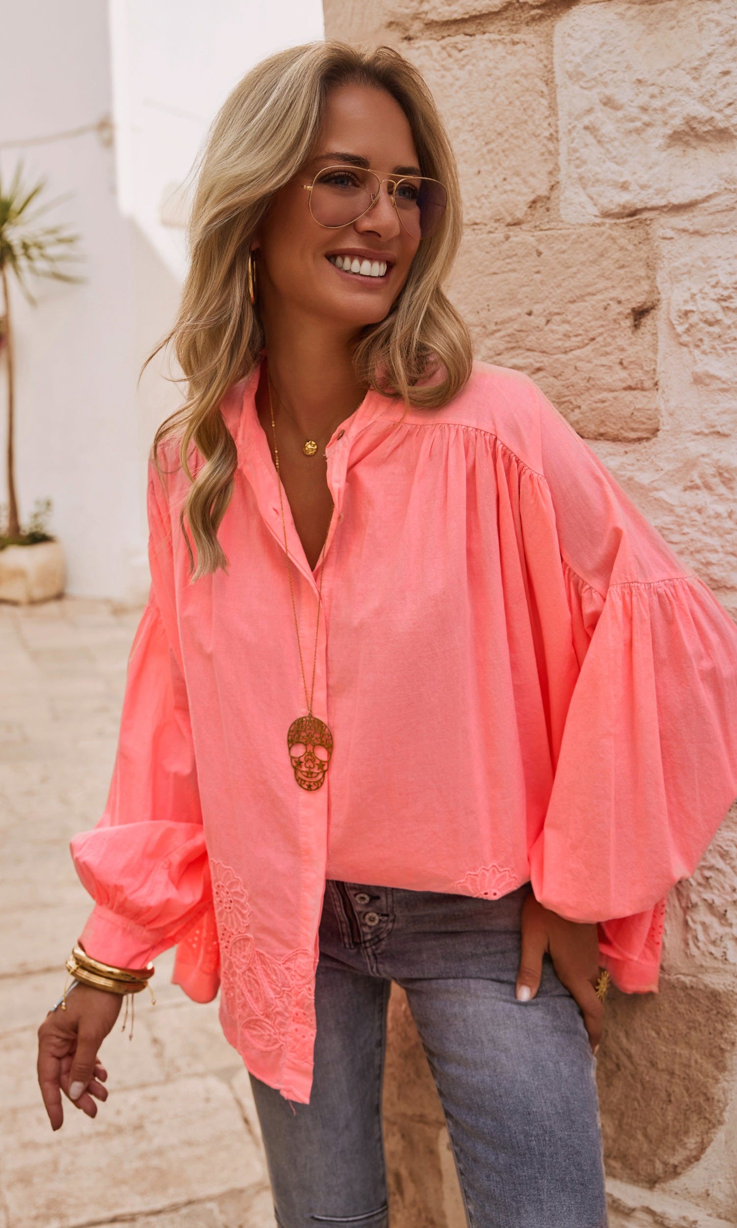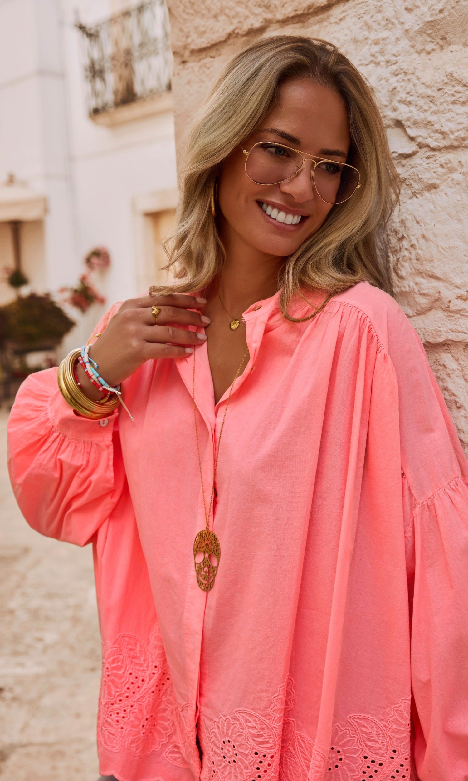 Optez pour l'élégance décontractée avec cette chemise corail fluo fluide et légère à la coupe ultra loose.