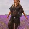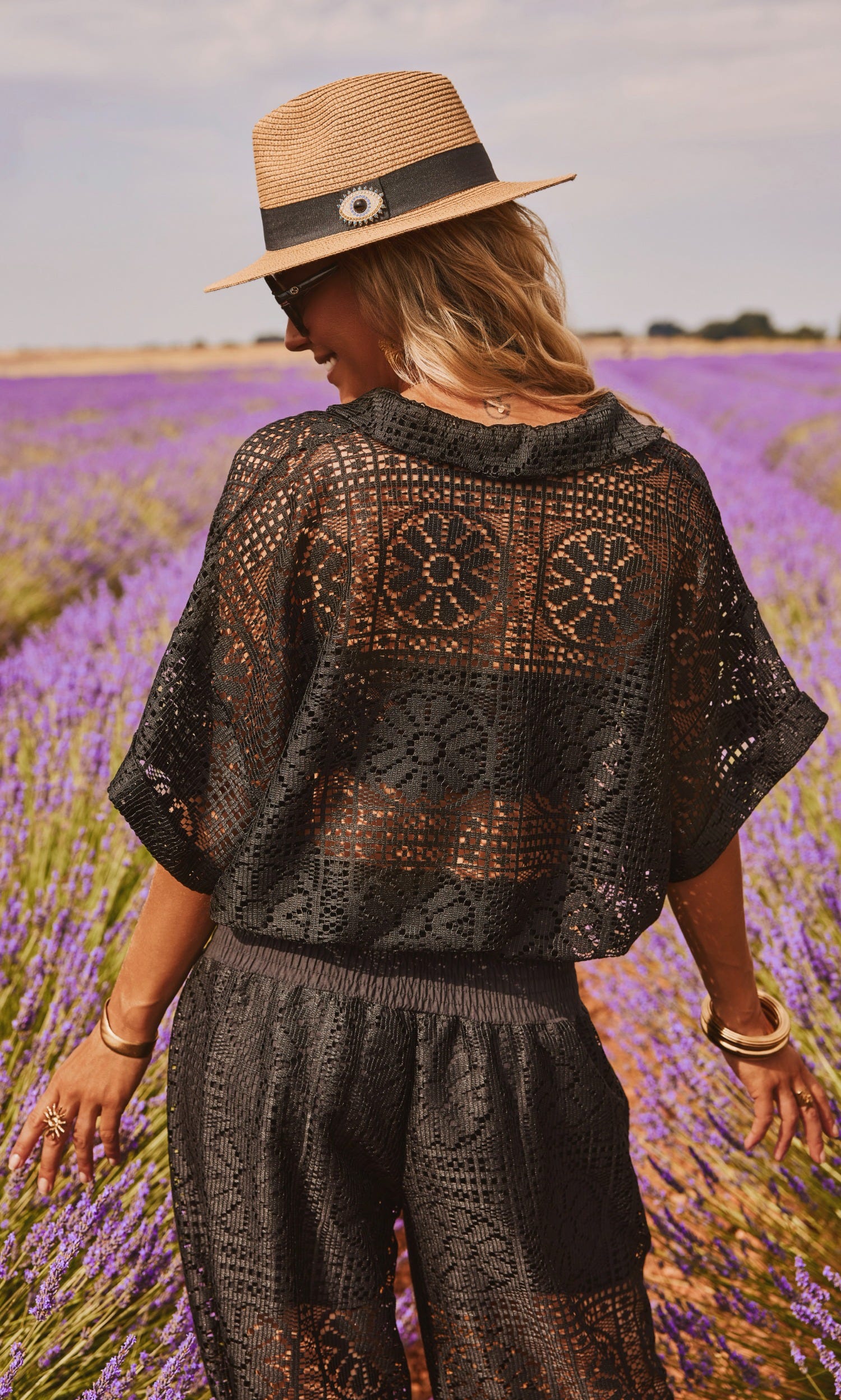 Découvrez notre chemise noire en résille fluide et légère, à la coupe loose.