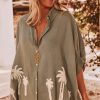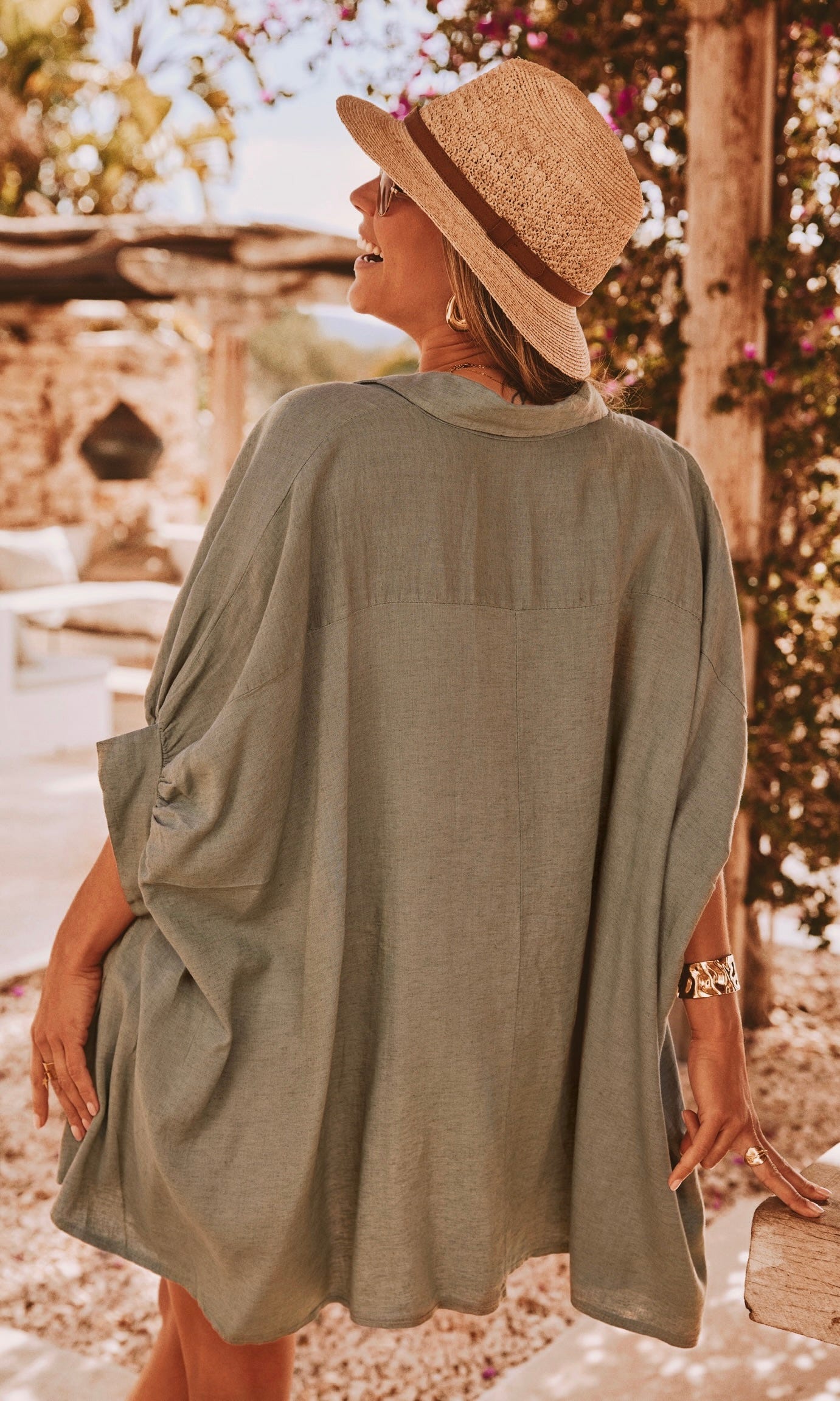 Optez pour cette chemise kaki oversize au col classique, boutonée sur toute sa hauteur.