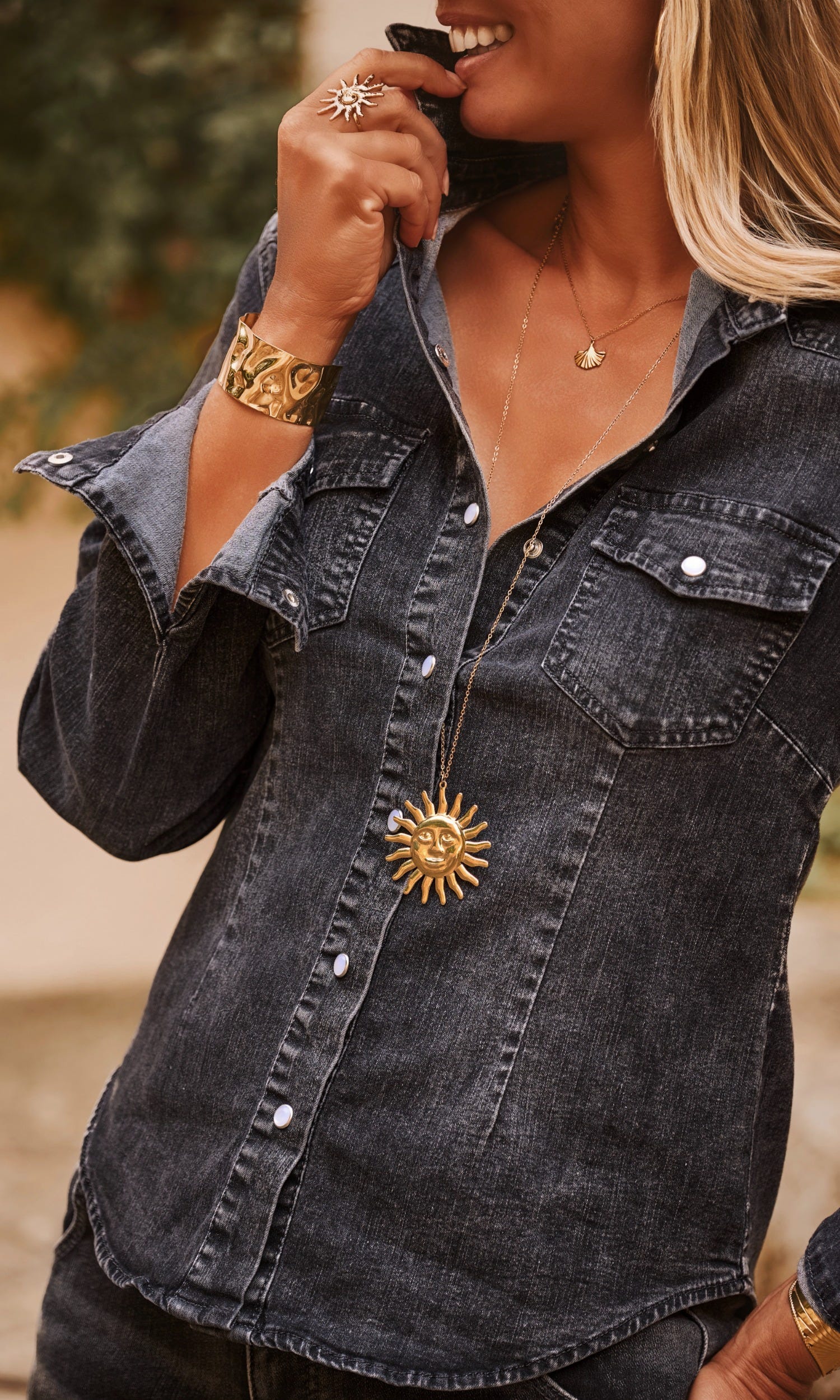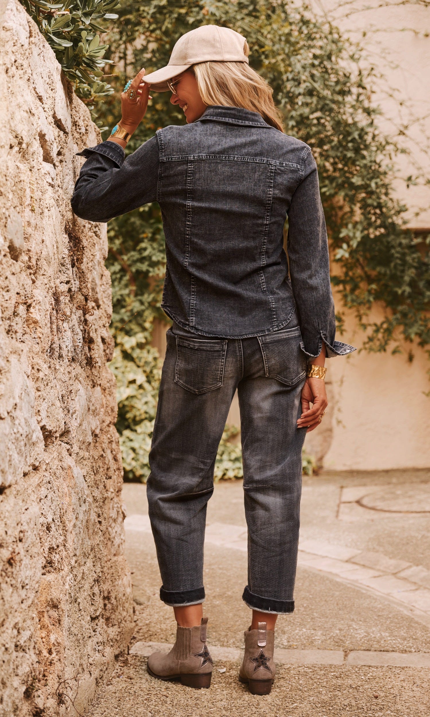 Découvrez notre chemise noire à la coupe droite et cintrée, parfaite pour un style chic et contemporain.