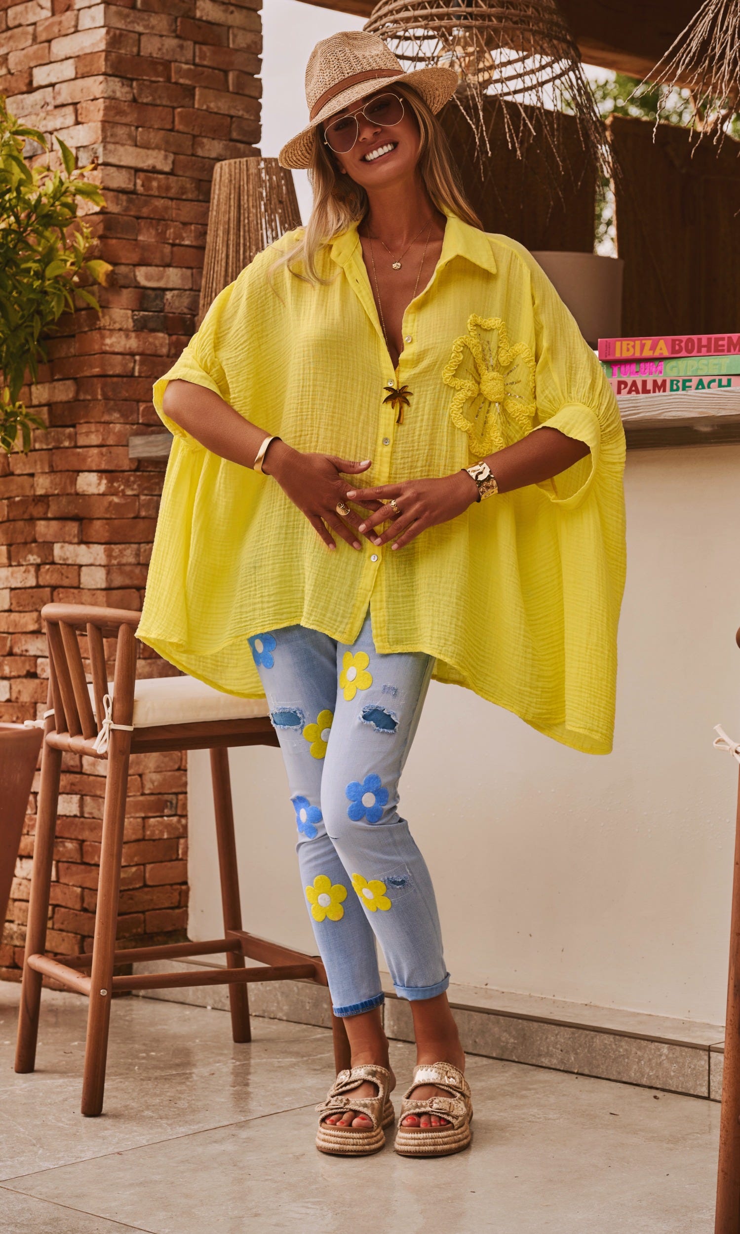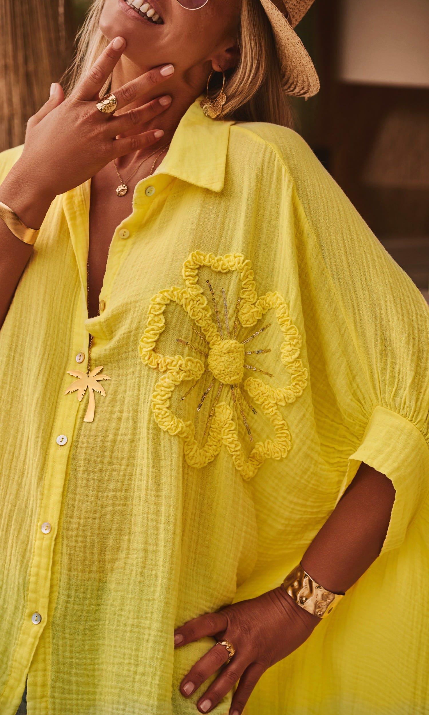 Découvrez notre chemise jaune oversize, un incontournable de votre garde-robe ! Avec son col classique et sa boutonnière sur toute la hauteur, elle arbore des manches 3/4 à effet ballons pour un style moderne et décontracté.