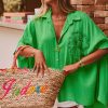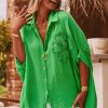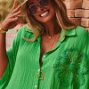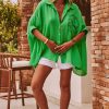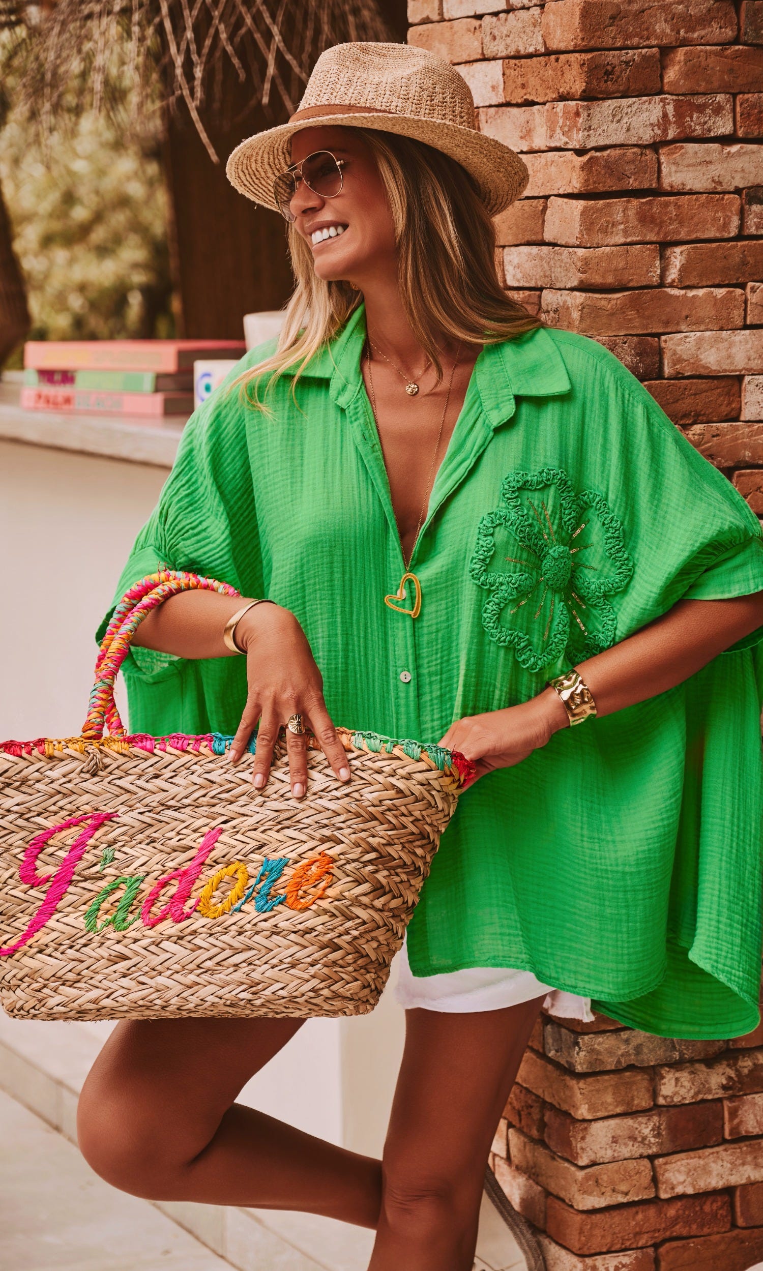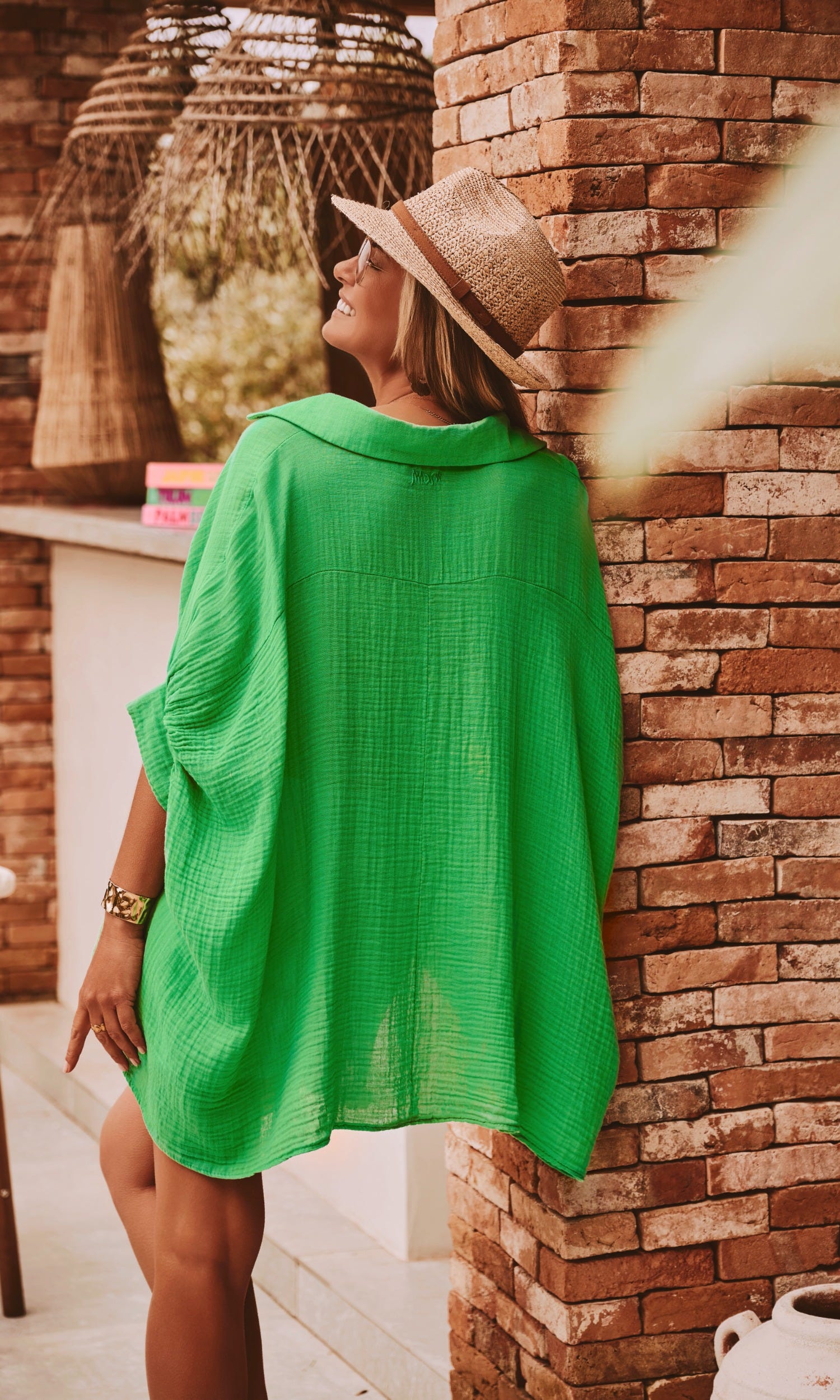 Optez pour cette chemise vert brésil oversize au col classique, boutonnée sur toute sa hauteur.