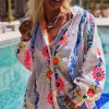 Cette chemise oversize à col mao se distingue par sa coupe décontractée et sa longueur boutons sur toute la hauteur.