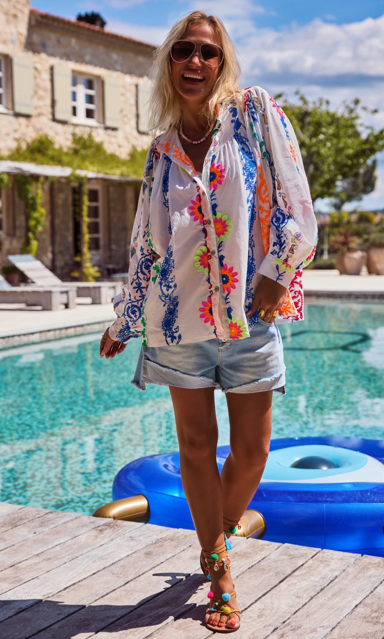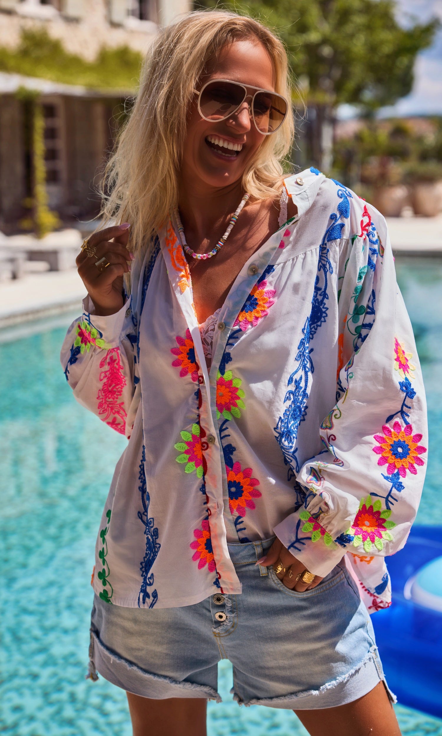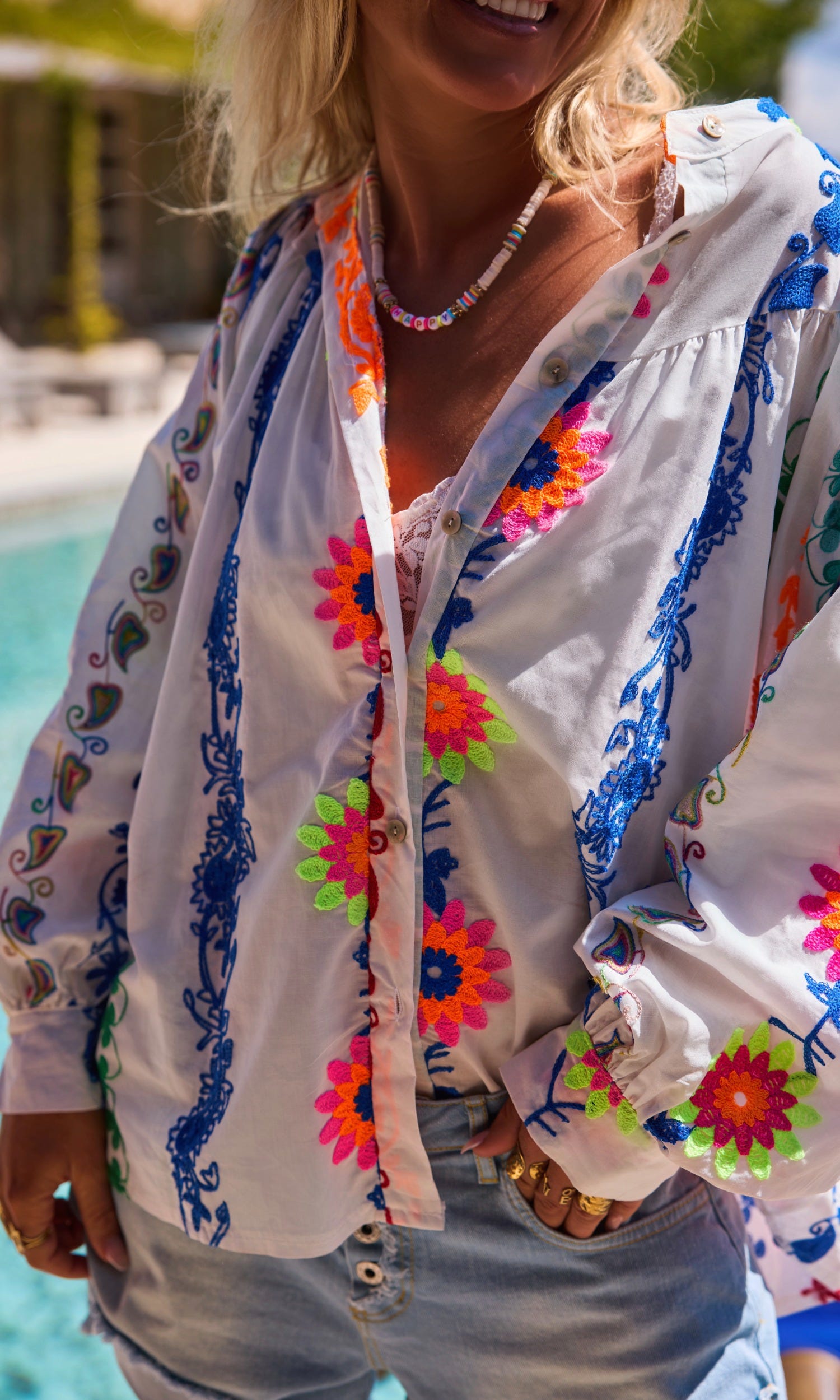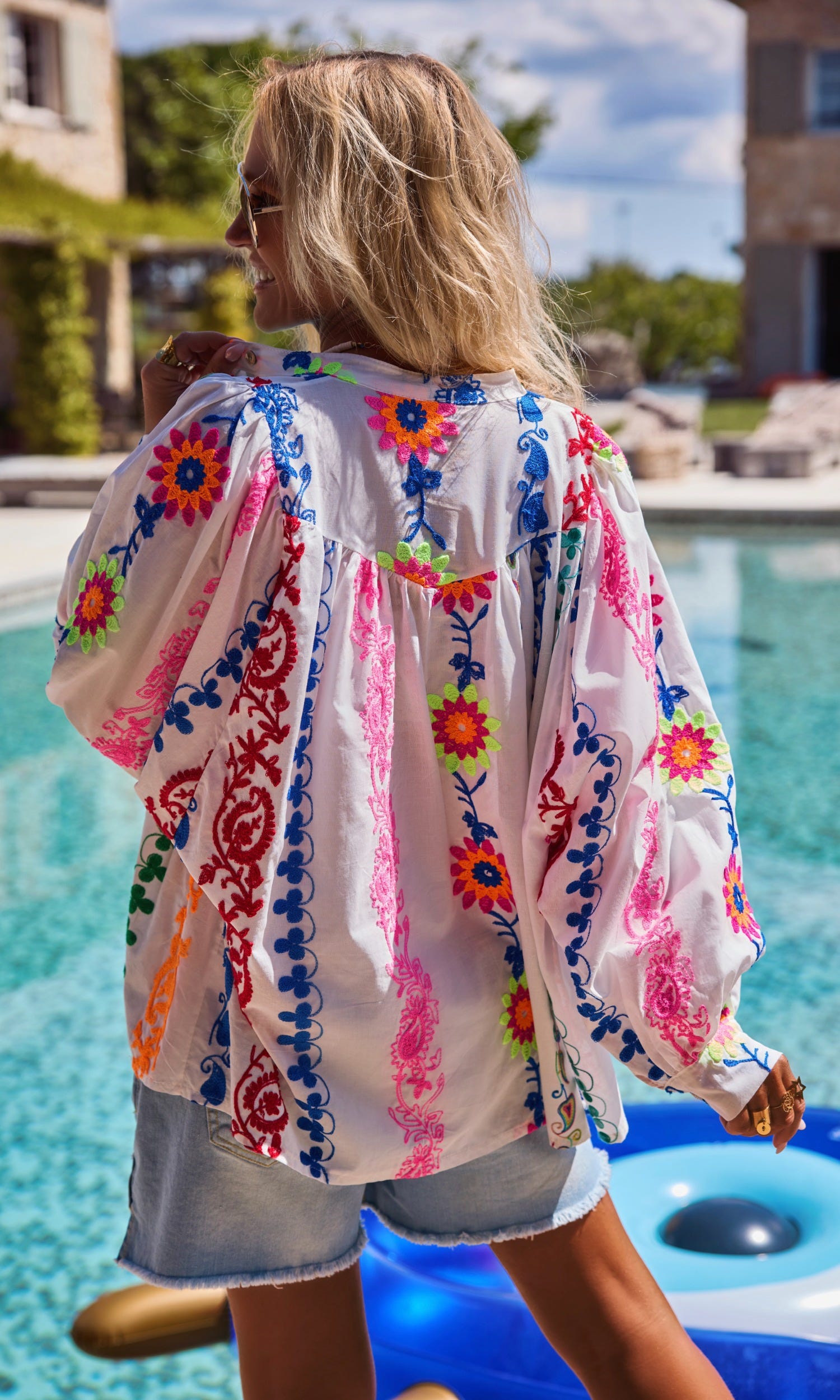 Ses broderies multicolores, variant d'un modèle à l'autre, apportent une note d'originalité, tandis que son effet de transparence ajoute une dimension élégante.