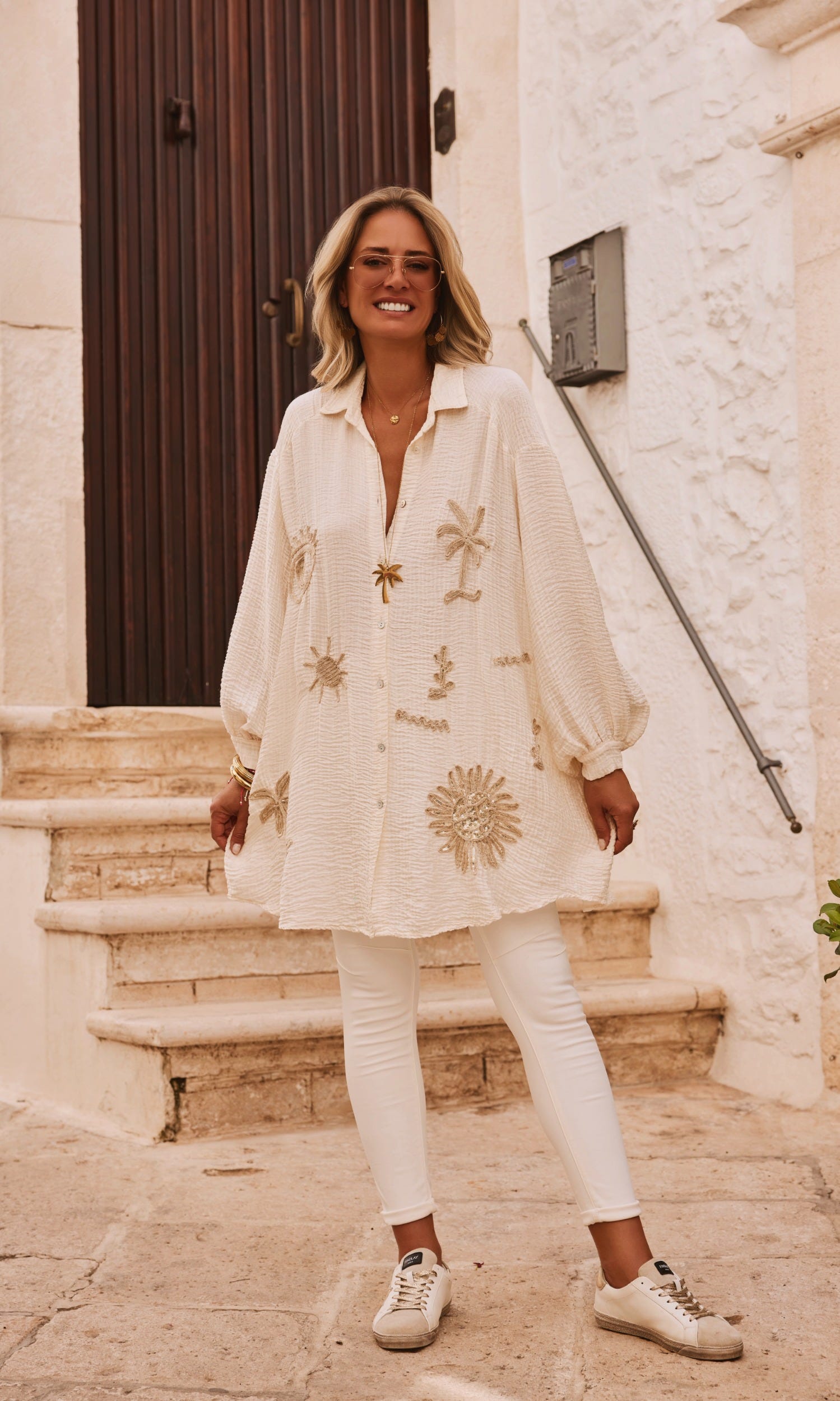 Découvrez notre chemise gauffré blanc cassé ultra loose, alliant confort et élégance.
