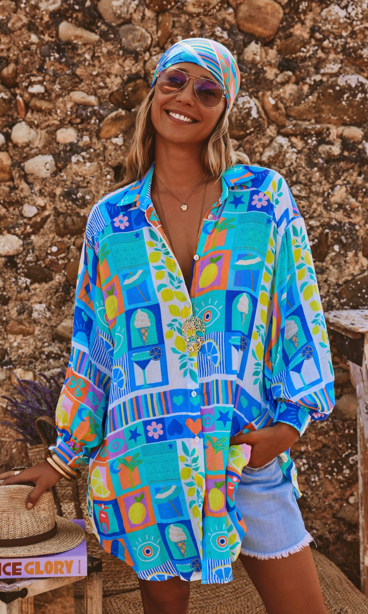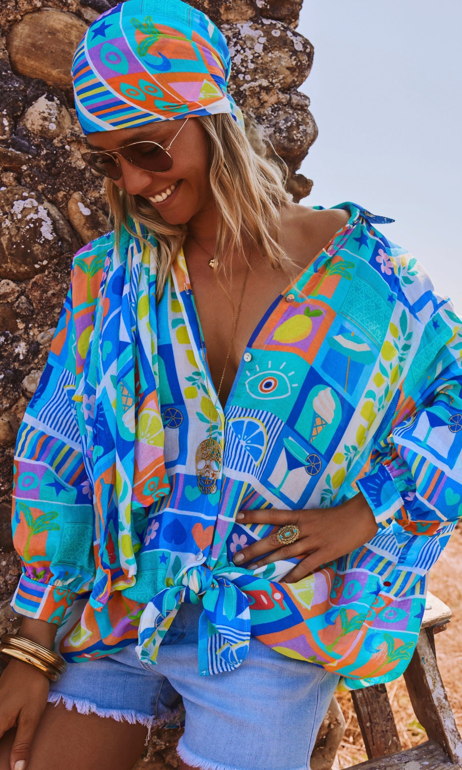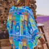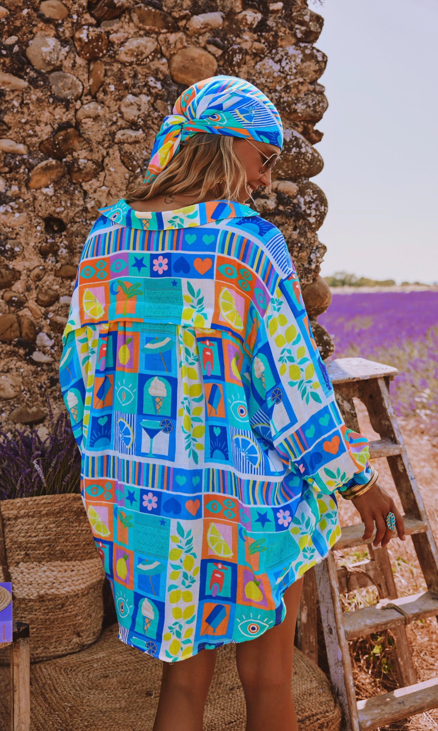 Son imprimé Bleu Lemon Life et son effet de transparence ajoutent une touche audacieuse à cette pièce arrondie en partie basse.