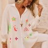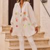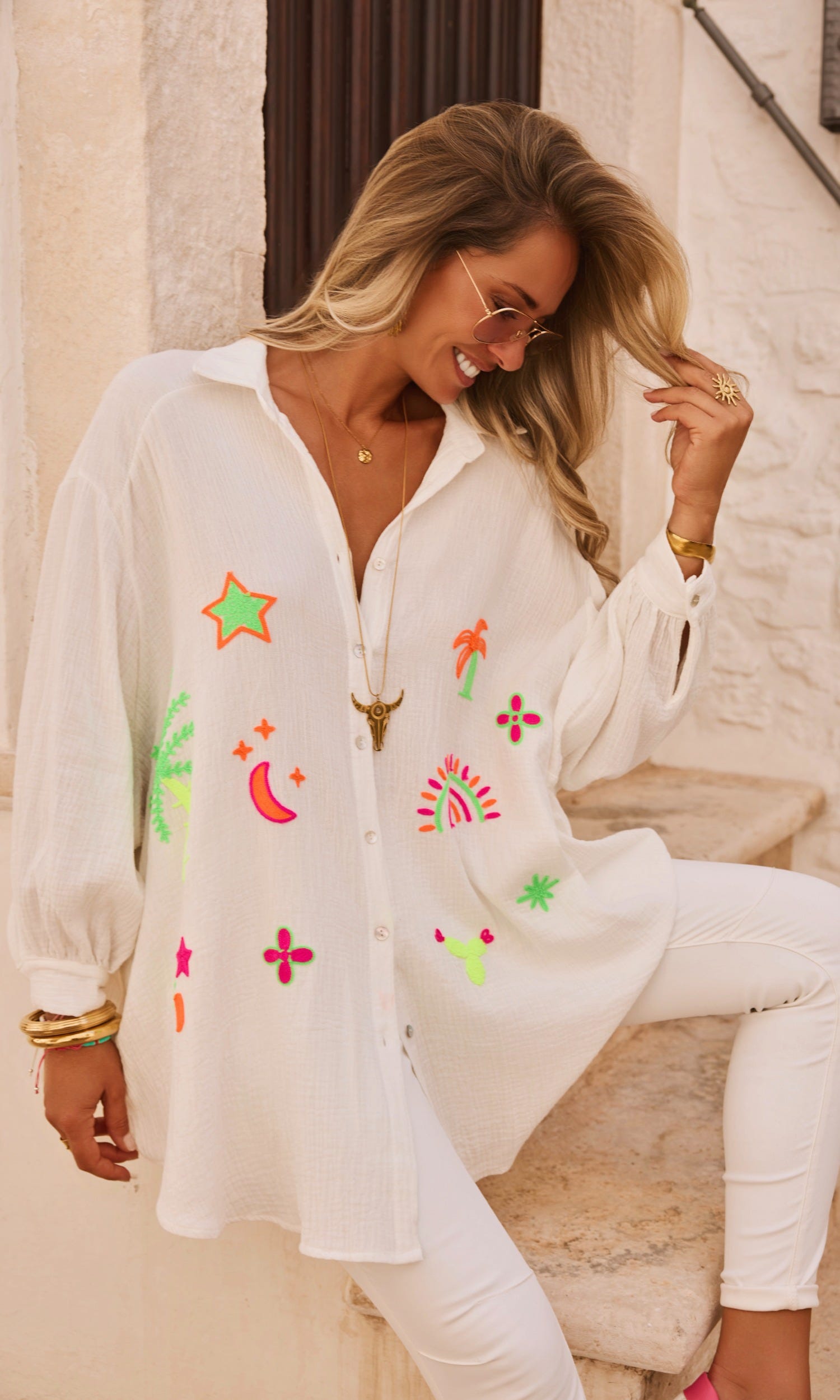 Les broderies multicolores ajoutent une note d'élégance.