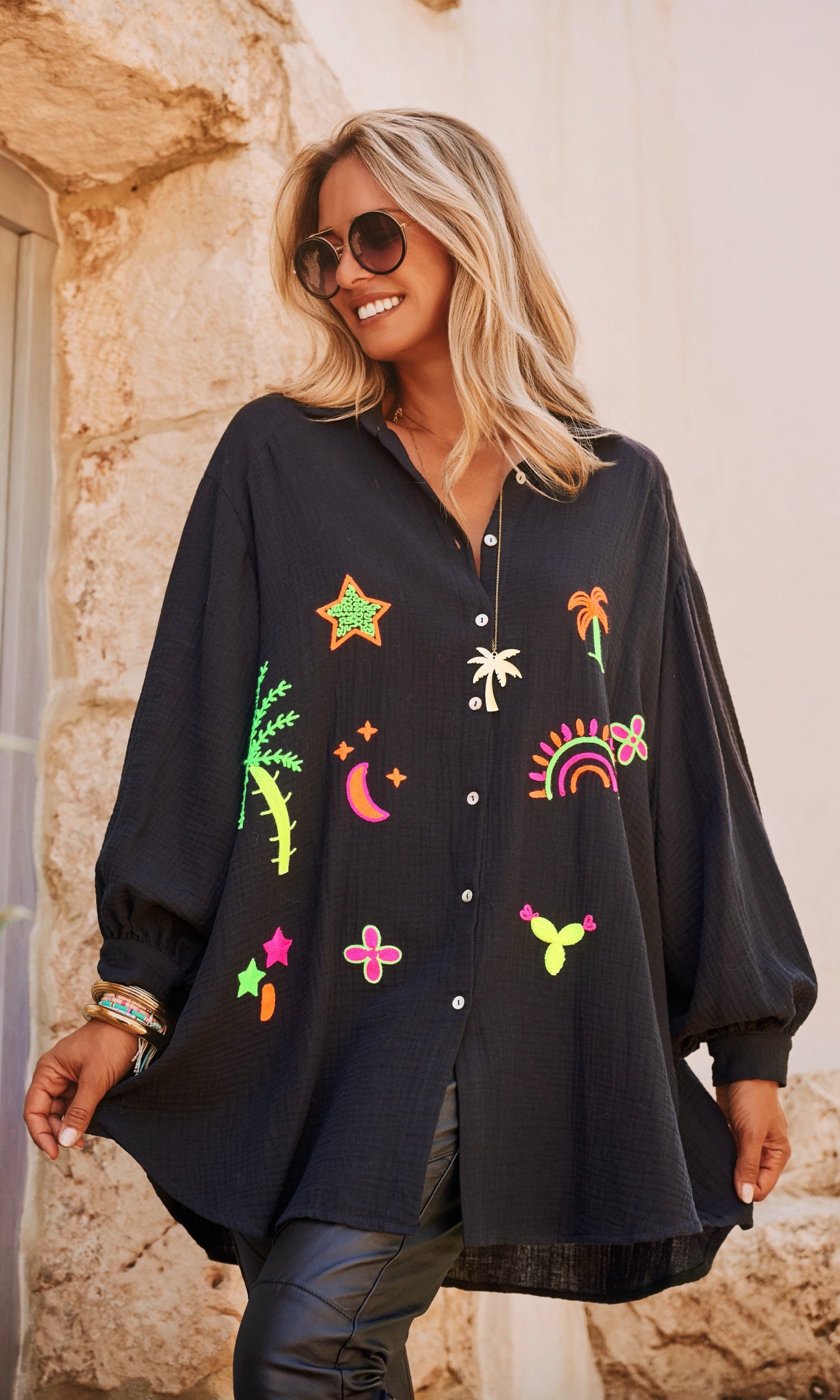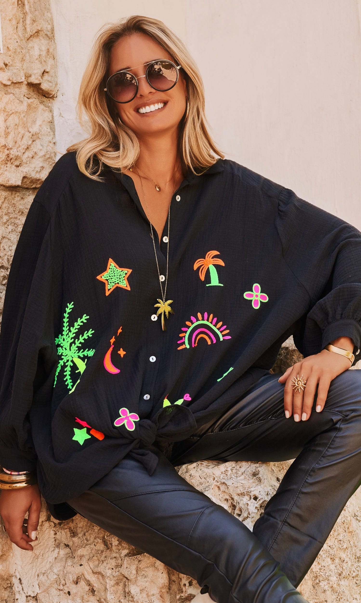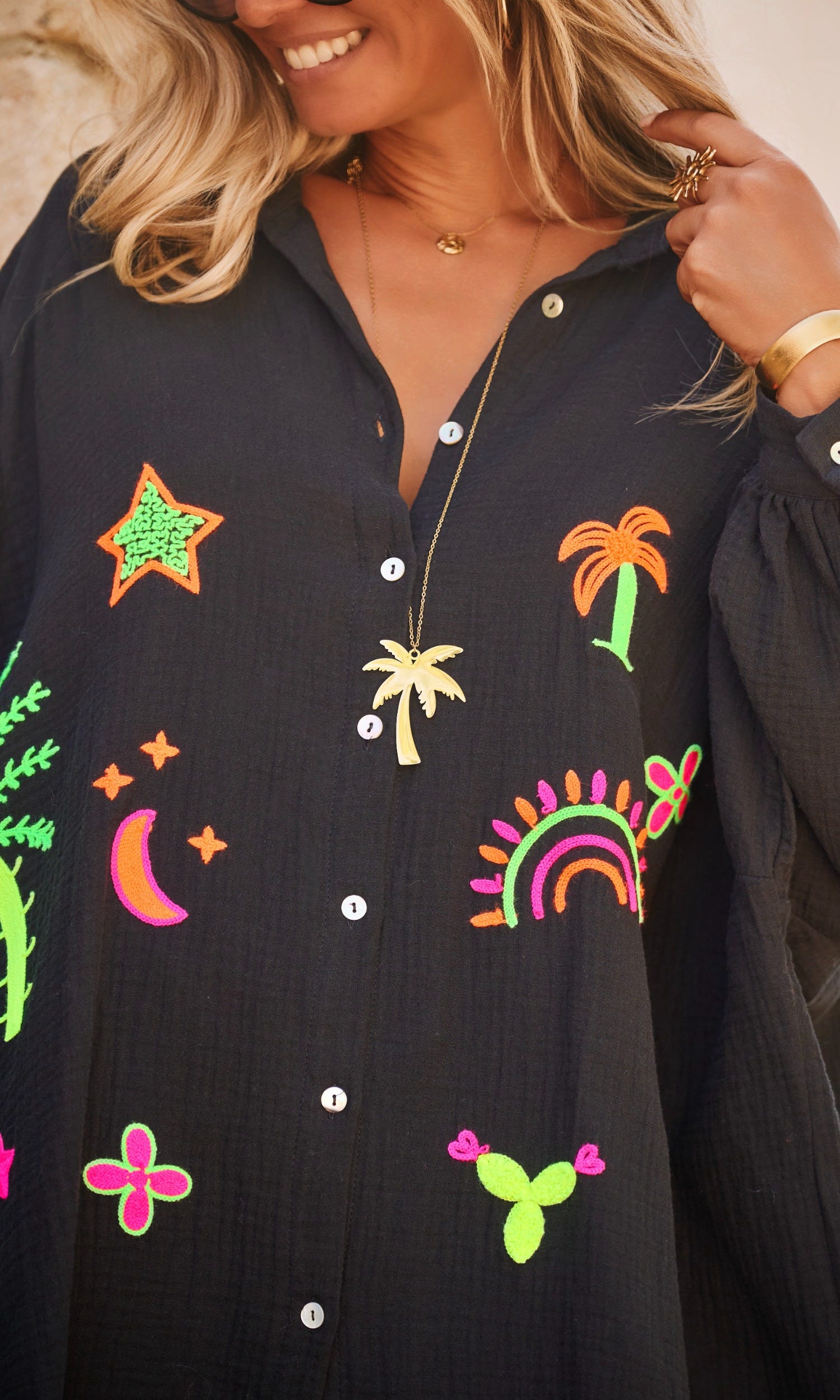 Ses broderies multicolor ajoutent une touche tropicale parfaite.