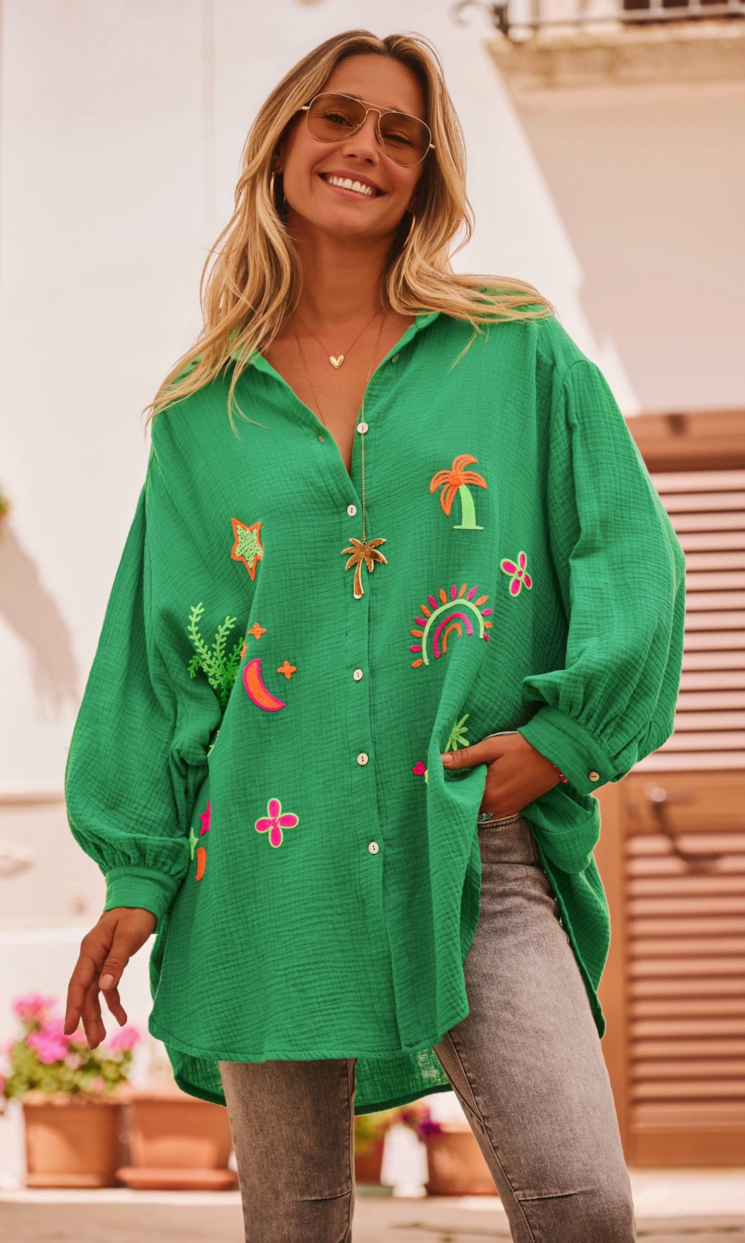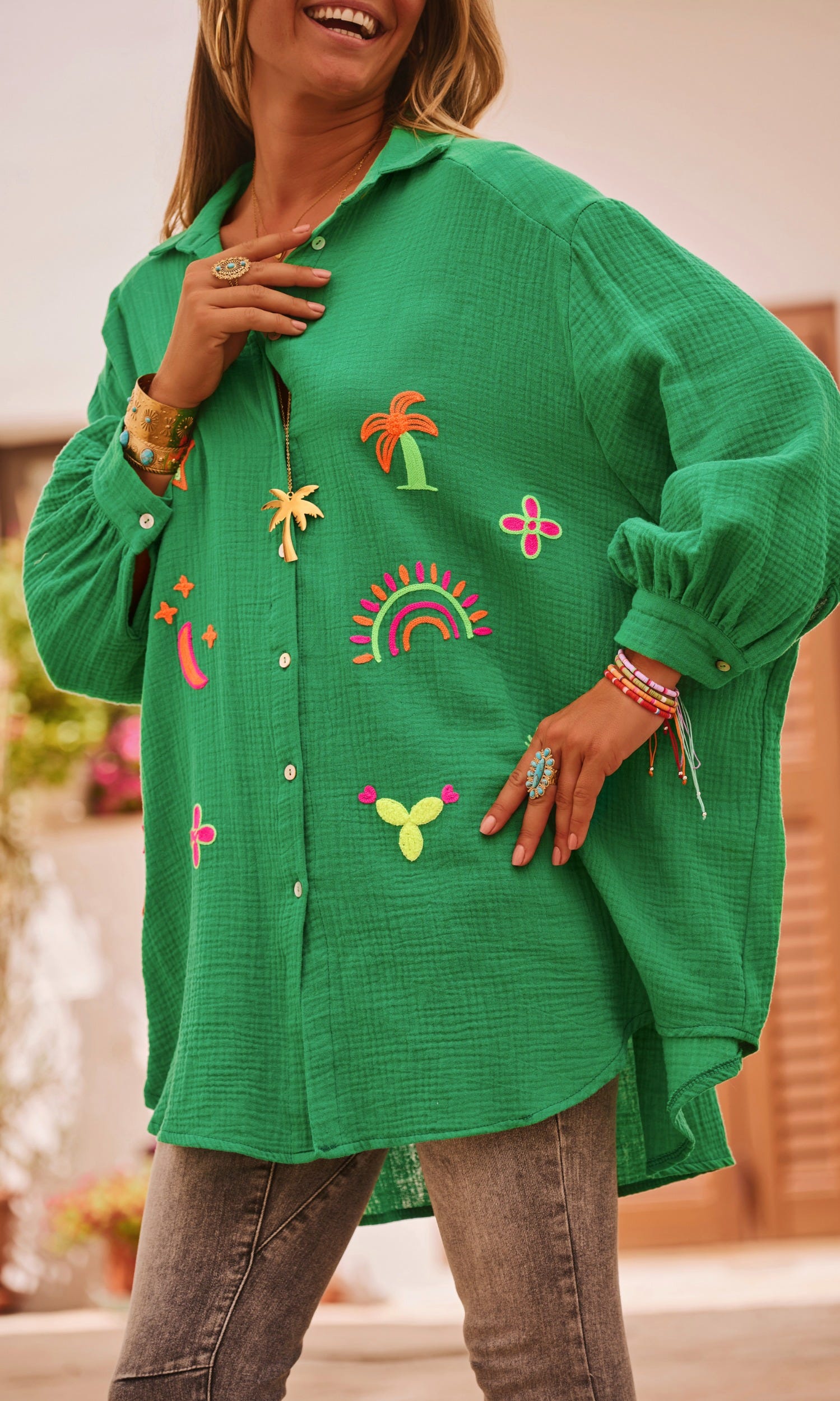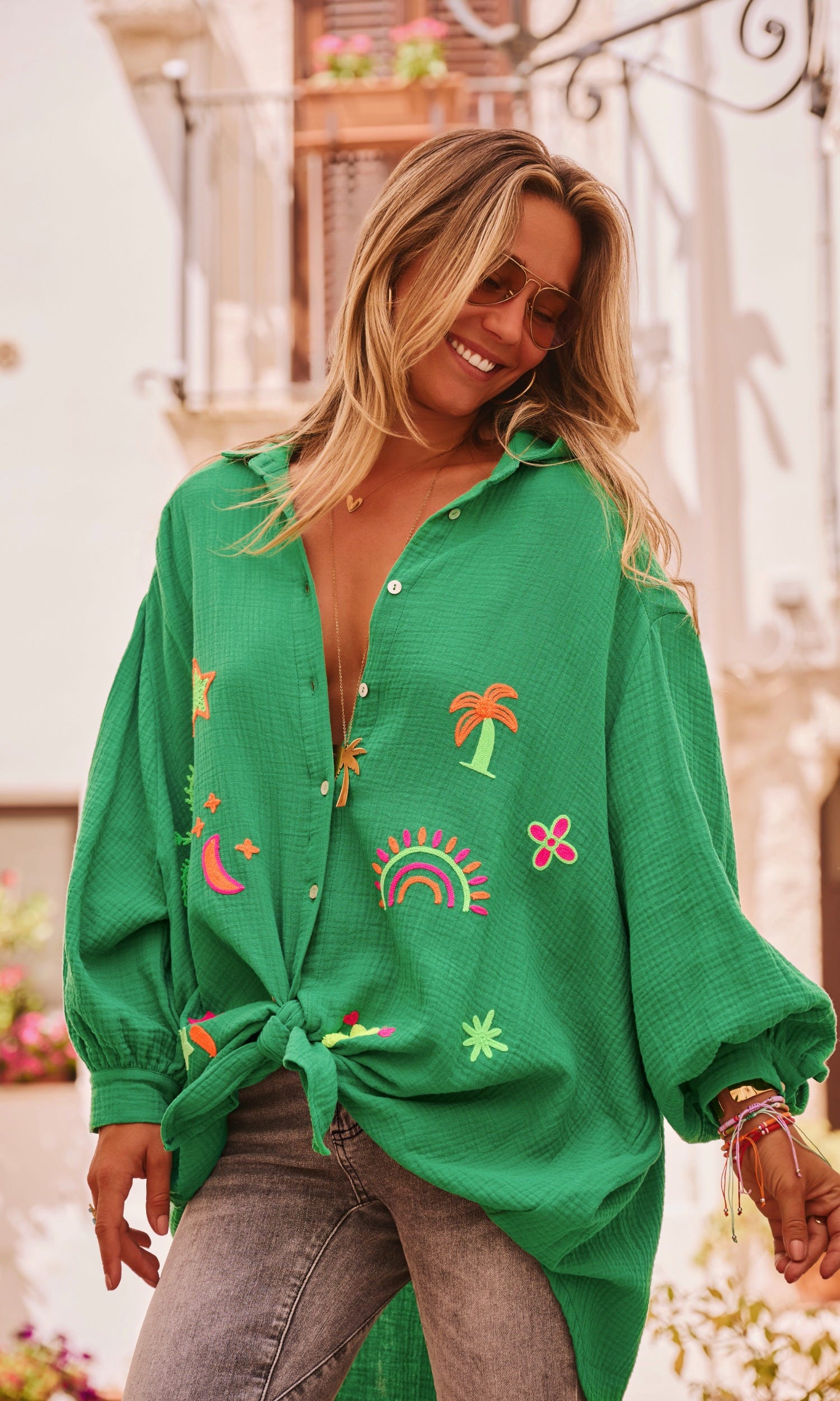 Découvrez notre chemise verte fluide et légère à la coupe ultra loose.