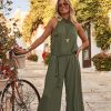 Découvrez notre combi kaki élégante, dotée d'un col froncé noué et d'une finition plissée qui lui confère une allure sophistiquée.