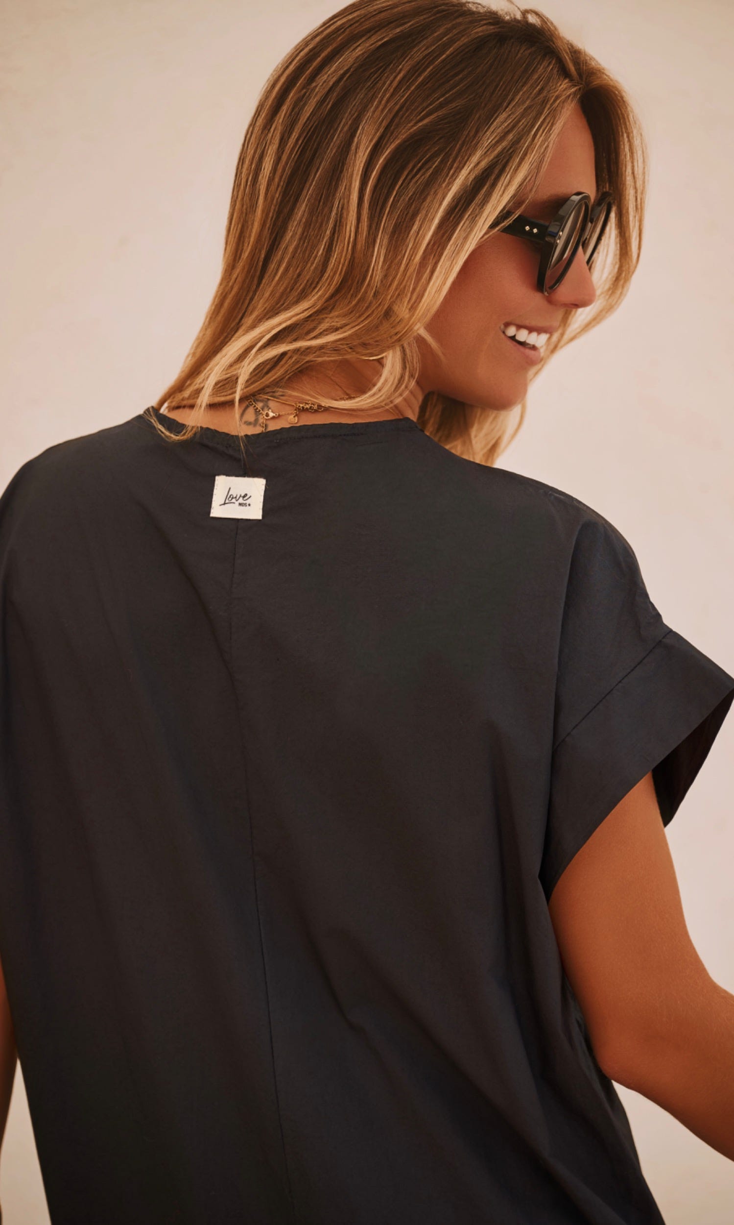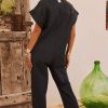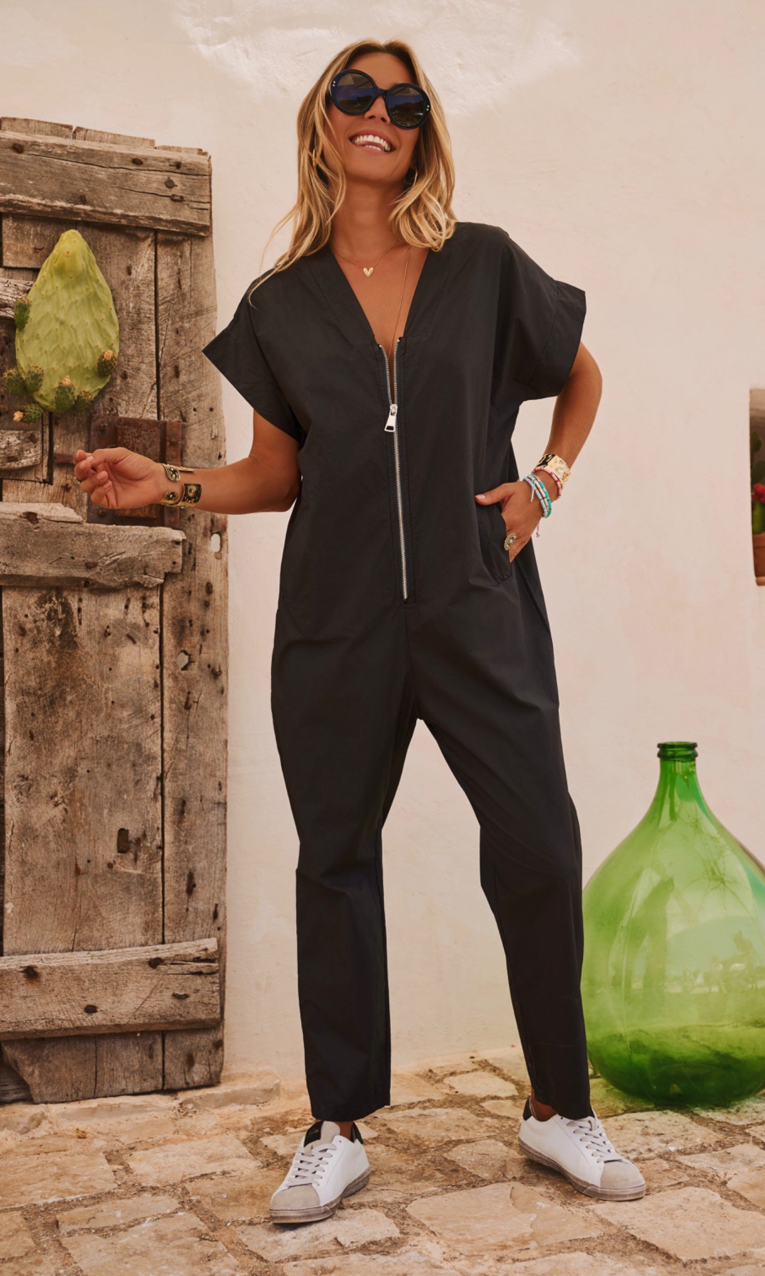 Découvrez notre combi pantalon noire en toile à la coupe loose, parfaite pour un style décontracté.