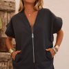 Son col en V avec fermeture éclair sur toute la hauteur ajoutent une touche contemporaine.