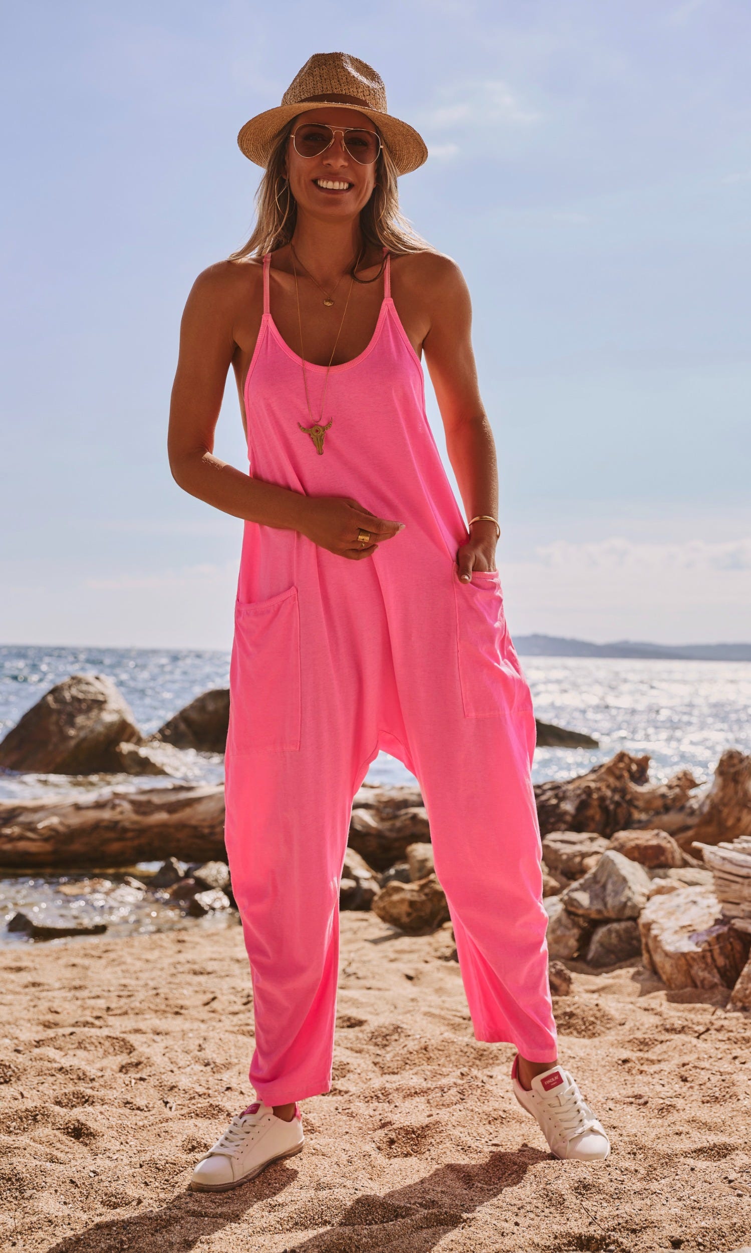 Optez pour un look audacieux avec notre combi rose fluo à coupe sarouel loose.