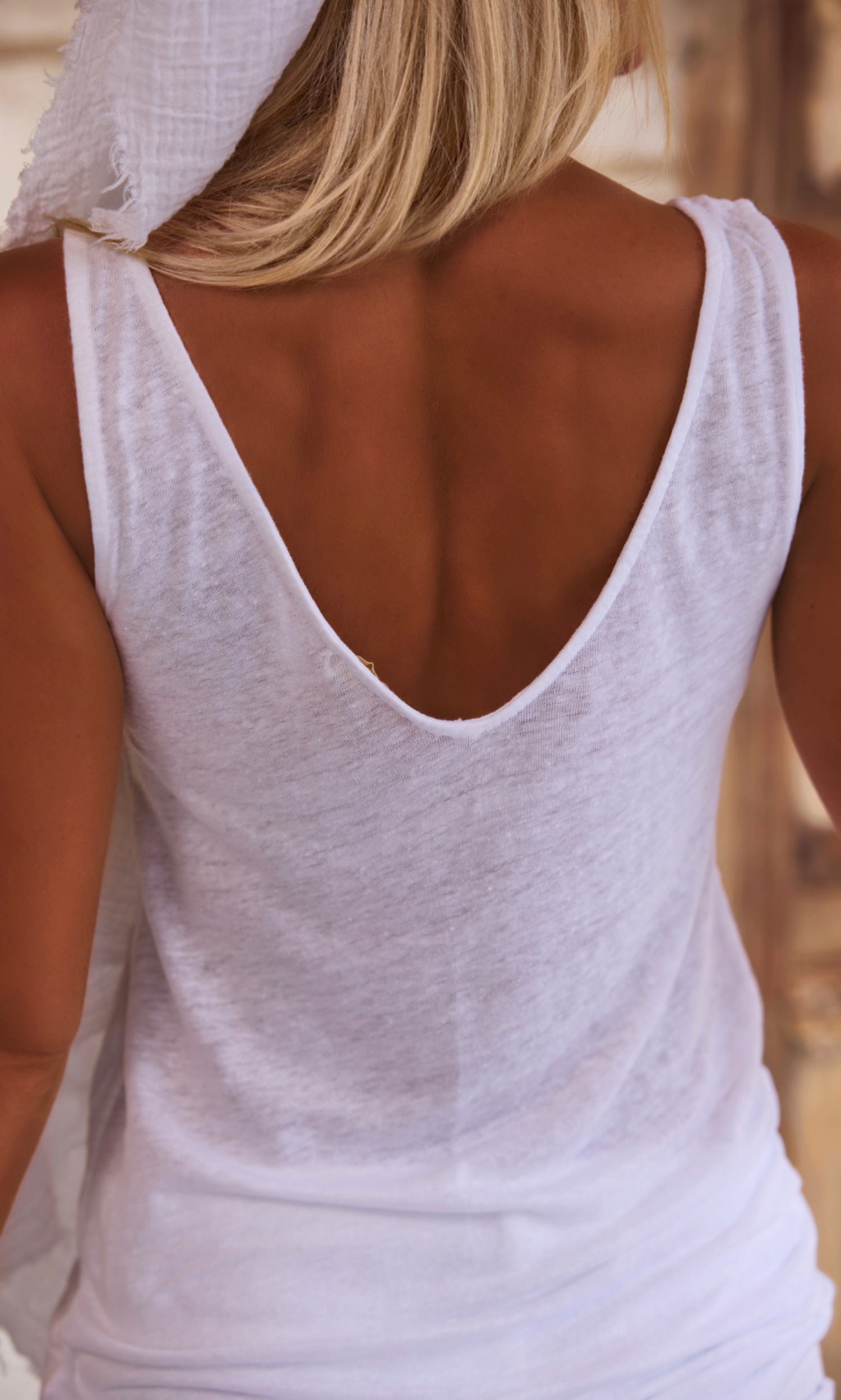 Découvrez notre débardeur blanc en lin, alliant élégance et légèreté.