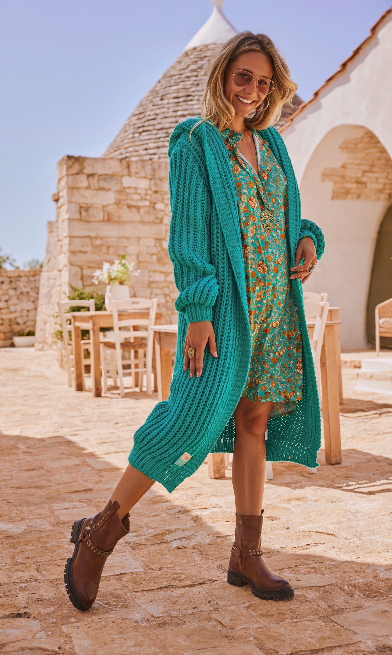 Découvrez notre gilet vert turquoise à la coupe loose, parfait pour un look décontracté.