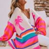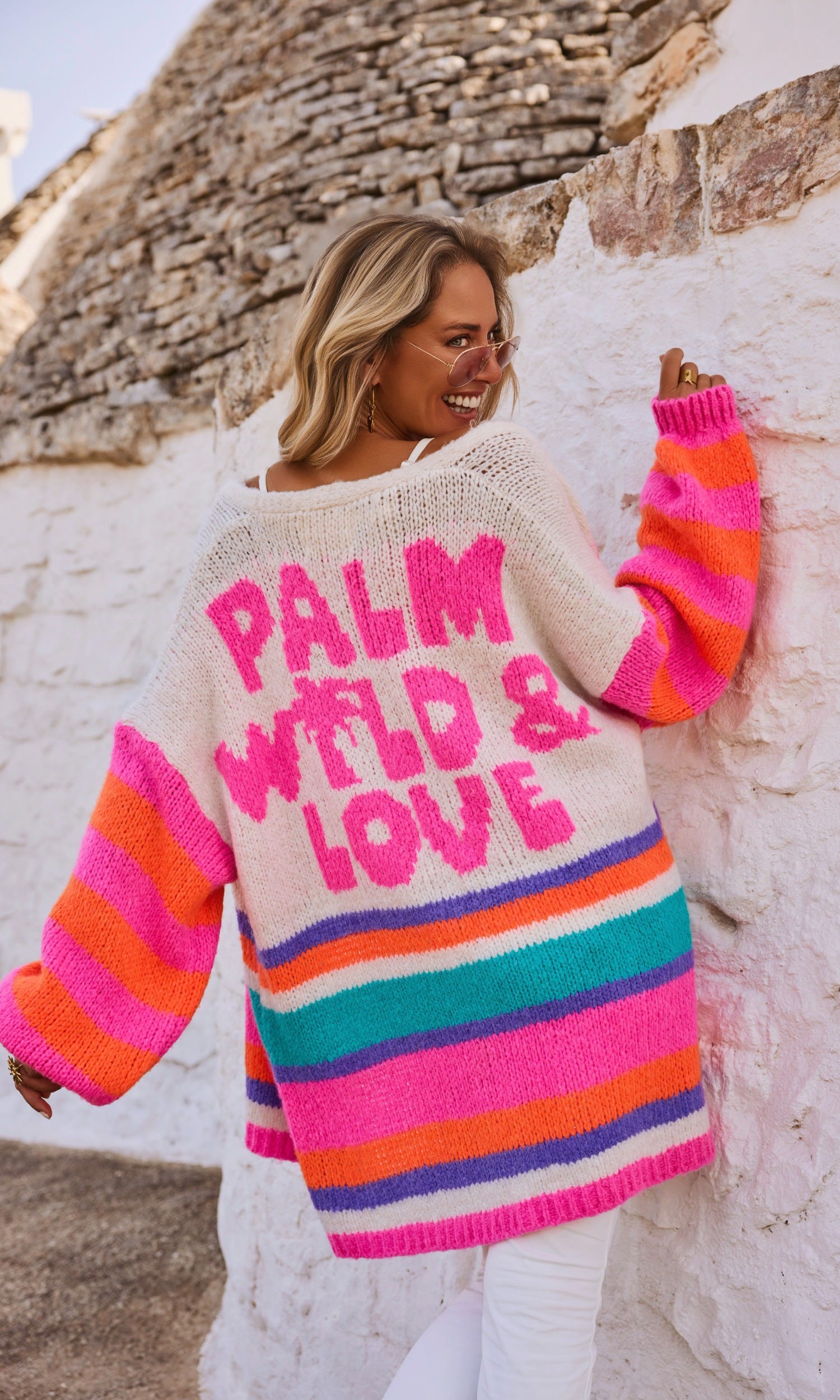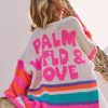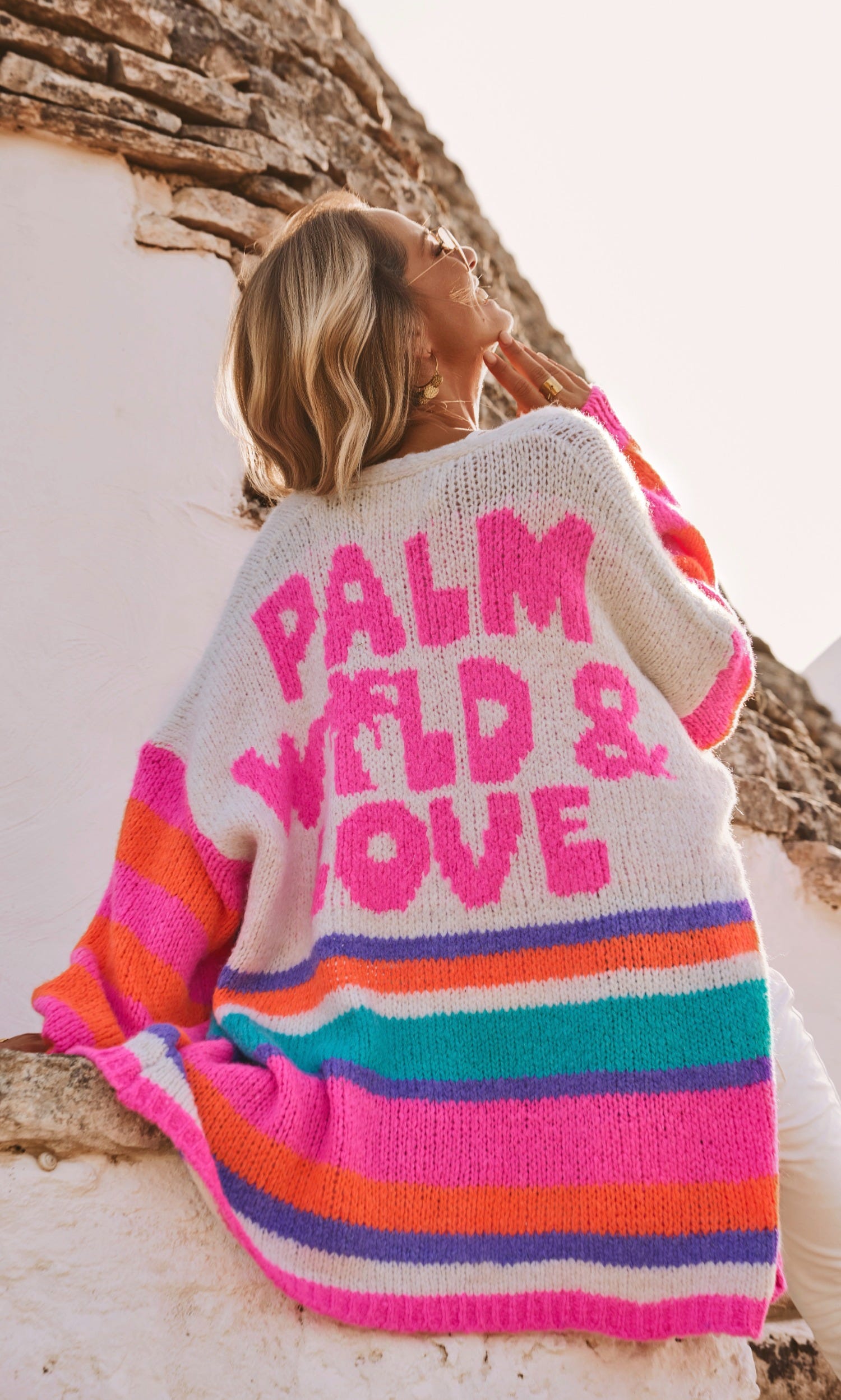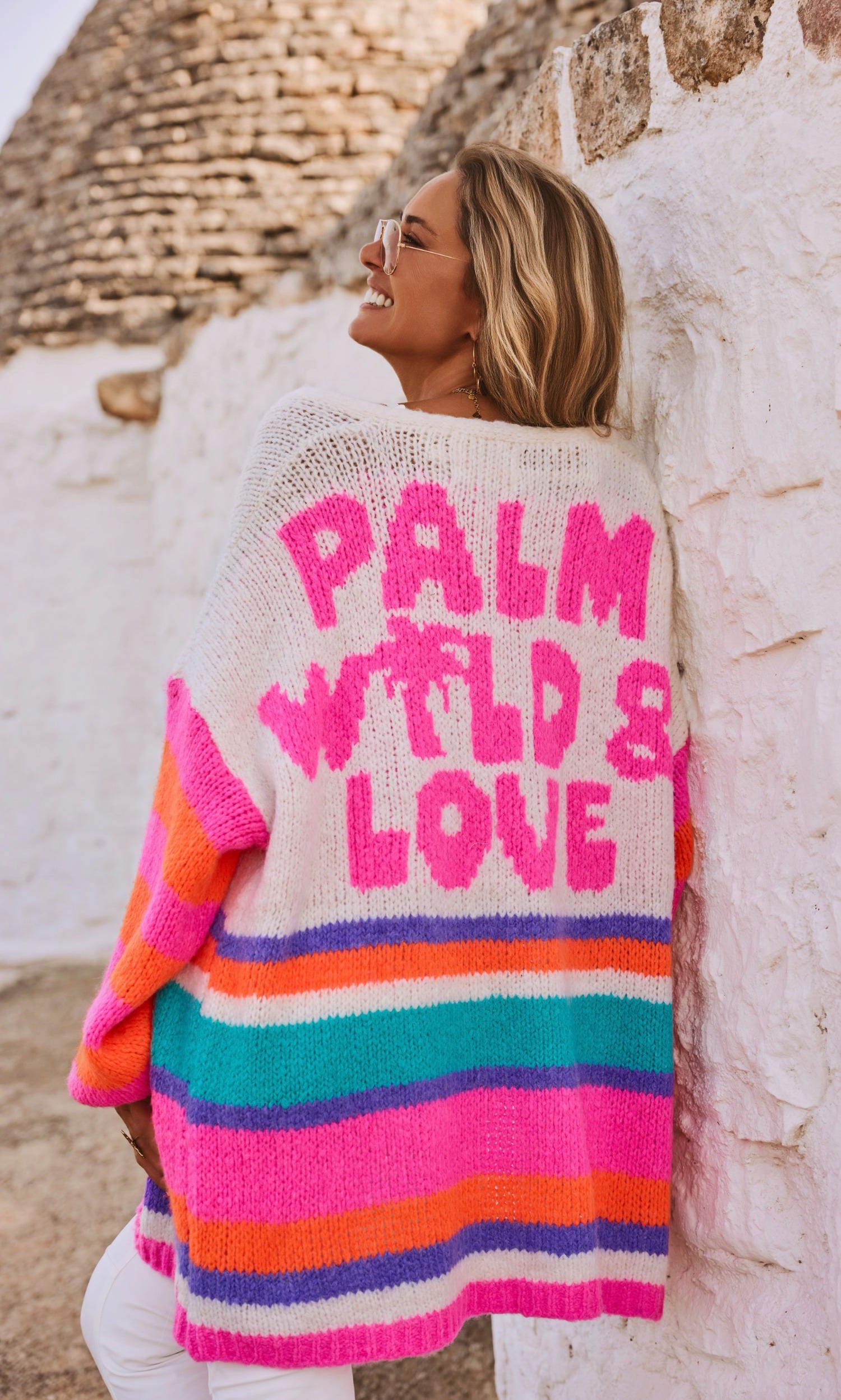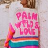Optez pour une allure tendance avec ce gilet très doux à la coupe loose.Ses manches longues à emmanchures descendantes ajoutent une touche décontractée, tandis que la fermeture bord à bord sans bouton assure un style épuré.Les motifs Palm Wild Love multicolore apportent une note vibrante à votre tenue.Un incontournable à adopter !