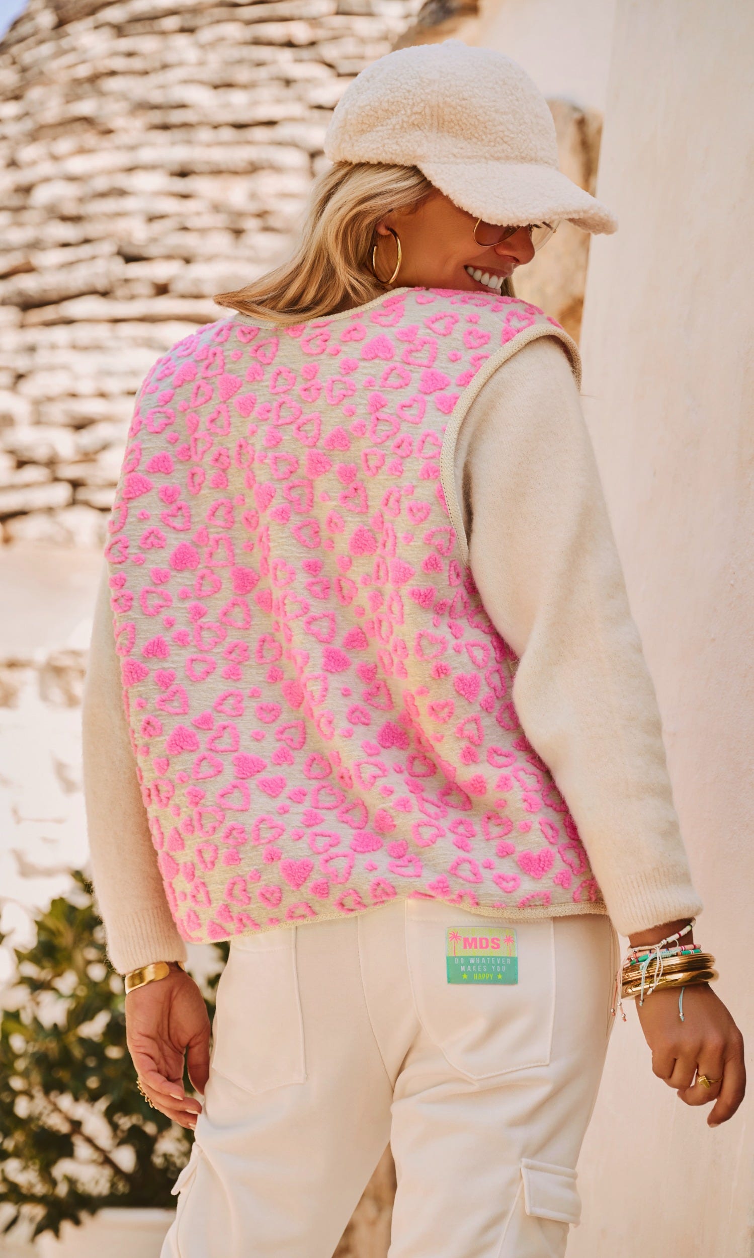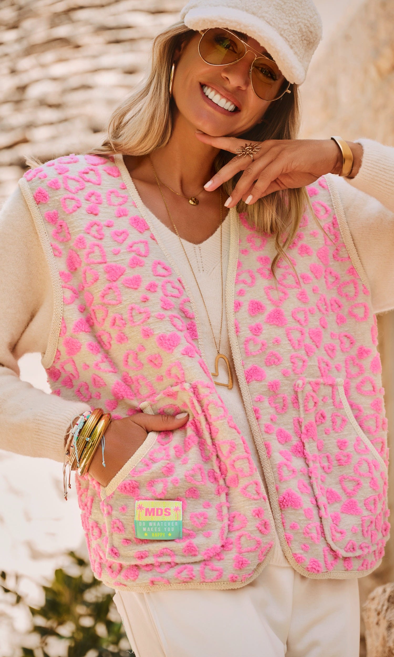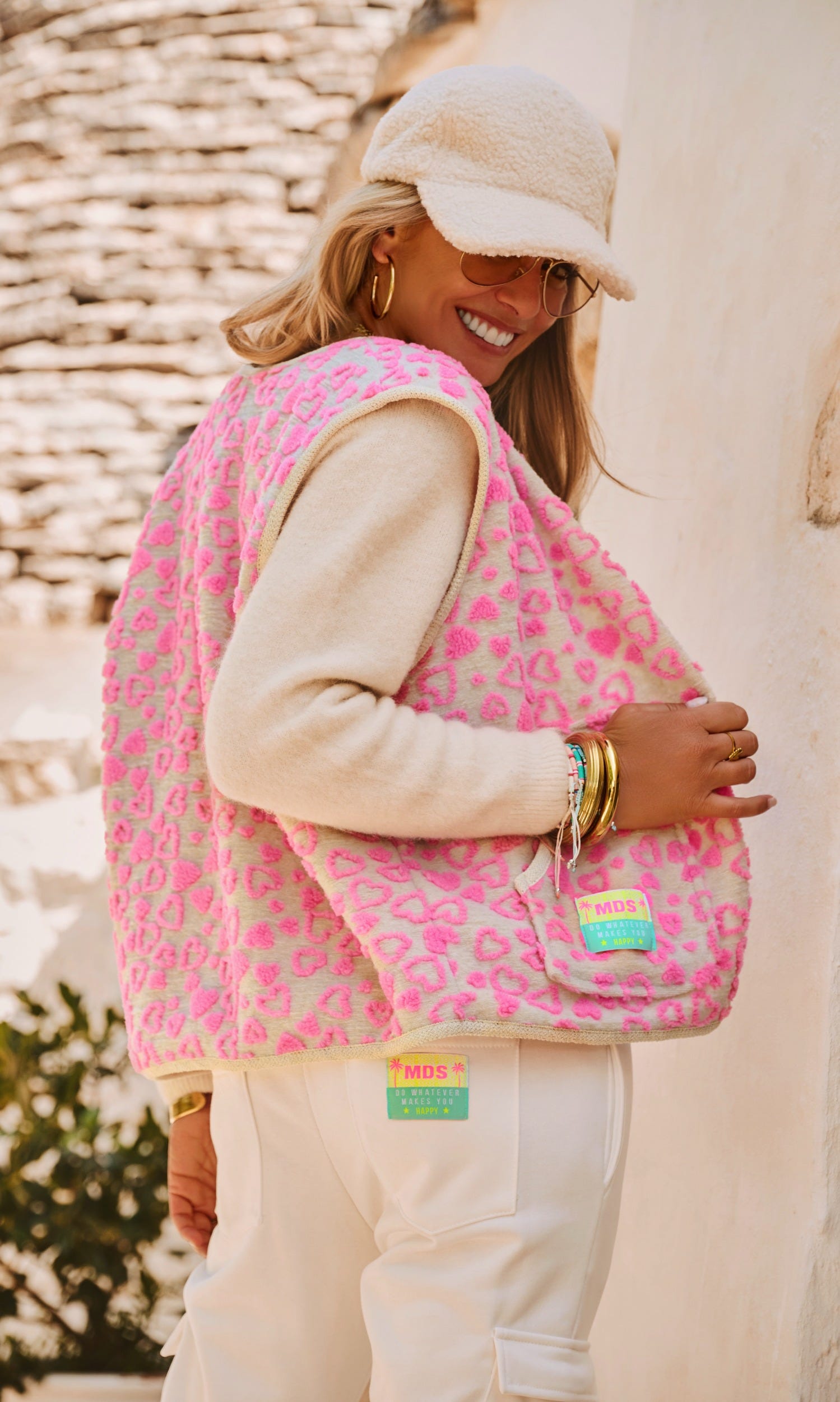 Son originalité réside dans sa moumoute cœur rose fluo qui ajoute une touche fun et colorée.