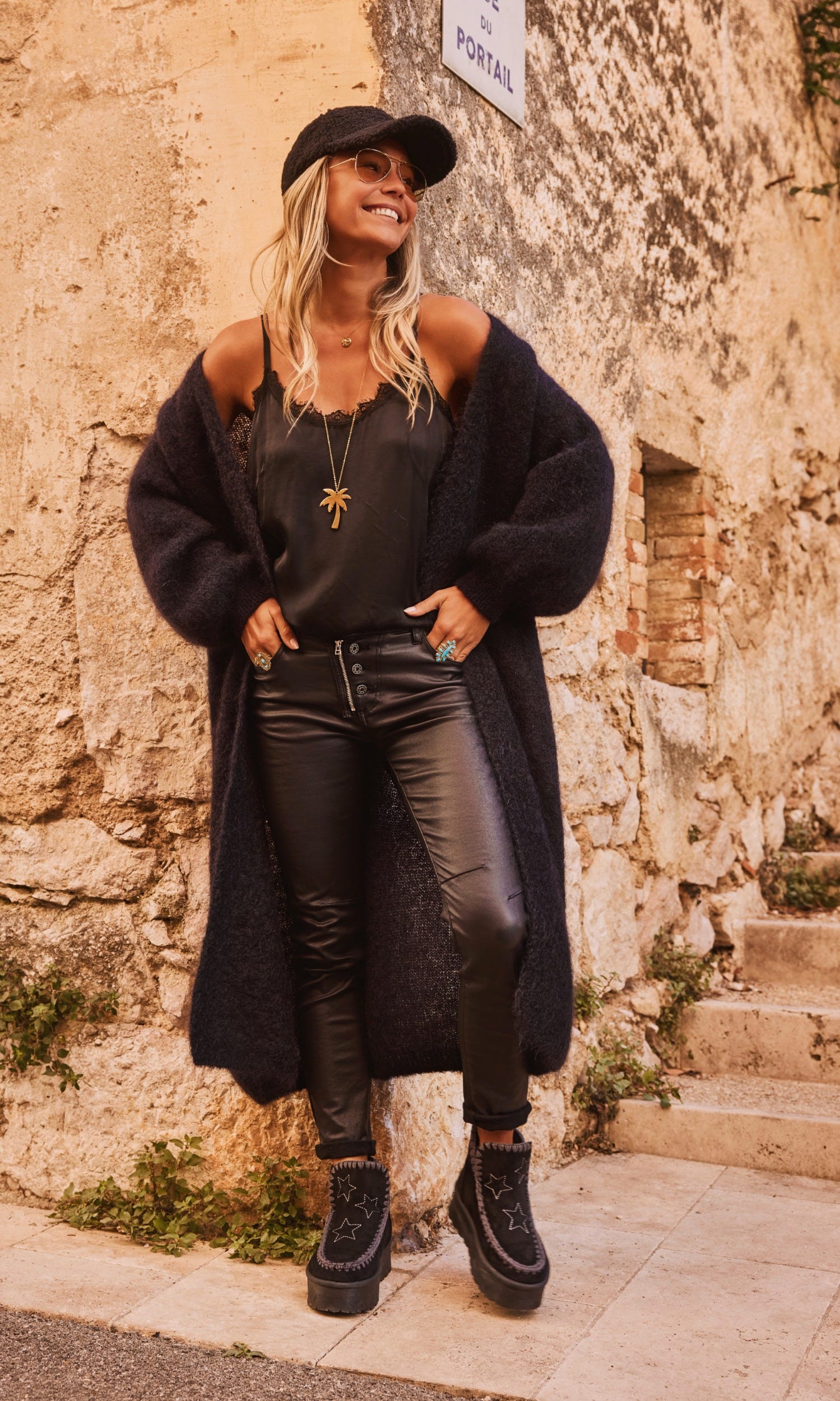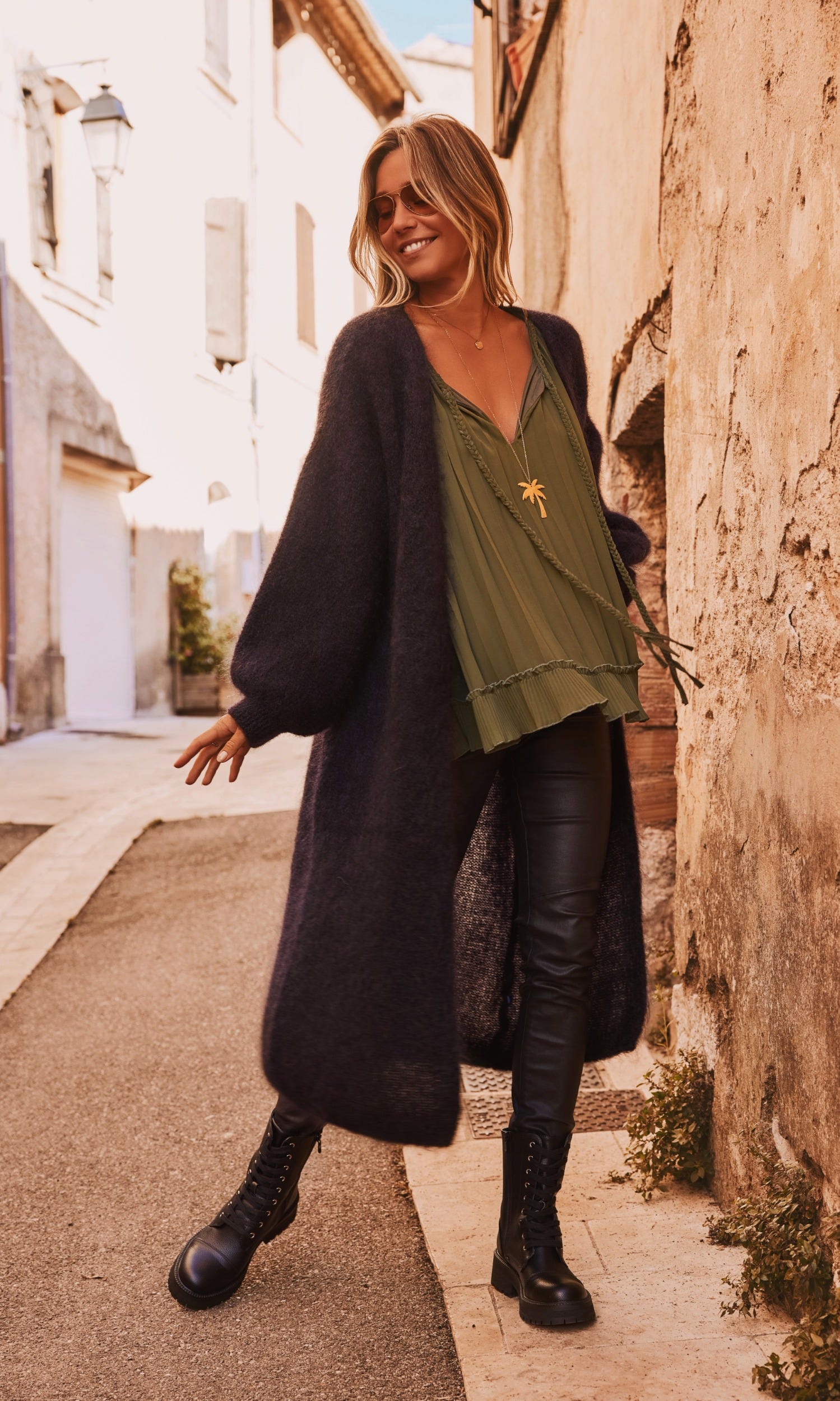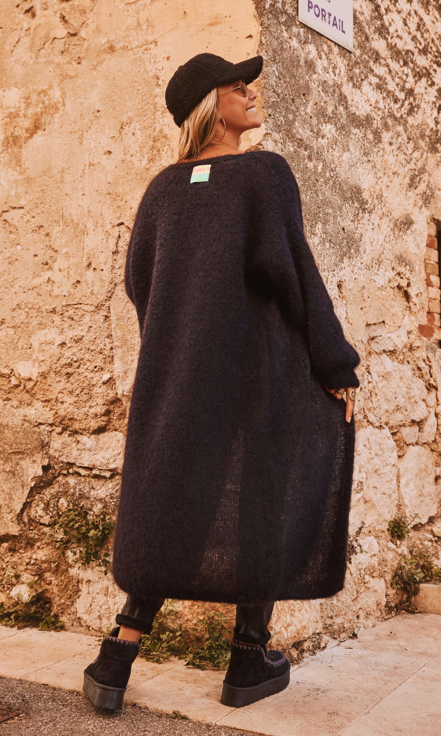 Craquez pour ce gilet noir en mohair, à la coupe loose tout doux.