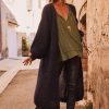 Ses manches longues à poignets côtelés ajoutent une touche d'élégance, tandis que la fermeture bord à bord sans bouton assure un style fluide et moderne.