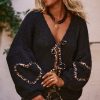 Les manches longues à emmanchures tombantes sont agrémentées de surcoutures à motif léopard en forme de cœur.