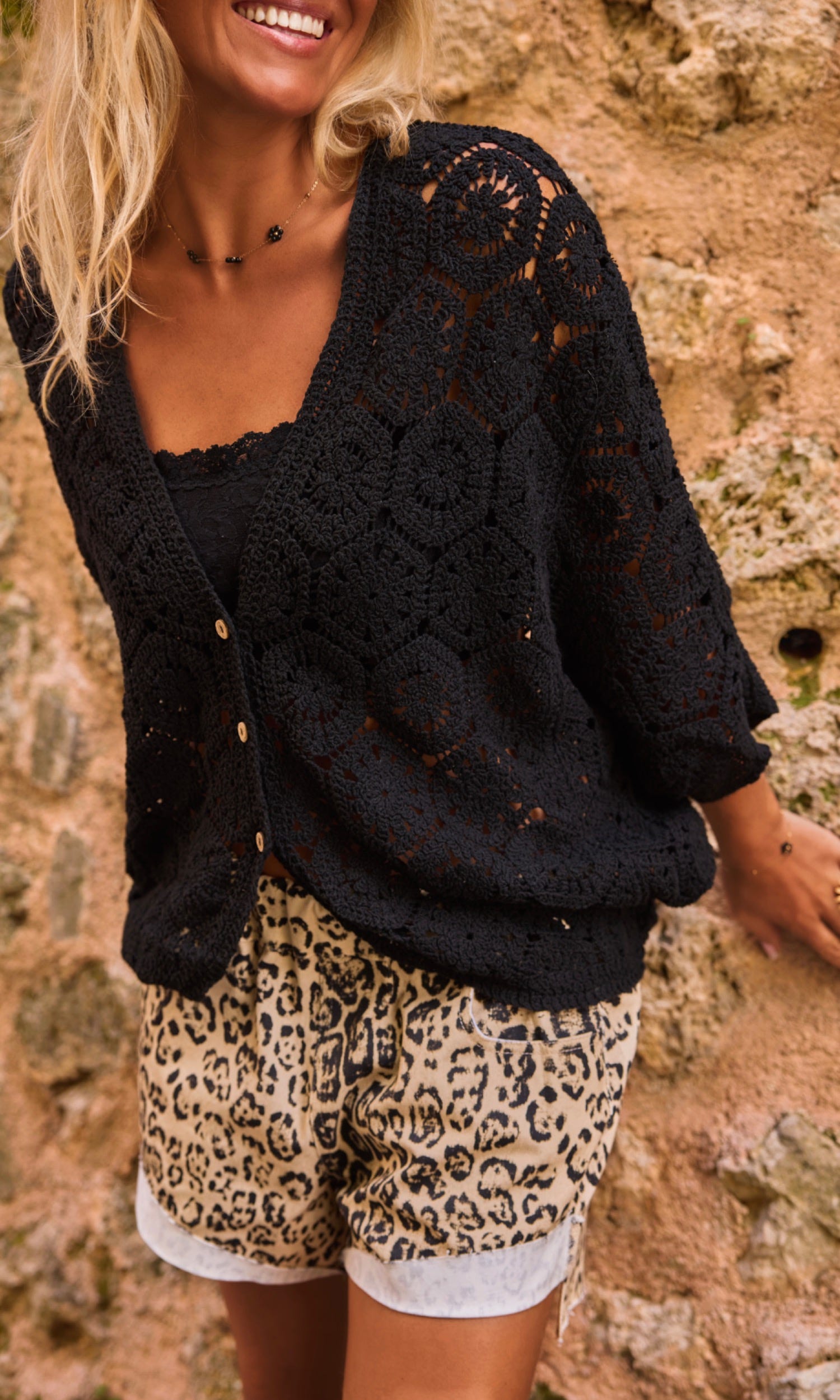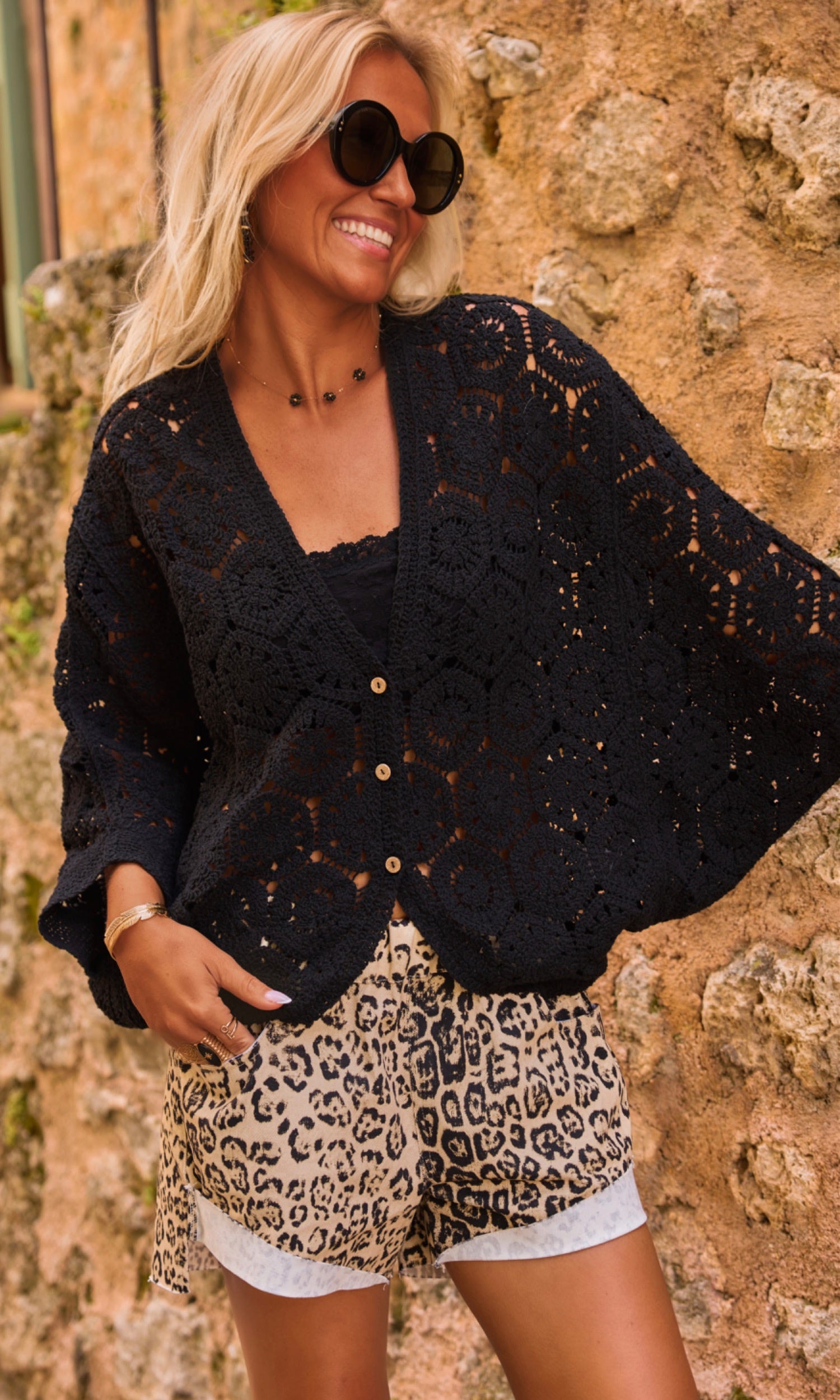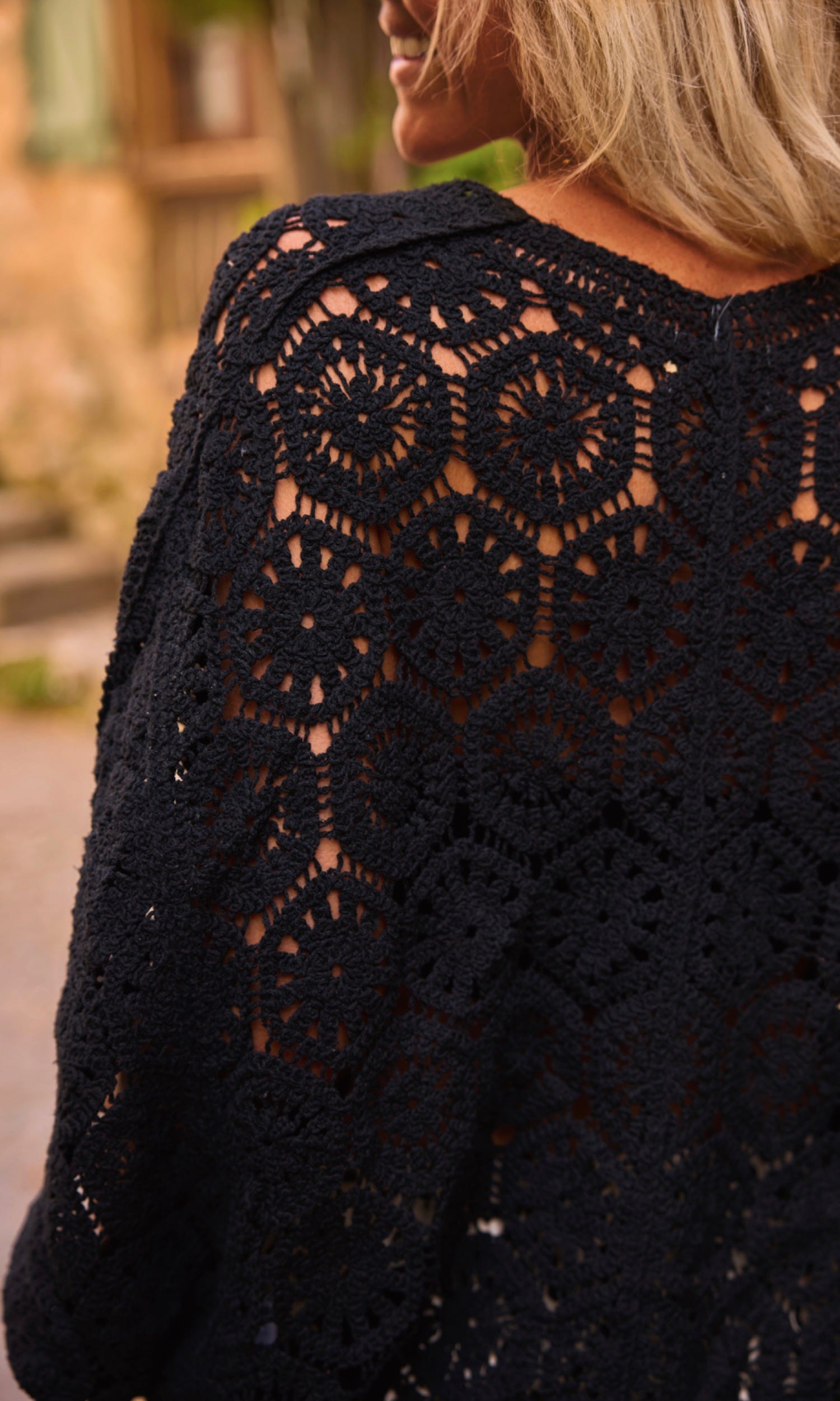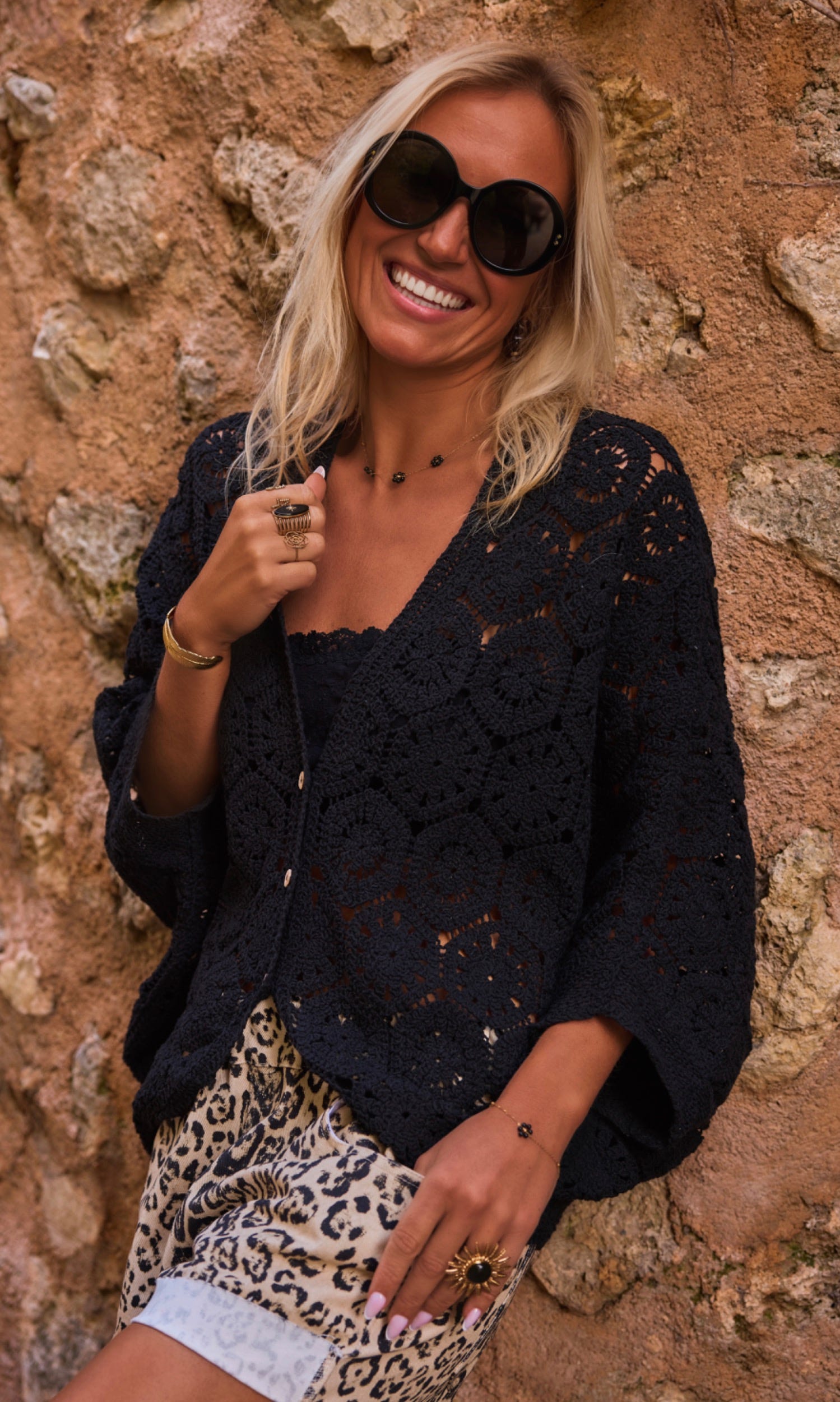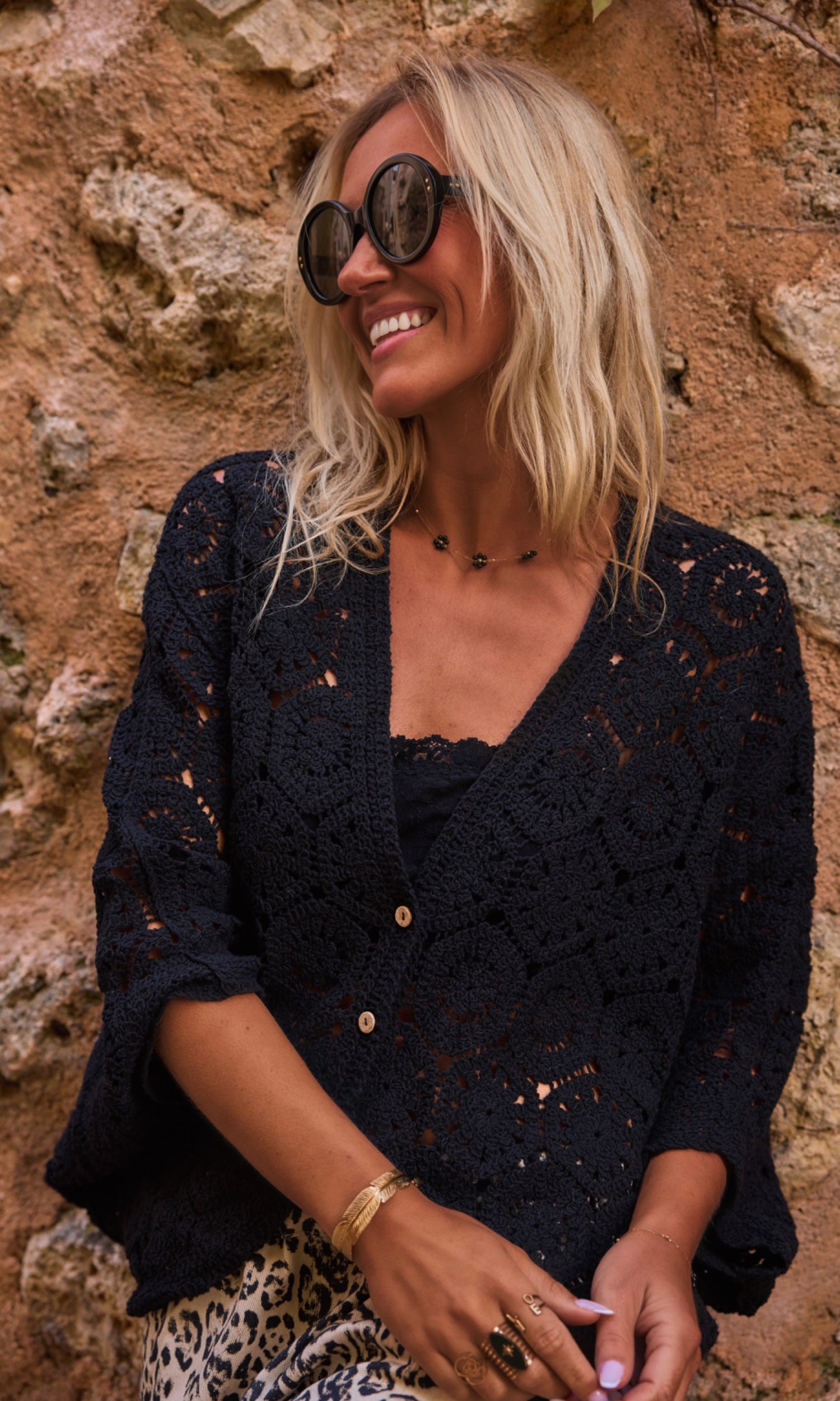 Découvrez notre gilet en crochet à la coupe loose, parfait pour un style décontracté.