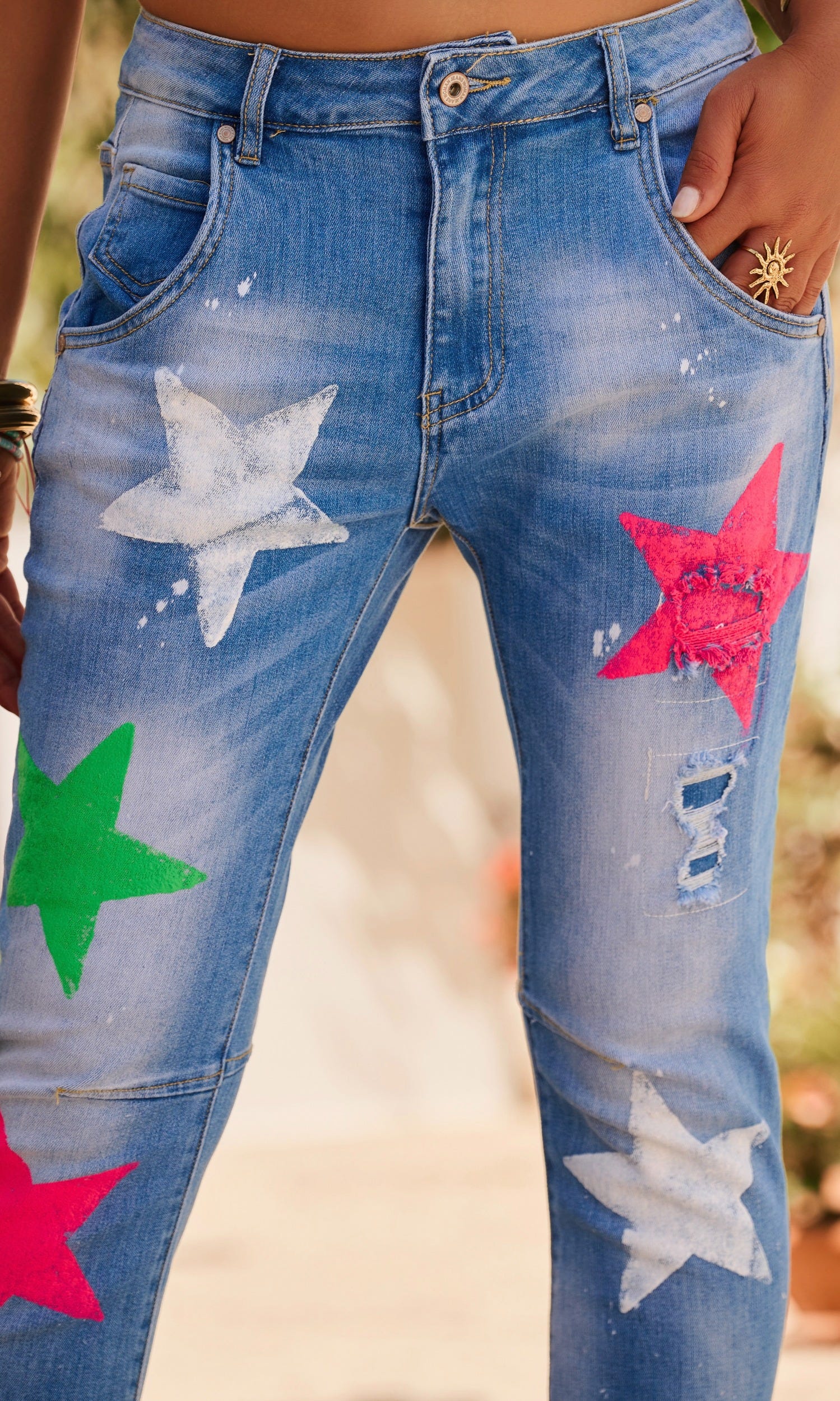Son effet déchiré et ses étoiles floquées multicolores légèrement effacé ajoutent une touche d'originalité.
